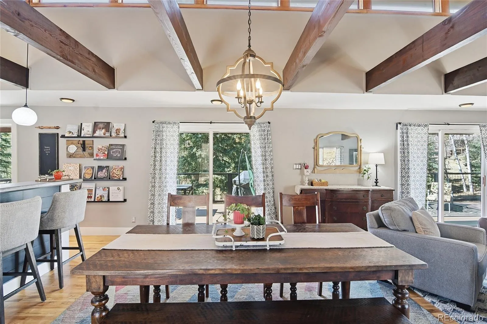 Picture yourself waking up in your mountain retreat as sunlight streams through the windows, illuminating the beautiful exposed beams overhead in your open loft-style main floor. You pad into the kitchen, spreading out ingredients across the generous countertop space as you prepare breakfast, glancing out at the mountain views that never get old. Coffee in hand, you step onto your expansive deck where the crisp morning air greets you and a deer grazes peacefully in your big, usable yard below. This is your daily reality now—peace and quiet interrupted only by birdsong and the rustle of wind through the trees. Later, you head down to your large open walkout basement to grab your hiking boots from one of the two sheds where all your outdoor gear lives, then set off on nearby trails that wind through forests and meadows. Hours later, you return refreshed and ready to host friends on that spectacular deck, stringing up lights as the sun sets behind the peaks, everyone marveling at how you found this perfect escape. As the evening winds down and your guests reluctantly head home, you settle into a deck chair with a blanket, watching stars emerge in the vast mountain sky, wildlife rustling in the distance. This isn’t just a house—it’s the life you’ve been imagining, where nature and comfort intertwine, where every room offers space to breathe, and where the mountains call you home every single day.