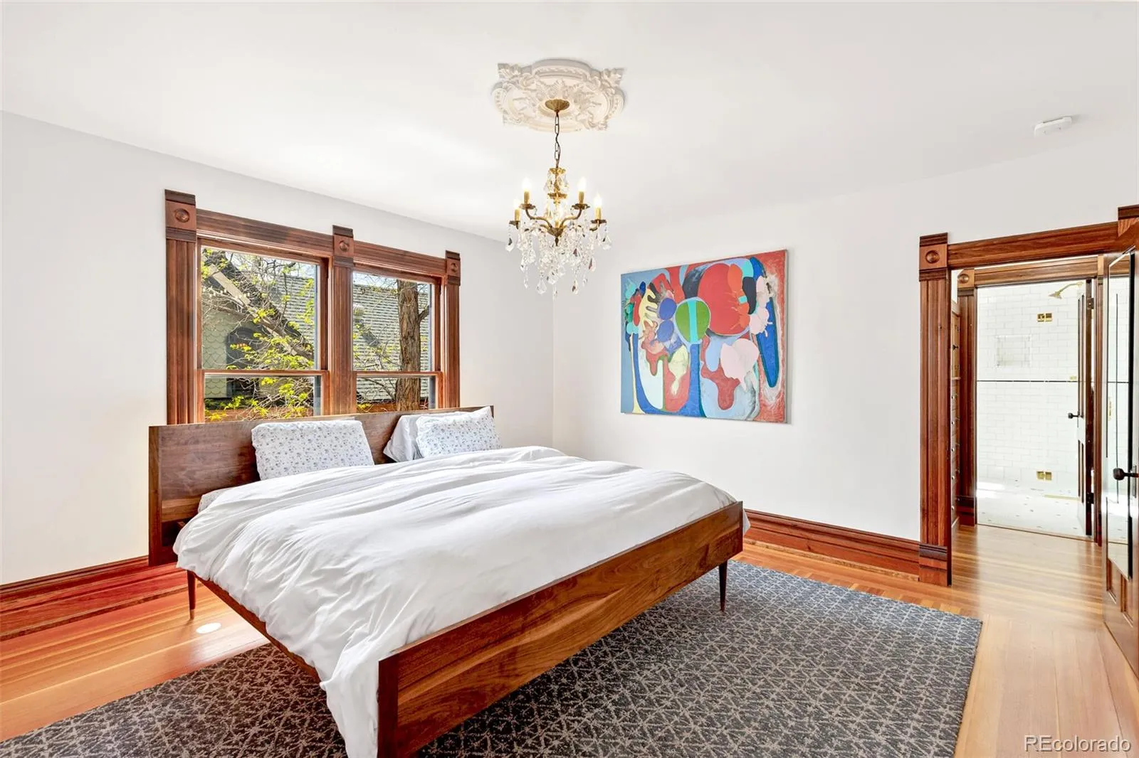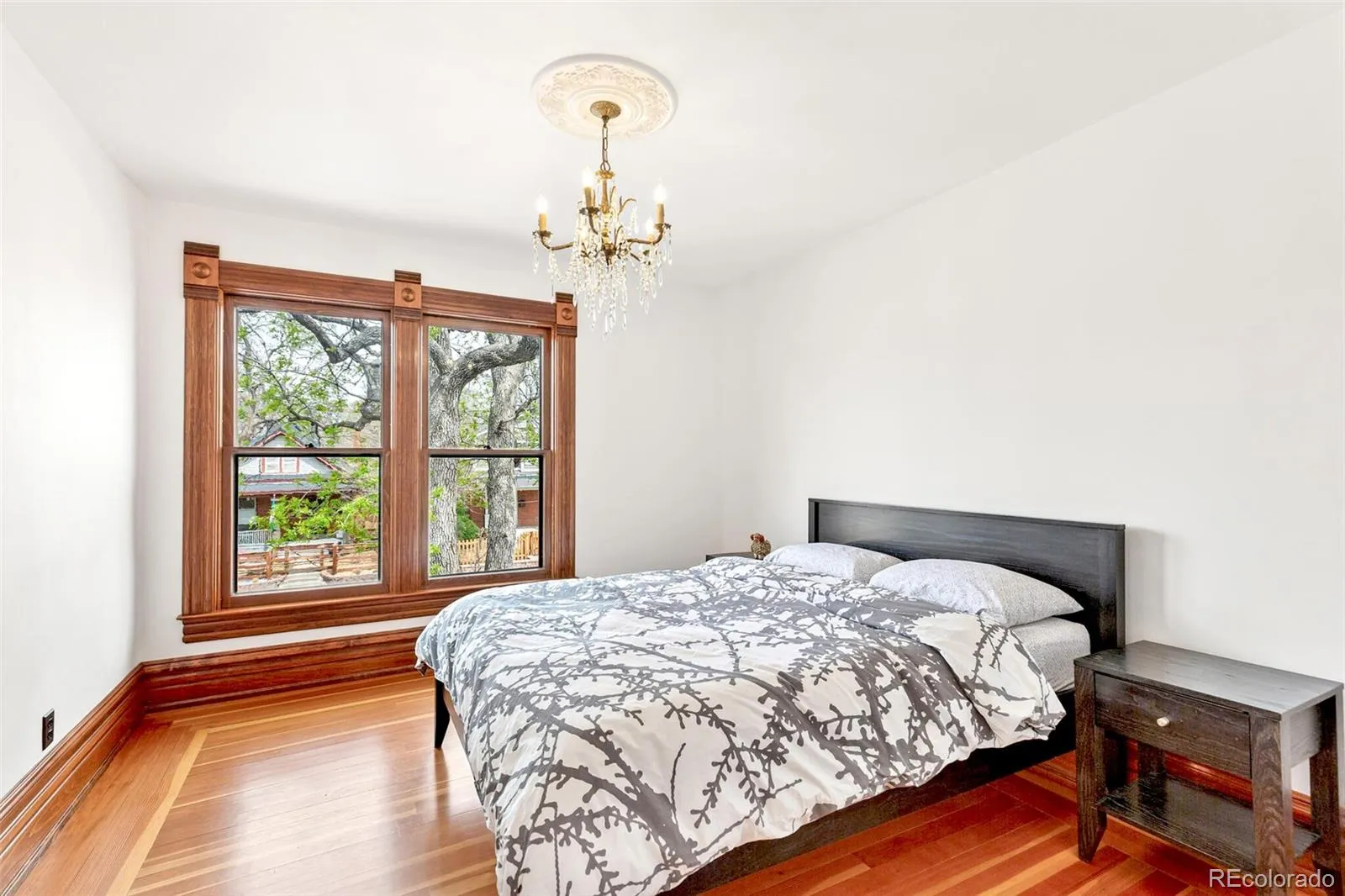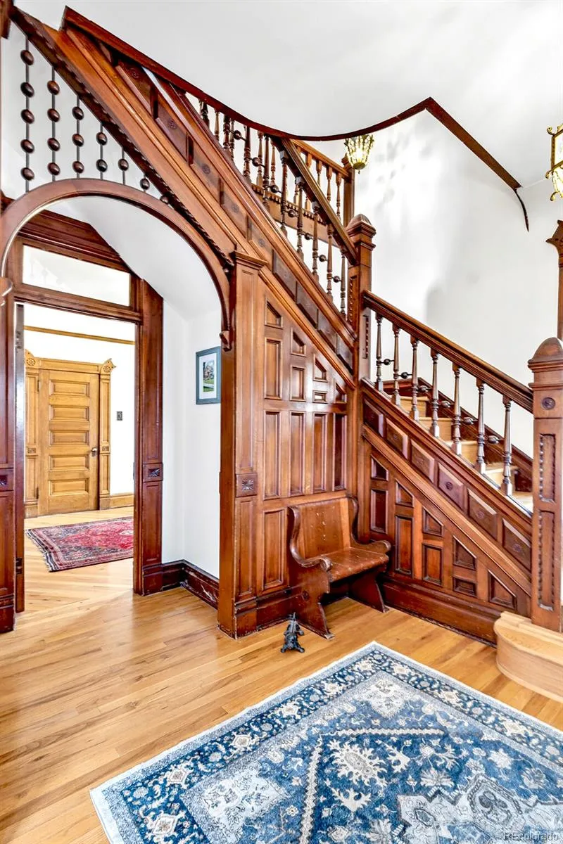 This is THE ONE you’ve been waiting for! The Lobach House is a one of a kind 1893 Victorian offering a rare blend of historic grandeur and inspired living. Gracefully positioned on a corner lot, this spacious 2-story Landmark Residence enchants from the very first glance with ornate trim, wraparound covered porch and a Victorian-inspired pollinator garden. Inside, a grand foyer and sweeping staircase welcome you into a world of lovingly preserved craftsmanship and character. Soaring ceilings, distinct woodwork, gleaming hardwood floors and carefully restored finishes create a rich, soulful backdrop. The living room is bathed in sunlight with an oversized window topped with stained glass transoms, while a gas fireplace with a hand-carved mantel adds warmth & drama. Throughout the home intricate millwork, original pocket doors, vintage hardware and restored windows whisper stories of a bygone time beautifully reimagined for today. A refined sitting room and sunroom offer sunlit moments of quiet while the formal dining room—complete with inlaid wood floors and a built-in hutch—set the stage for entertaining. A main-level bedroom features an ensuite bathroom with dual entry to the sitting room. A new kitchen balances heritage and modernity with Carrara marble countertops, prep island, a GE Monogram 8-burner range, farmhouse sink and pantry with built-ins. Upstairs, a stained-glass window glows on the landing and leads to an open flex space. The primary suite is a serene retreat with a custom walk-in closet & an new vintage inspired 3/4 bath. 3 additional bedrooms, 1 adorned with a stained-glass picture window, and a stylish hall bath complete 2nd story. Outdoors, the magic continues with a covered wraparound porch, mature trees and a private yard with gardens. With rare scale, remarkable craftsmanship, and a location that places you moments to Highland Square, Tennyson & Sloan’s Lake. This is more than a home—it’s a piece of living history waiting for its next chapter.