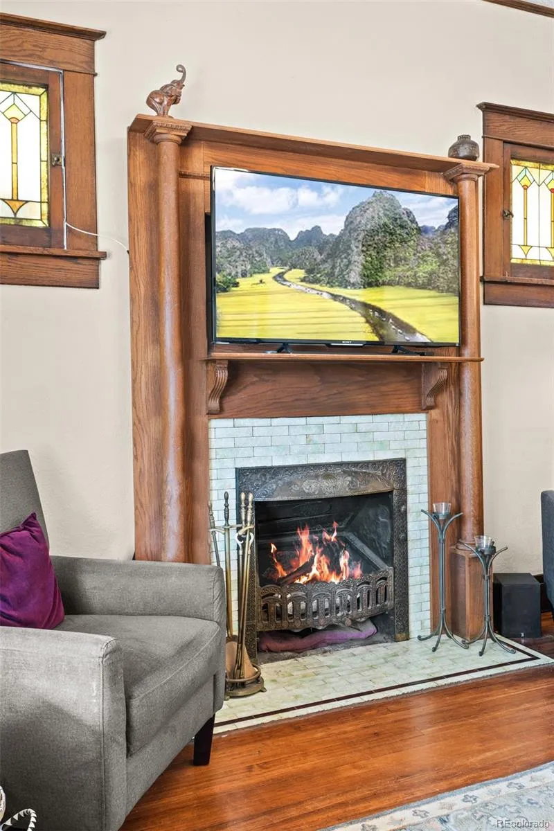 This classic Craftsman bungalow, located in one of Denver’s oldest neighborhoods, Cole, is a perfect architectural example of the one-and-one-half-story bungalows the area is known for: from the low-pitched roofline with overhanging eaves to the exposed rafter ends and false half-timbering. Built in 1912 and framed by mature trees, this 4-bedroom, 4-bathroom home welcomes you in with its recently updated xeriscaped front yard and charming front porch. The main level features an entry foyer, a front-facing living room anchored by a wood-burning fireplace flanked by leadlights, a dining room, original millwork and hardwood floors, timeless single hung windows, and a large front window with a stained glass transom. The kitchen offers ample prep and storage space with its walk-in pantry, and the mud room features more shelving and a desk. Unlike similar homes in the area, the main level also includes a primary suite with a full bathroom and a walk-through closet, a second bedroom with a walk-in closet, and a 3/4 hallway bathroom. Upstairs, two additional bedrooms and a 3/4 bathroom provide flexibility, whether used as distinct bedrooms or combined to create a more private primary suite. The finished lock-off basement offers even more flexibility and income potential with its galley kitchenette (cooktop/refrigerator/sink), a family room, and a sleeping den with a custom reach-in closet. The basement laundry room can be locked off and accessed via a separate stairway through the kitchen. The back yard is perfect for outdoor entertaining and features a Trex deck, a pergola with string lighting, new sod, and access to the detached two-car garage. The location is phenomenal, with close proximity to City Park, great restaurants and coffee shops (Yacht Club, Brasserie Brixton, Nola Voodoo Tavern, and Rivers and Roads Coffee), Russell Square Park, York Street Yards, and RiNo. Easy access to downtown Denver, the light rail, I-25, and I-70. Buyer to verify all info.