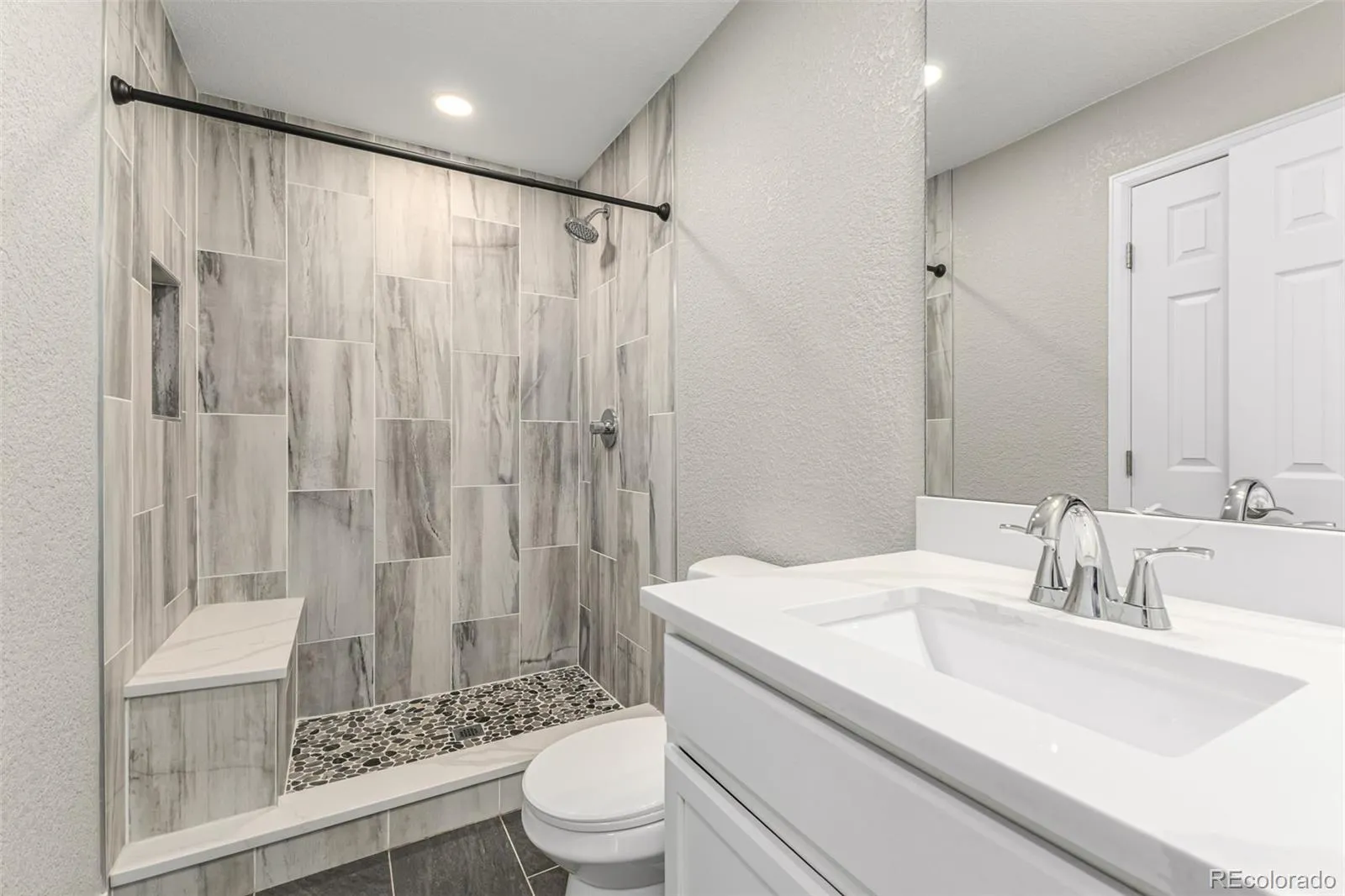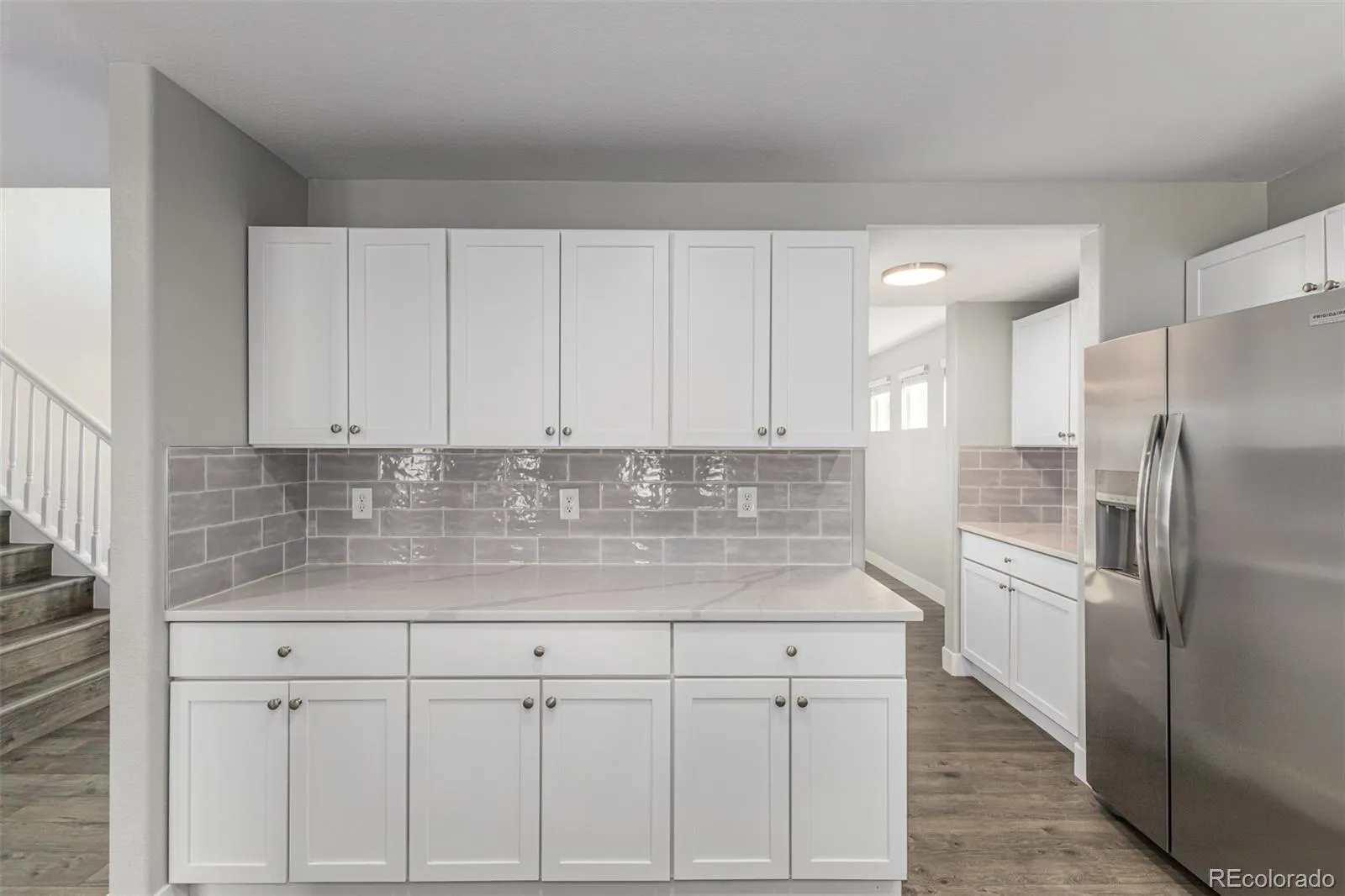 Step into this beautifully remodeled home featuring new flooring, quartz countertops, updated kitchen cabinets, and fully refreshed bathrooms with modern showers and lighting. Enjoy a main-floor bedroom and/or office with a private entrance to a 3/4 bath. Relax by the cozy fireplace and mount your big screen TV. The kitchen has a butler pantry , tons of cabinet space and a pantry for extra storage! The 3 car tandem garage with doggy door to the dog run access and a spacious deck backing to open park space. The upstairs features a vaulted primary suite with mountain views and a grand closet. There are four upstairs bedrooms and updated bathroom with a dual sink vanity. The unfinished basement is ready for future expansion. Another bonus is the lower property taxes without a special taxing district. Save money! Just move in!