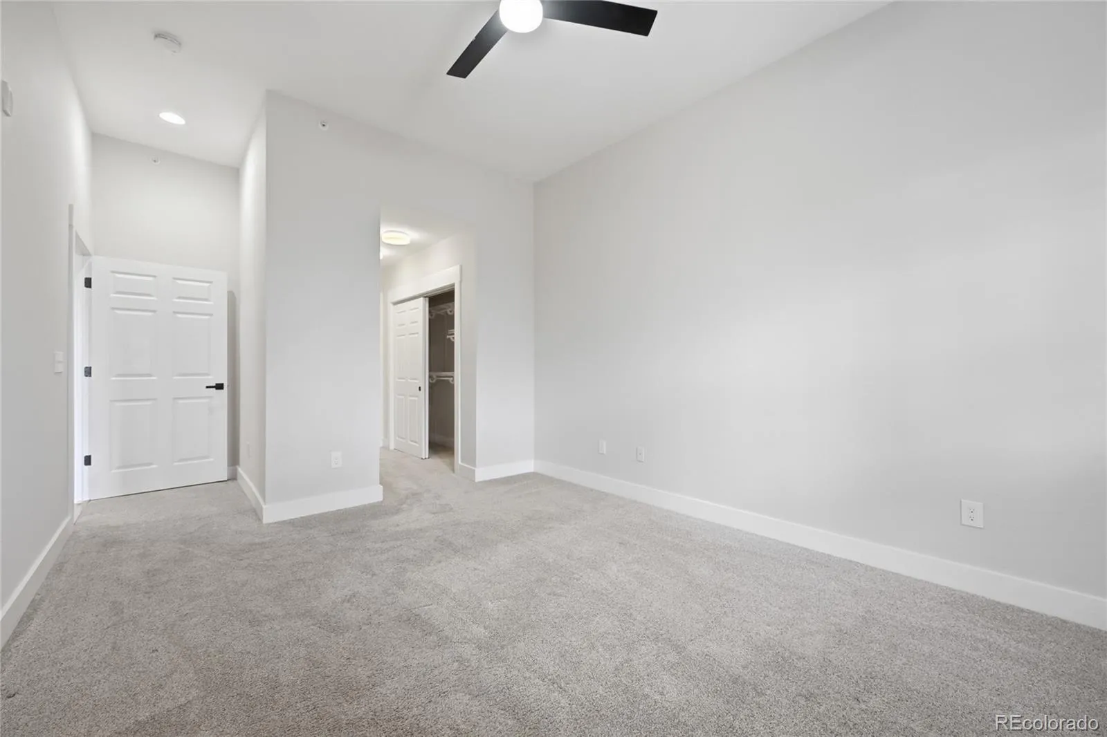 Inside, you’ll find a fresh combination of luxury vinyl plank flooring and carpet, complemented by elegant wood shutter window coverings throughout. The spacious living area opens to a large, covered patio overlooking the Bear Creek Trail and park, providing a peaceful outdoor retreat right at home.