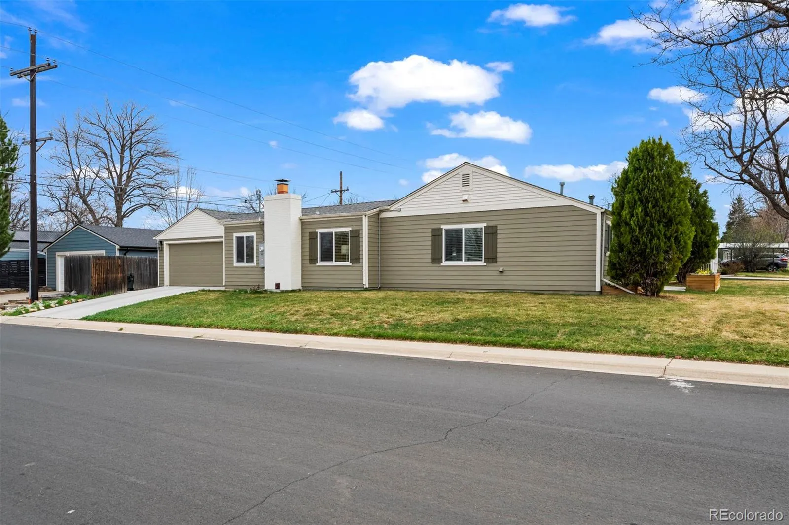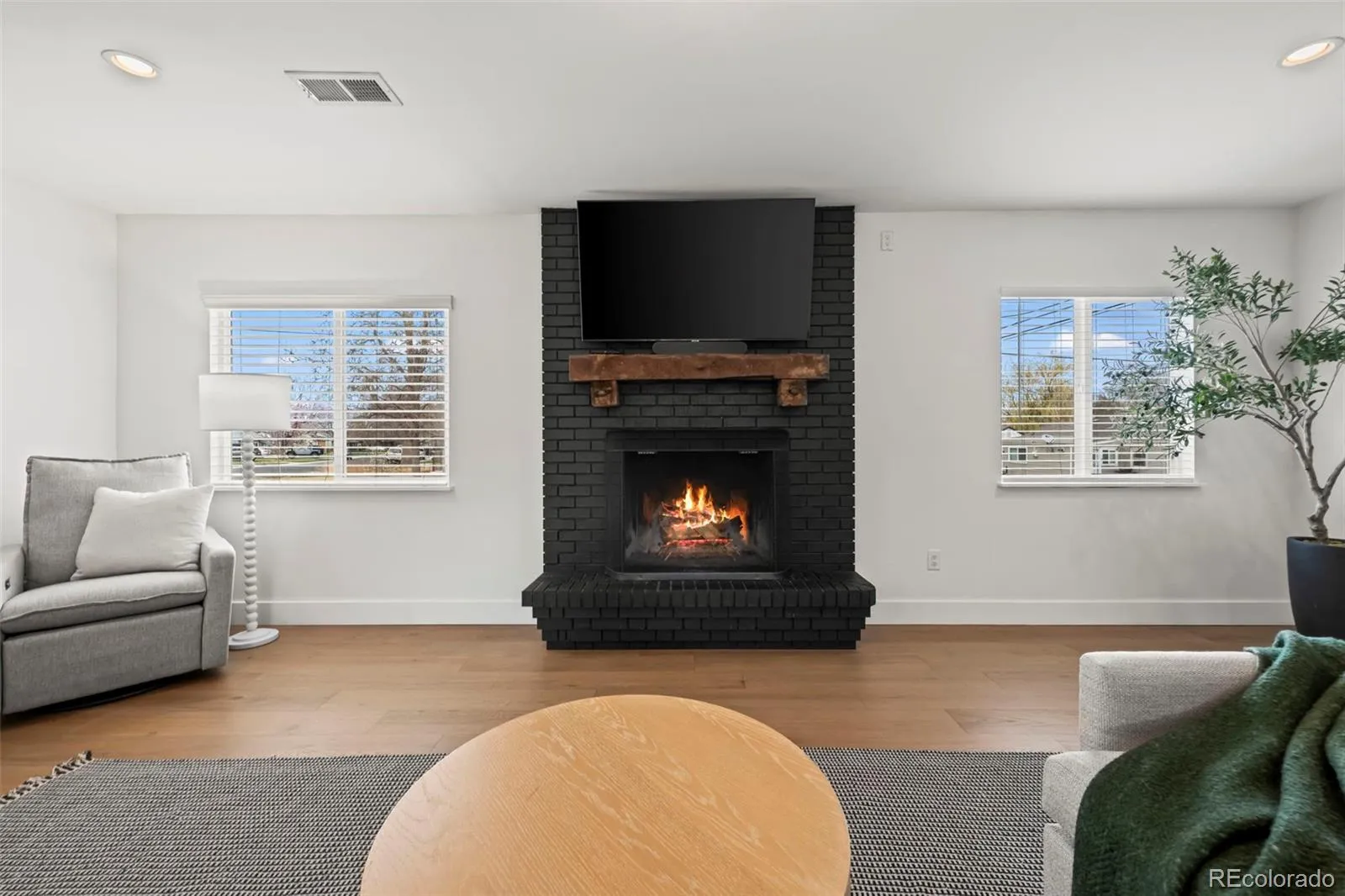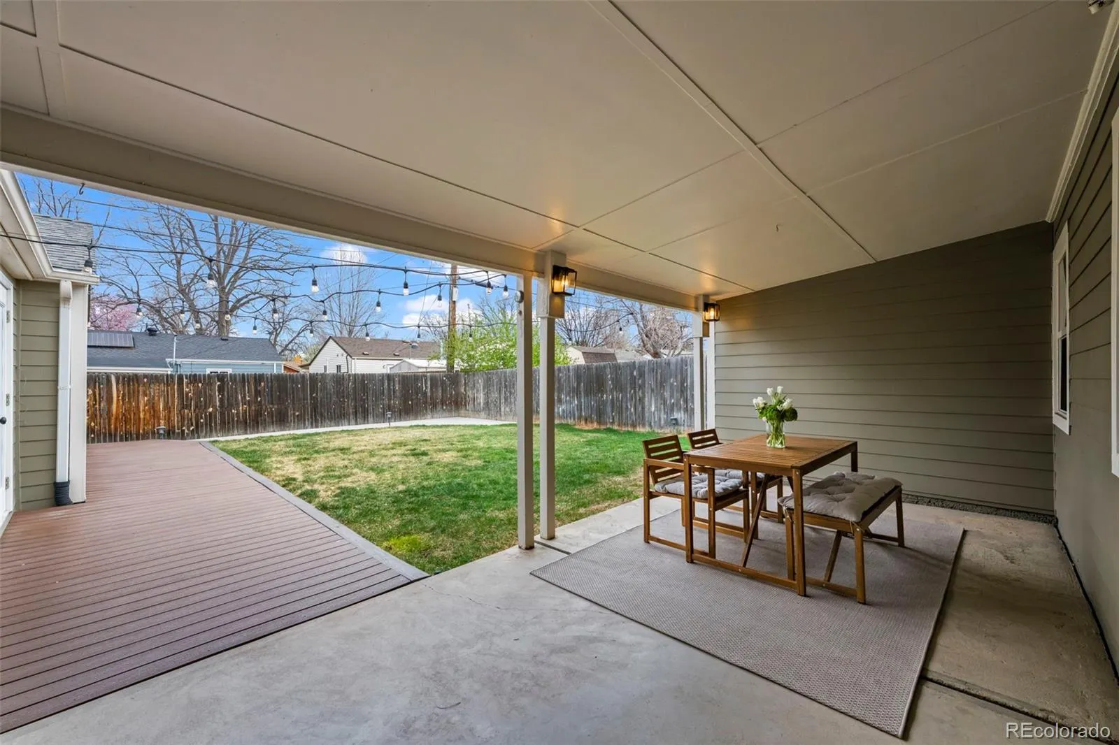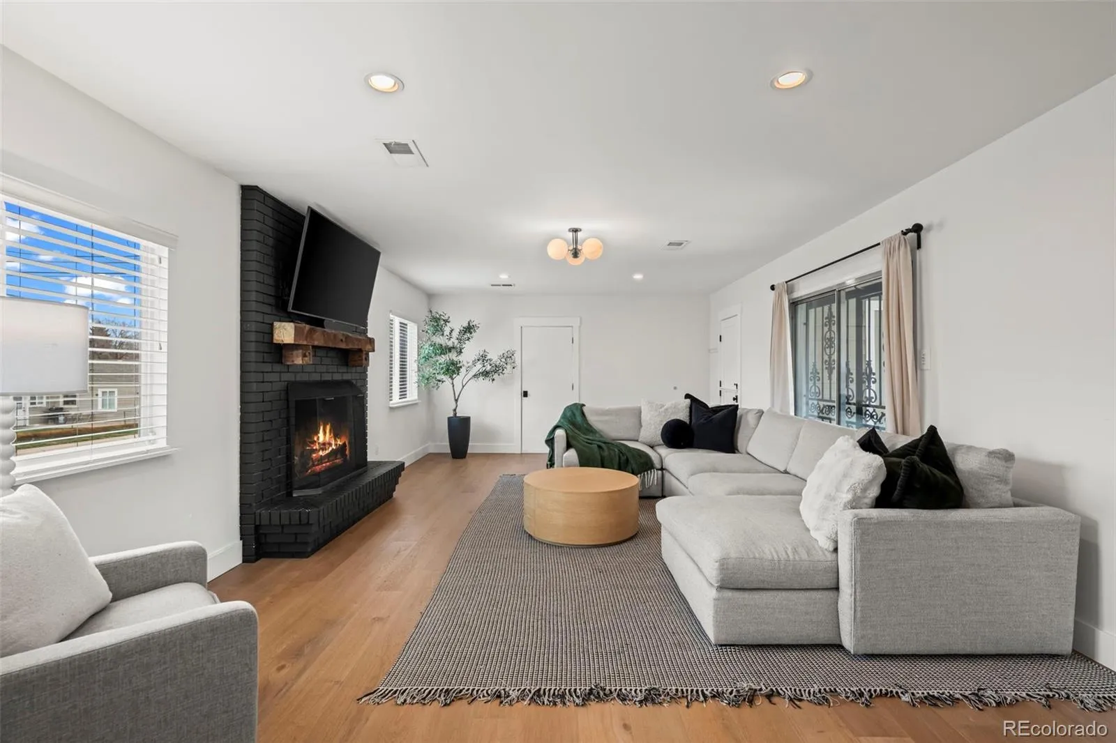 Modern, updated University Hills gem on a corner lot with 3 conforming bedrooms and flex office space! Mature trees frame a lush front lawn and inviting curb appeal, setting the tone for the thoughtful upgrades found throughout. Open-concept layout is highlighted by stunning newer hardwood floors that flow seamlessly through the main living spaces. The fully updated kitchen features quartz countertops, a stylish backsplash, premium 6-burner gas range, and ample space for gathering. A striking black brick fireplace with a live-edge wood mantle anchors the living room – complete with large windows and seamless access to the covered patio for true indoor-outdoor living, while the dining area stands out with a statement rattan pendant and direct sightlines to the bold green cabinetry and bar seating.The primary suite features an olive board-and-batten accent wall, mini-split for personalized comfort, a spacious walk-in closet with built-ins, and a cozy sitting area. Additional 2 bedrooms have updated closets with a bonus office flex space in the back of the house. Step outside to one of the home’s standout features-a covered outdoor living room with a mounted TV and sectional, connected to a composite deck and lush, fenced backyard. String lighting creates a warm, inviting ambiance-perfect for year-round enjoyment. Recent upgrades include: 200-amp electrical panel, updated closets, mini-split systems in bedrooms and living areas, new dishwasher, washer and dryer, water heater, fresh interior paint throughout, and added glass exterior door to the office.Ideally located near parks, dining, and everything Denver has to offer-this home truly checks every box.