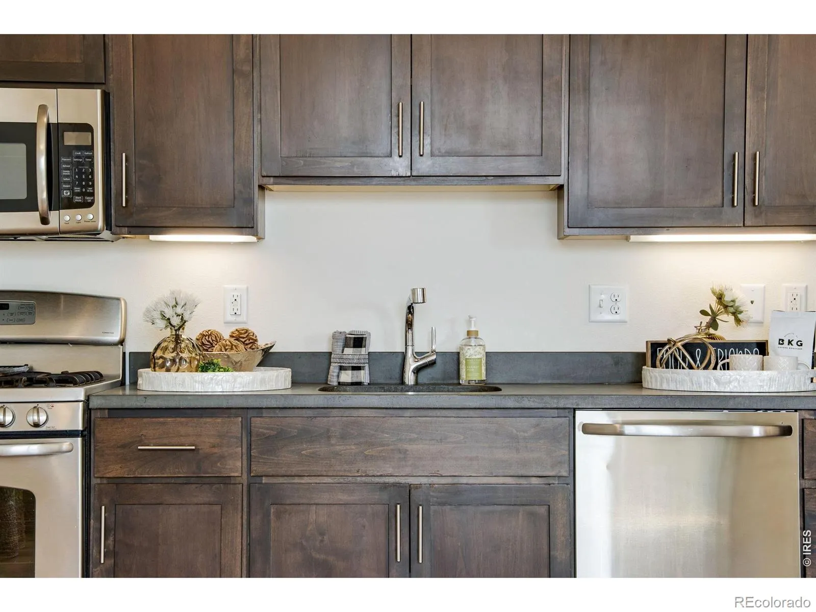 Low Maintenance Urban Living in Beautiful Old Town Fort Collins. This well thought unit is beautifully appointed with large windows, wood flooring throughout, concrete countertops, stainless appliances, stackable washer and dryer and timeless tile selections. Offering a quaint outdoor space, reserved garage parking, basement storage for additional items, secure entrance into both the building and garage, this home has everything you need for easy lock and leave living in one of Fort Collins most desirable areas. Shopping, entertainment, restaurants, parks and trails right out your front door.