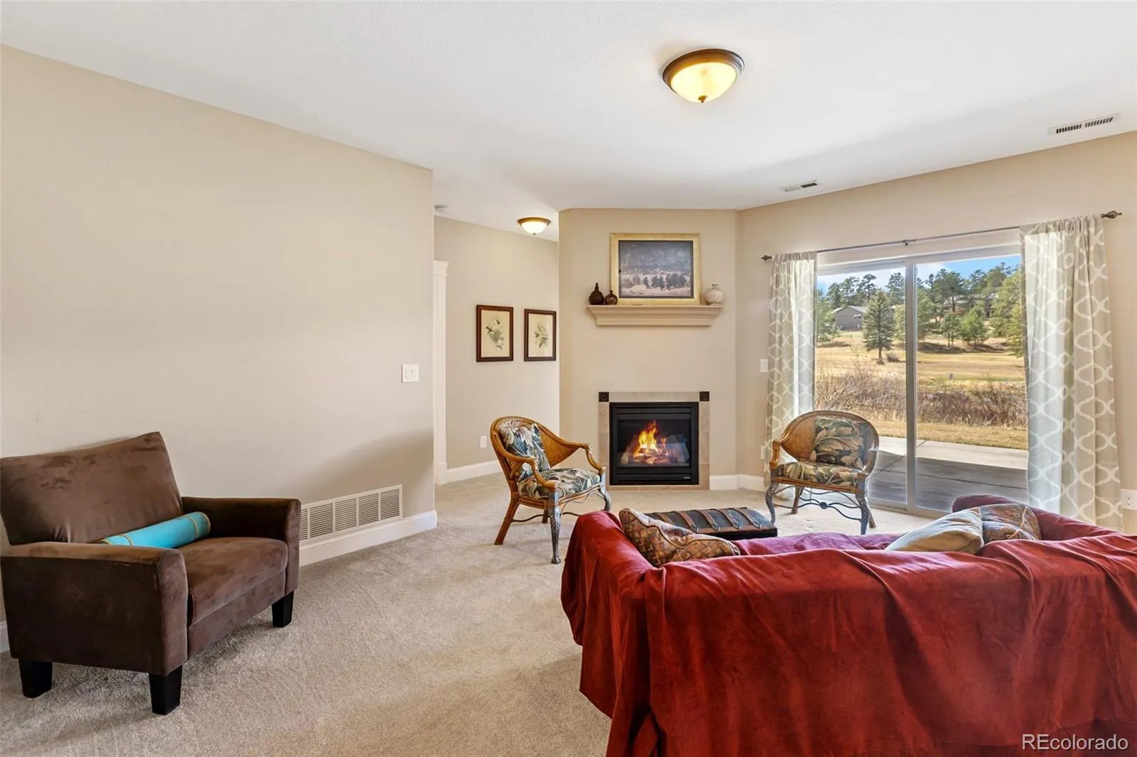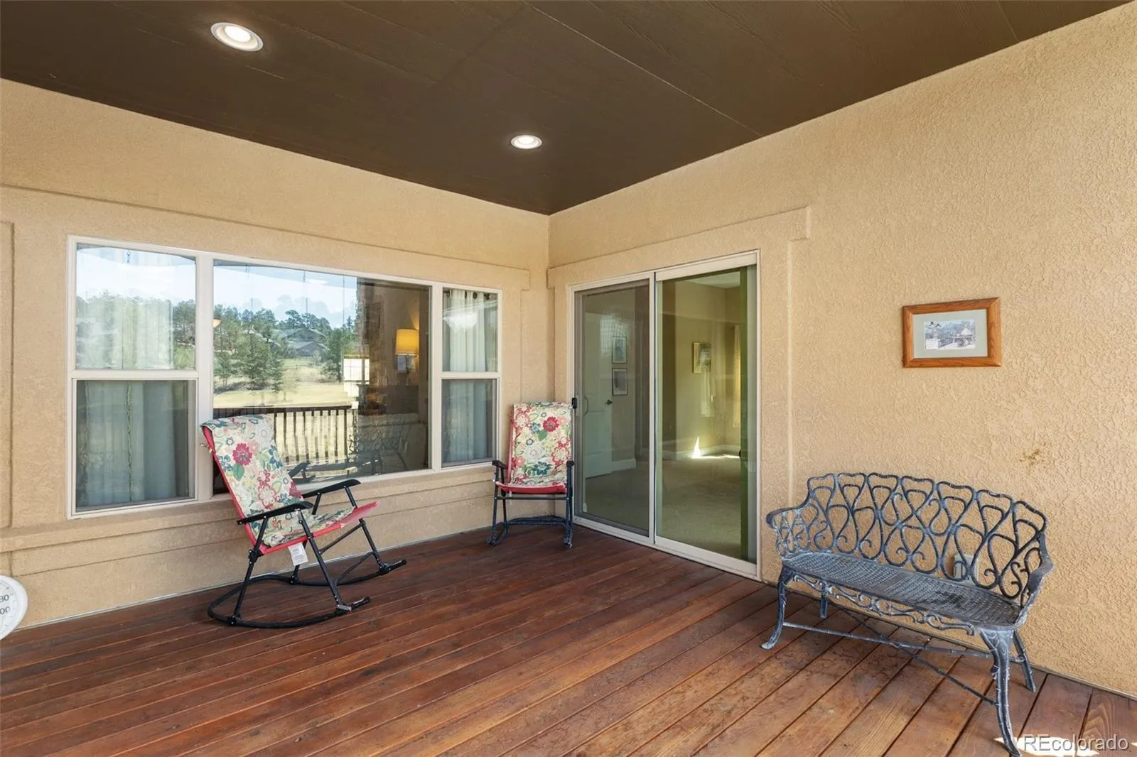 Downstairs, the finished walk-out basement impresses with exceptionally high ceilings, a second gas fireplace, and a full wet bar, creating an ideal setup for entertaining or a private guest suite. With a low HOA, a 2-car garage, and a timeless stucco and rock exterior, this home offers the perfect balance of luxury and low-maintenance convenience in the Pikes Peak region.