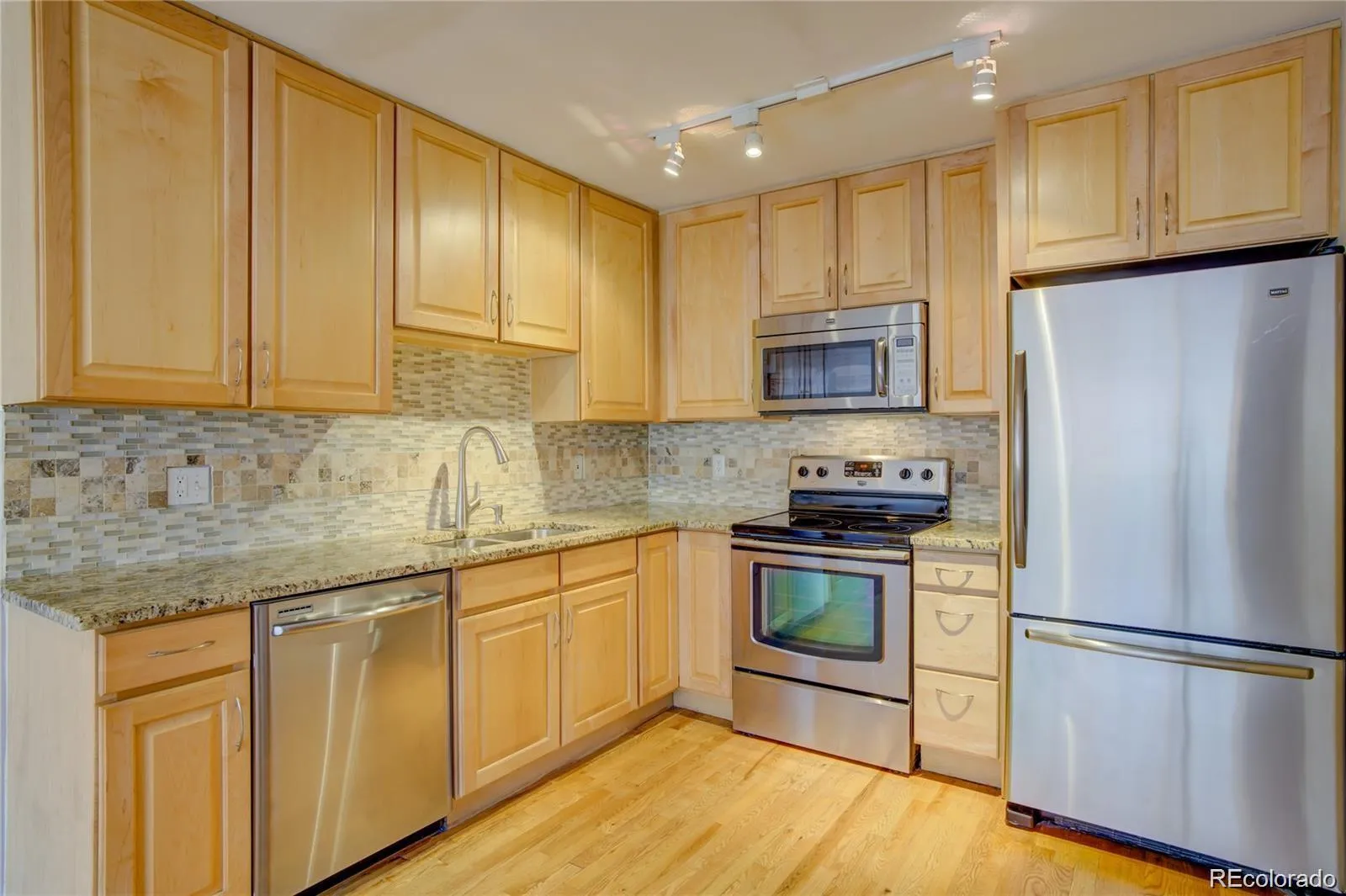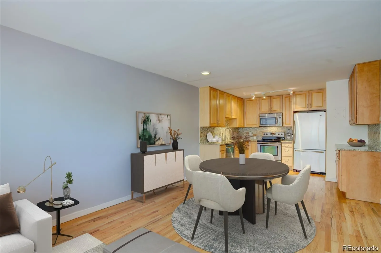 Perfectly located between Capitol Hill, Governor’s and Cheesman Parks, this is a great condo for easy city living. Plenty of walkability to shops, grocery (whole foods and king soopers), restaurants and the local greenspaces. You only need your car to get out of the city. The building has secured keypad entry at front and rear with secured mailroom. Parking is reserved off street on the east side of the building and the great room window overlooks the parking spot. Enter the unit which has a hall closet and solid oak flooring throughout. It has been updated with newer windows, kitchen and bath in recent years. Both bedrooms are well sized for all types of configurations and both have ceiling fans. The primary has additional sconce lighting for reading in bed. The great room offers an updated kitchen with maple cabinets, granite counters, tile backsplash and stainless appliances. This room allows for an informal eating space and tv/reading space. The full bath has tile floor and surround, slab granite vanity and newer designer lighting. The unit has been freshly painted and thoroughly cleaned. It is turnkey and ready to move in. Aside from an owner occupant it could also function as a good rental. Laundry is on site. New AC unit was installed recently. And the building installed a new roof recently as well so no major expenses with a brick exterior. Storage key is in lockbox for cage in bottom floor storage room. Location is key in real estate. This one has it! Come take a look at this great opportunity. Priced well for a 2 bedroom in this location. Information provided herein is from sources deemed reliable but not guaranteed and is provided without the intention that any buyer rely upon it. Listing Broker takes no responsibility for its accuracy and all information must be independently verified by buyers.