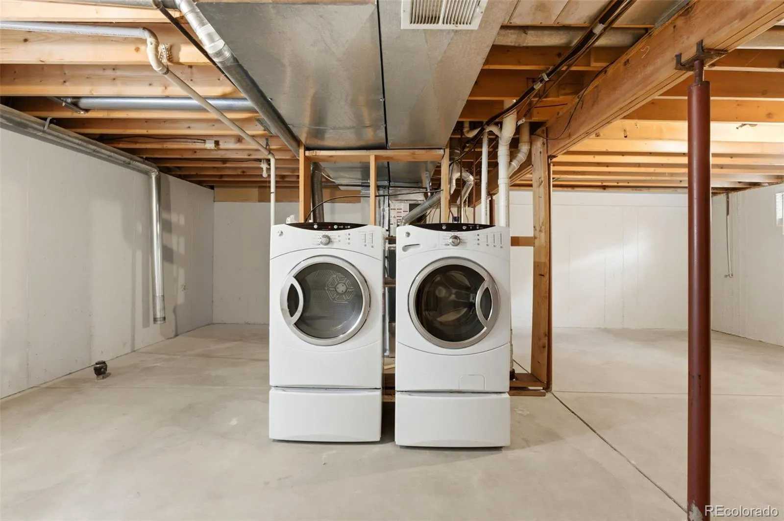 All three spacious bedrooms are located on the upper level. The primary suite offers an attached full bathroom and ample closet space. The large basement provides an excellent opportunity for future customization and finishing. Washer and dryer are included.