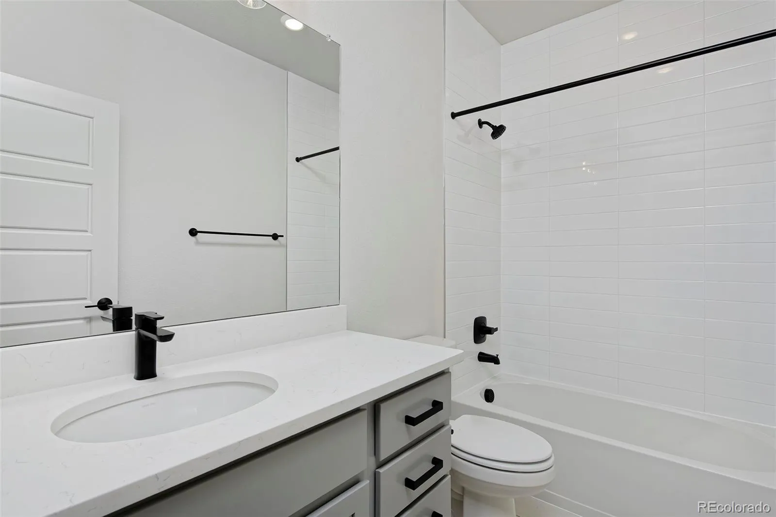 quartz countertops, soft-close cabinetry, and a KitchenAid/Whirlpool appliance suite.