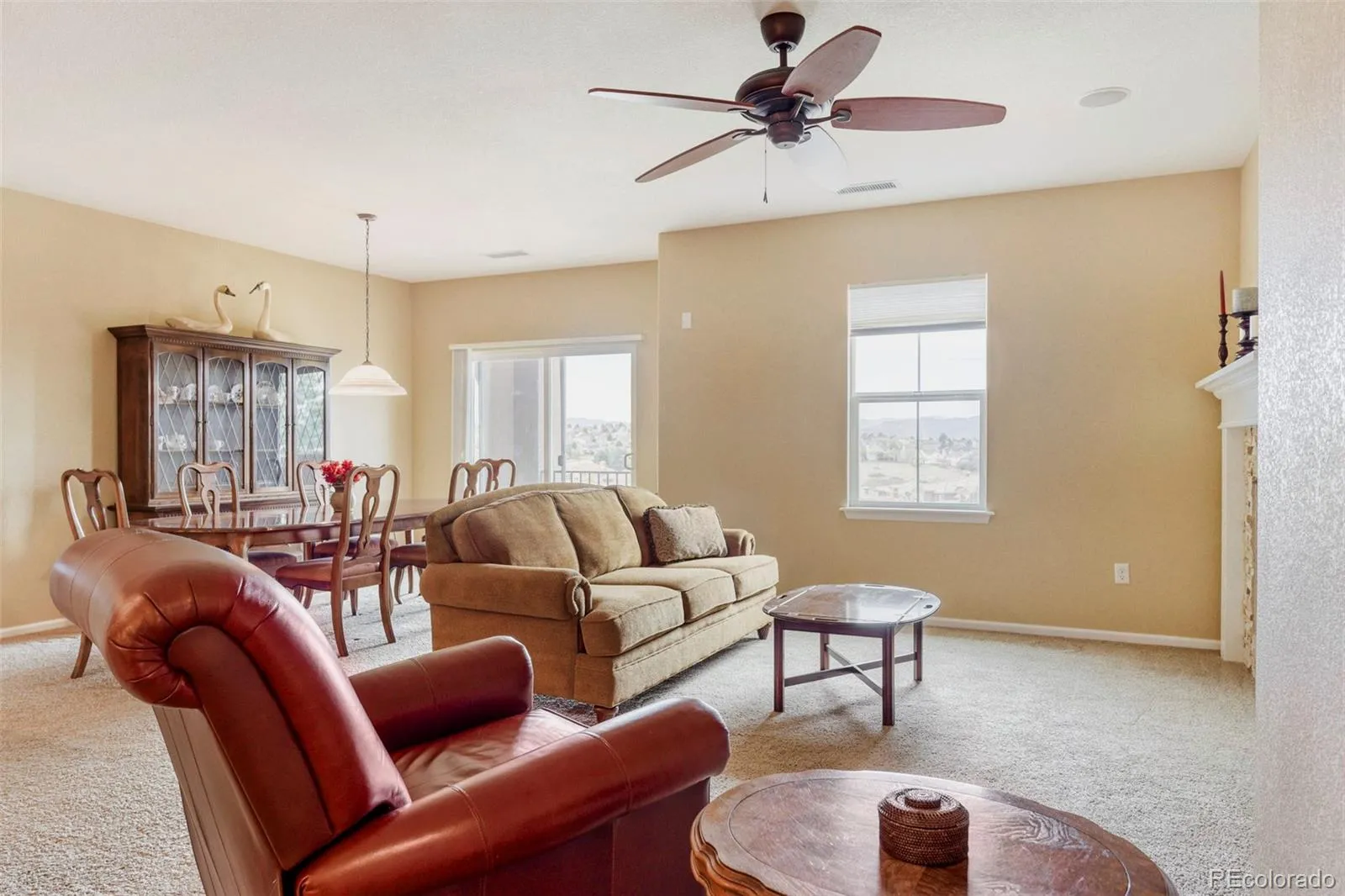 FRONT RANGE MOUNTAIN VIEWS FROM ALMOST EVERY ROOM! The ground-level foyer provides access to an attached 2-car garage. Once upstairs everything you need is on one level. The open main living area includes a kitchen with granite countertops and stainless steel appliances, a family room with a gas fireplace and dining area with sliding glass doors out to the private covered patio. The primary suite includes a walk-in closet and a 5-piece bath with soaking tub and separate shower. There is also sliding glass door for access to the patio with mountain views. Perfect to enjoy your for morning coffee/tea or afternoon happy hour! There is also a secondary bedroom with a full bath and a laundry room with ample cabinets for storage and countertops for folding.