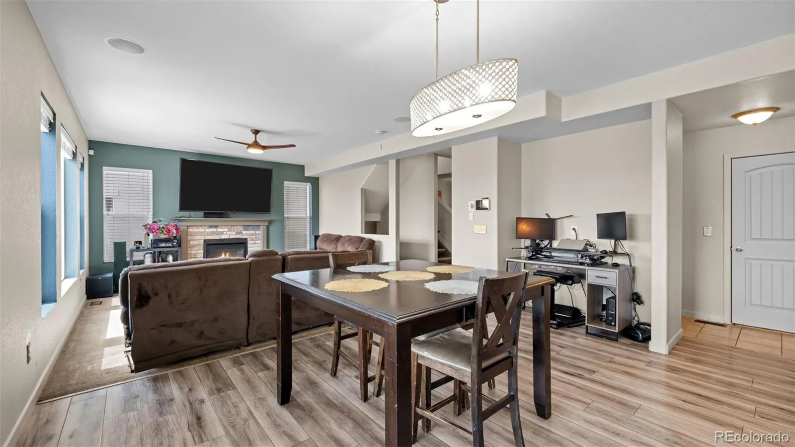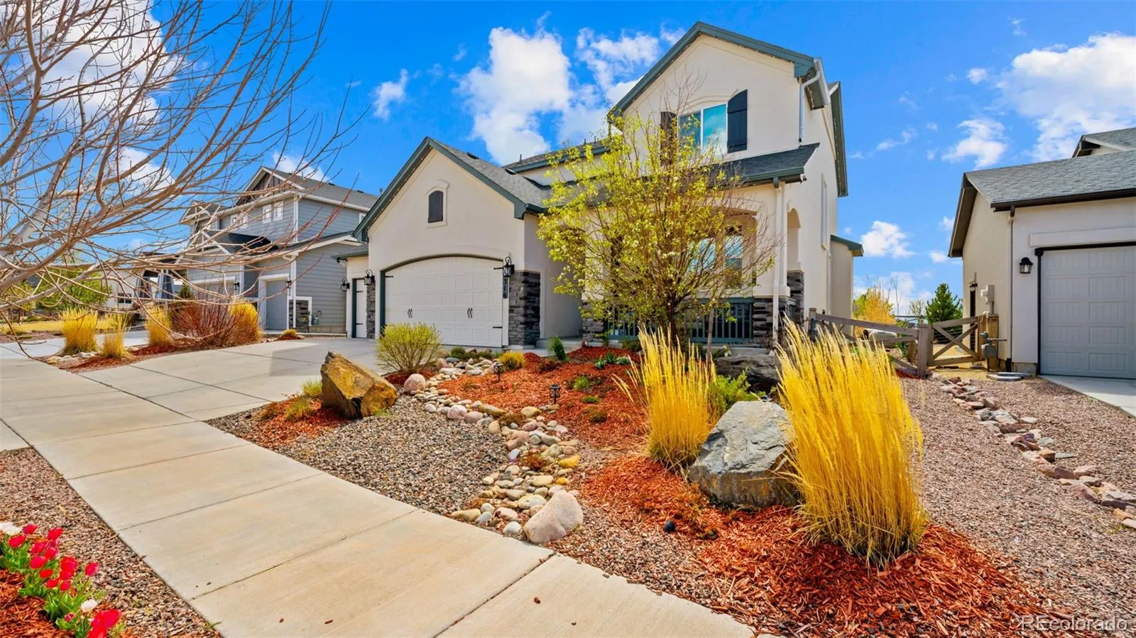 Welcome to this beautifully designed home in the highly sought-after Banning Lewis Ranch community, offering modern living, generous space, and top-tier amenities. Built in 2018, this 5-bedroom, 4-bathroom home features over 3,200 finished square feet of comfortable living space. The main level offers an open-concept layout seamlessly connecting the kitchen, dining, and living areas—perfect for everyday living and entertaining. Upstairs includes a spacious primary suite, two additional bedrooms, a versatile loft, and convenient upper-level laundry. The finished basement adds a large family room and two additional bedrooms, ideal for guests or flexible use. Situated on a 0.20-acre lot with a fully fenced and landscaped yard, this home provides great outdoor space. Residents of Banning Lewis Ranch have access to pools, parks, fitness centers, trails, and more, all near schools, shopping, and dining. This home offers a perfect blend of space, convenience, and community living.