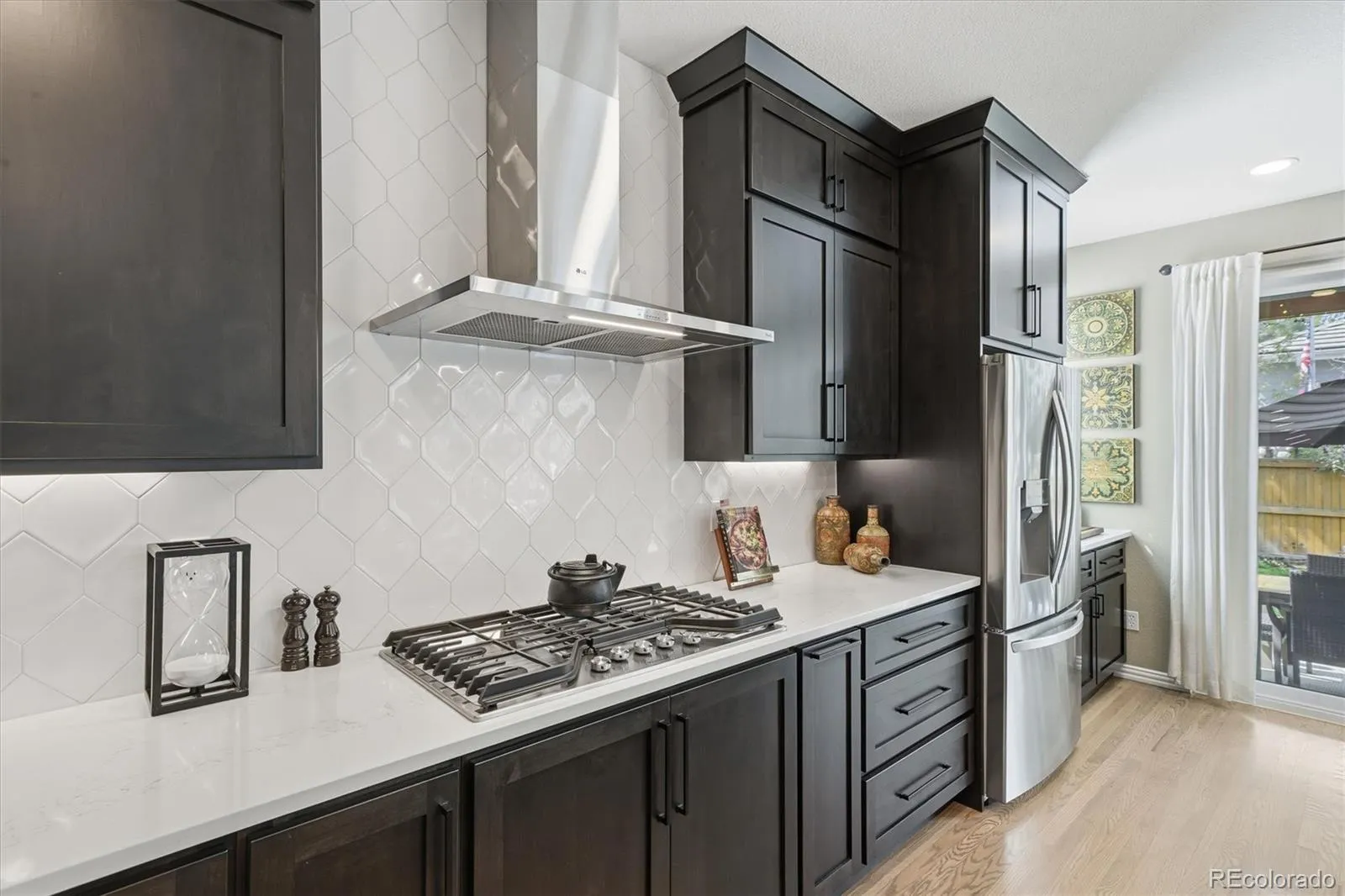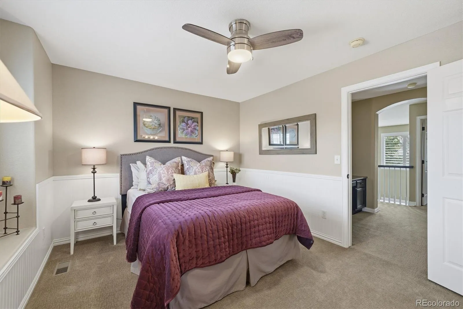 Welcome to this beautifully updated 3-bedroom, 3-bath home in the highly sought-after Highlands Ranch Golf Club community. Situated on a prime corner lot, this residence offers exceptional curb appeal with professional landscaping and an inviting covered front porch. Inside, you’ll find expertly refinished original hardwood floors, new windows, and updated lighting throughout. Soaring ceilings and elegant shutters fill the home with natural light, creating a warm and welcoming atmosphere. The exquisite kitchen serves as the heart of the home, featuring top-of-the-line cabinetry, a custom backsplash, a large center island ideal for entertaining, and high-end appliances including a gas cooktop, double oven/speed oven/microwave combination—perfect for any home chef. The main level offers a dedicated office for remote work, a formal living and dining area, a stylish powder room, and a functional mudroom complete with a utility sink. The living room is anchored by a cozy gas fireplace with a custom tile surround, adding both comfort and style. Upstairs, the spacious primary suite is a true retreat, featuring a luxurious 5-piece en suite bath with dual vanities, a soaking tub, and a separate shower. Enjoy access to the private upper deck, along with a custom Elfa closet system providing smart, efficient storage. Additional highlights include oversized 6-inch gutters and a 3-car tandem garage, offering ample space for vehicles and storage. The finished basement is designed for entertaining, complete with a game table area and wine fridge—perfect for relaxing or hosting guests. With over $200,000 in thoughtful upgrades, this home seamlessly blends functionality and timeless style, offering an exceptional opportunity in one of Highlands Ranch’s most desirable golf course communities.
