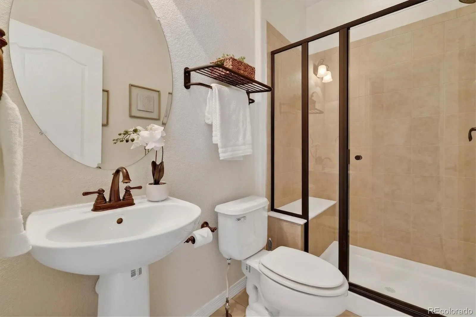Enjoy exceptional views and an inviting open layout in this beautifully maintained home backing to the 12th hole of the Red Hawk Ridge Golf Course which has been thoughtfully updated with new and refinished hardwood floors and newer carpet and paint. The **open great room floor plan** features a gas fireplace and flows into the kitchen and formal dining area with coffered ceiling and accent lighting. The spacious kitchen has granite countertops, stainless steel appliances including a new refrigerator, double oven, gas range, pantry, upgraded cabinets with crown molding, and breakfast bar island. Main-level bedroom and adjacent ¾ bathroom offer flexibility for guests or a home office. The **primary suite showcases panoramic golf course views and includes a separate large sitting area or office**, plus an ensuite bath with double vanity, soaking tub, separate shower, large linen closet, and TWO walk-in closets. Upstairs also features three additional bedrooms and two full bathrooms, including one ensuite bed/bath. Unfinished garden-level basement with 9’ ceilings provides excellent storage or future expansion potential. Enjoy the covered deck overlooking the golf course, natural scrub oak for privacy, plus an additional patio and beautifully landscaped fenced yard with producing apple tree, raspberry and blueberry bushes. Roof replaced in 2021, water heater replaced in 2019, ducts cleaned in 2023. 3-car tandem garage has workshop space providing ample room for vehicles, hobbies, and storage. **This is Colorado living at its best** — views, space, and a flexible floor plan in a sought-after golf course community!