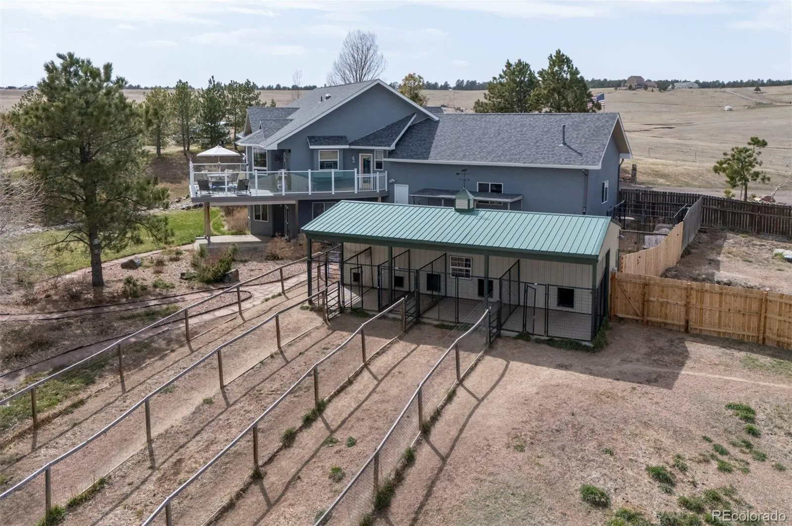 Nestled on 60 beautifully fenced acres, this stunning property offers an unparalleled blend of comfort and functionality. This 5-bedroom home, complete with office and 3 bathrooms, is country living at its finest. The large master suite is a true retreat, featuring vaulted ceilings, a walk-in closet and a 5-piece master bathroom w/ a jetted tub and a walk out to a private deck, providing the ultimate in relaxation. The spacious kitchen is adorned w/ granite countertops, a central island, custom cabinets, wood grain ceramic tile flooring and a walk out to a large glass paneled deck w/ firepit. The great room has an abundance of natural light from the floor to ceiling windows and is warmed by a pellet stove. The fully finished walkout basement features a family room with propane stove and wet bar, 2 bedrooms and a full bath w/ double vanity and washer/dryer hookups. Additional amenities of the home include a main floor laundry room, central A/C, and a whole-house backup generator. The oversized 3-car garage is fully dry-walled and equipped w/ an overhead propane heater, hot water, and floor drains. The fully landscaped yard features a redwood gazebo nestled amongst mature trees. The pastures are fenced and cross-fenced, and lined with electric wire. The front and rear pastures, along w/ the goat and dog yards, include hydrants and tank heaters. The 50×100 metal drive-through barn has a concrete floor, w/ a half bath, 4 stalls w/ turnouts (3 w/ automatic waterers), 2 hydrants, a horse wash bay, work benches, and a heated tack room. The 8×30 chicken coop has water and electricity and is fully fenced. There is a 10×10 loafing shed in a corral near the barn and a 12×24 loafing shed in the pasture that is equipped with an automatic waterer and electricity. This extraordinary property is an ideal blend of luxury and practicality, perfect for those seeking a serene lifestyle w/ top-notch amenities. Don’t miss the opportunity to make this exquisite property your home.
