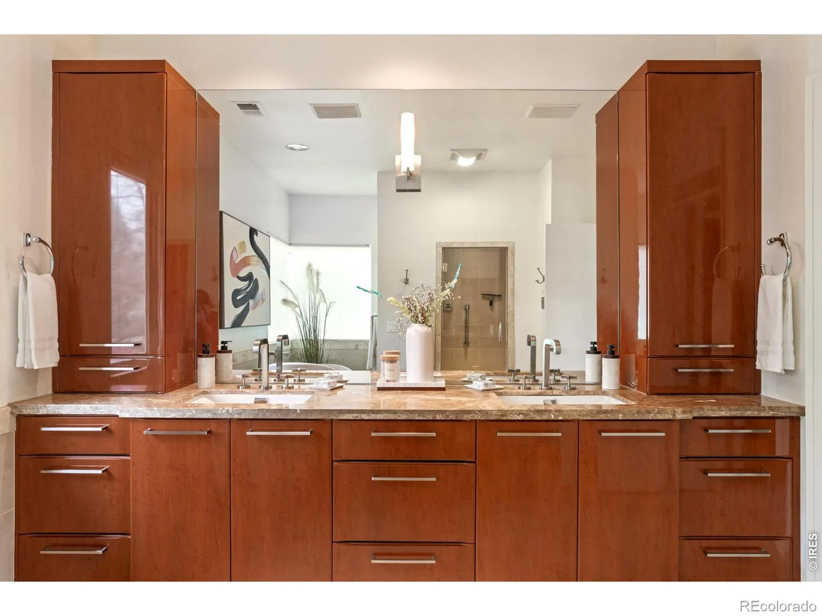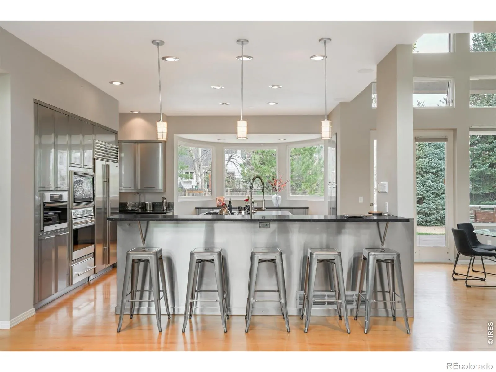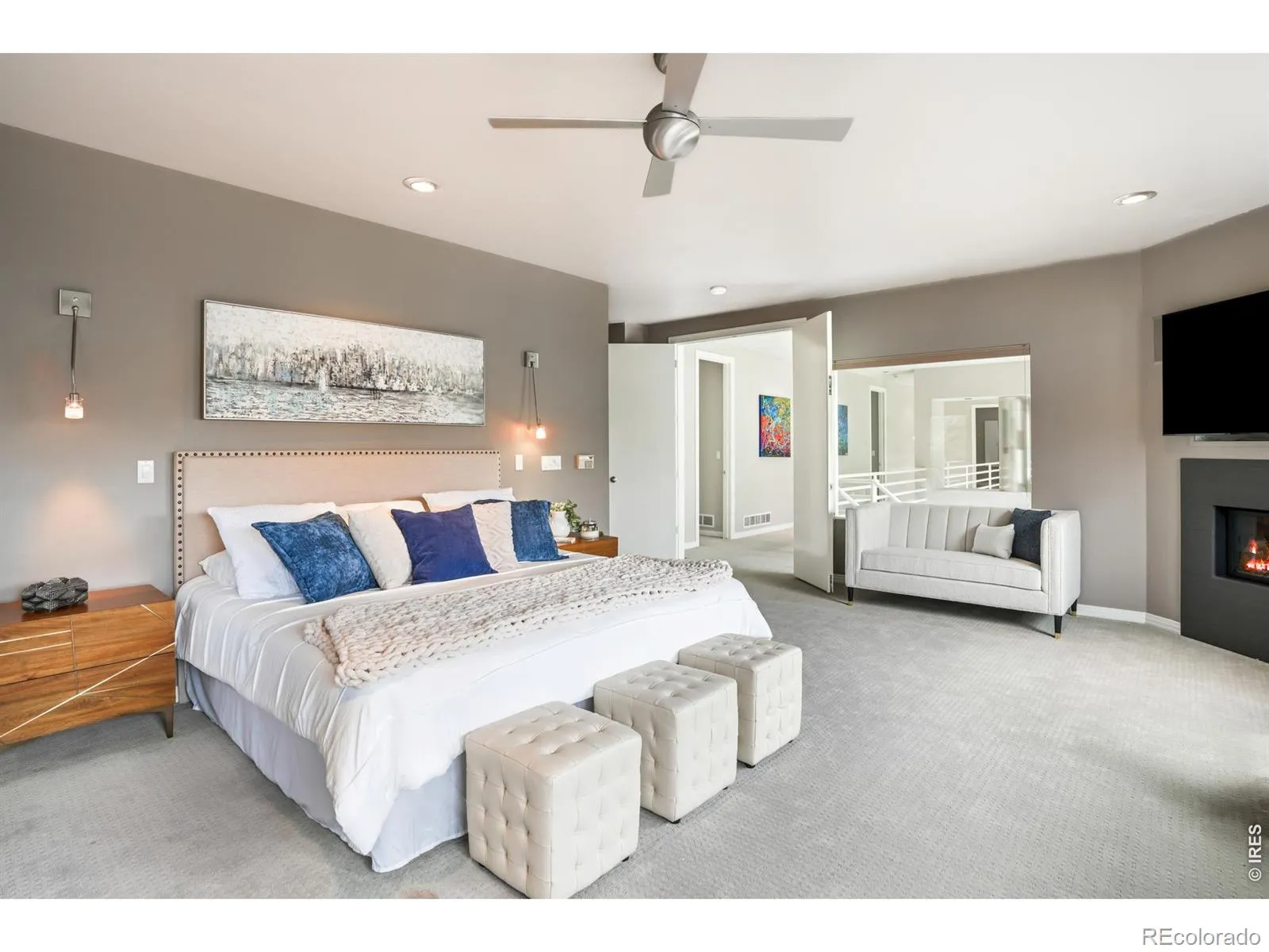 An extraordinary expression of space and light shapes this impressive North Boulder residence. Set on a large lot with a private backyard, this home welcomes with a striking two-story entry bathed in natural light, setting the tone for the expansive interiors beyond. Designed for bothgrand entertaining and everyday comfort, the open floorplan unfolds intoa formal living room with a modern fireplace and built-ins, an elegantdining room with outdoor connectivity and a stunning kitchen featuringa large center island, sleek cabinetry and a wet bar. A dramatic two-story great room showcases a vast wall of windows and a statement fireplace, while a bright home office offers direct outdoor access. The primary suite is a serene retreat, complete with its own fireplace and a spa-like bath with a soaking tub, dual vanity and walk-in shower. Downstairs, a finished basement includes a home theater area and a 1 bedroom, south-facing apartment with a full kitchen. The expansive north-facing backyard deck is perfect for cool summer enjoyment and entertaining. A five-car garage provides exceptional space for vehicles, hobbies and storage, completing this remarkable Boulder offering.