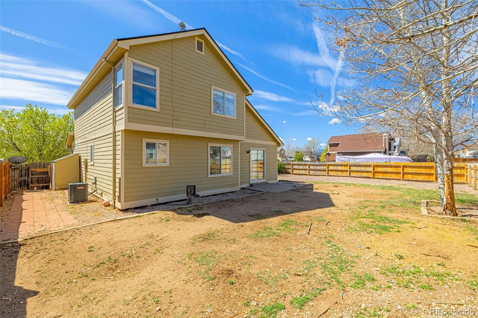 Welcome to a home that makes an impression the moment you walk in. The first steps inside open to a spacious living area with vaulted ceilings, creating a sense of volume and flexibility that’s hard to find at this price point. Whether you’re furnishing for everyday living or hosting, the layout gives you room to make it your own. The main level features durable LVP flooring, balancing style and practicality, while the upper level offers comfortable carpeting for a more relaxed feel. The open-concept design keeps the home connected without sacrificing usable space, making it a strong fit for both daily routines and entertaining. Set on a corner lot in the Morning Sun subdivision, the property offers added breathing room along with a fully fenced backyard, mature tree, and a mix of grass and xeriscaping for lower maintenance without giving up outdoor usability. Location plays a key role here, with convenient access to Peterson Space Force Base, Schriever Space Force Base, and Fort Carson, along with multiple neighborhood parks nearby. Whether you’re relocating, purchasing your first home, or looking for more space, this property checks the boxes that matter most—layout, function, and long-term potential.