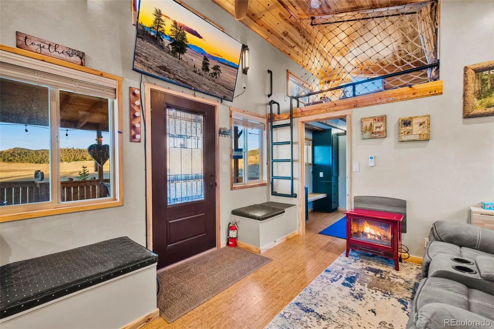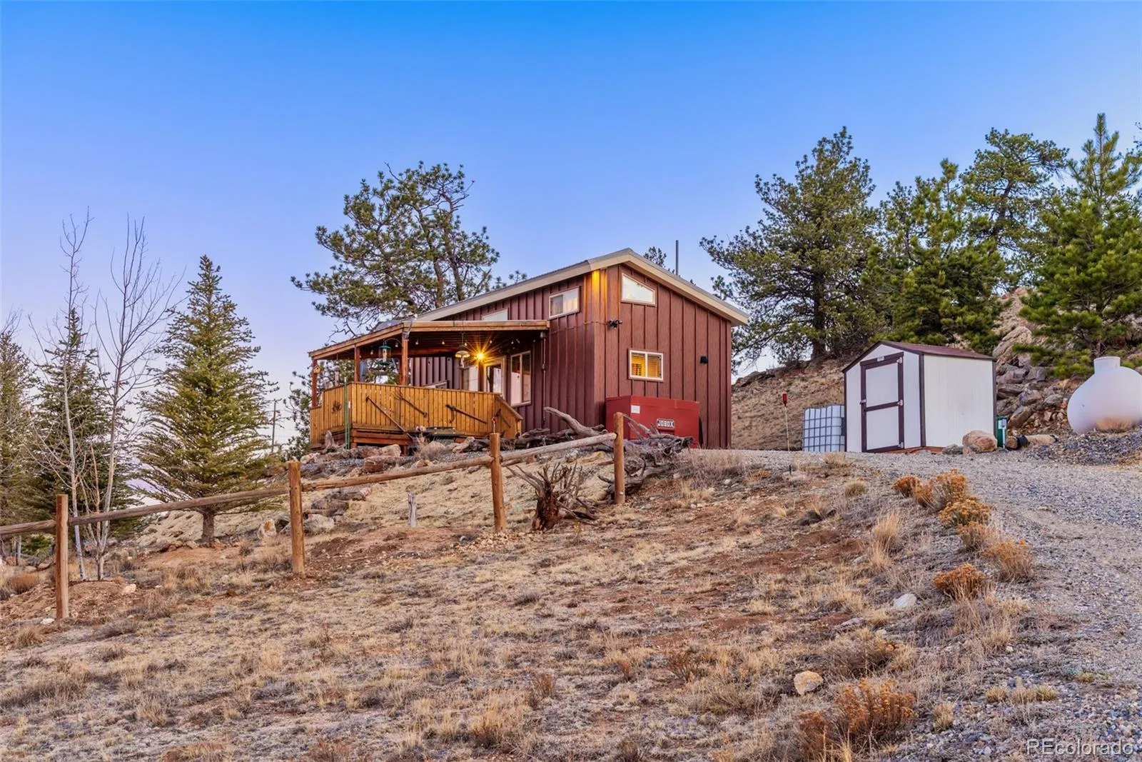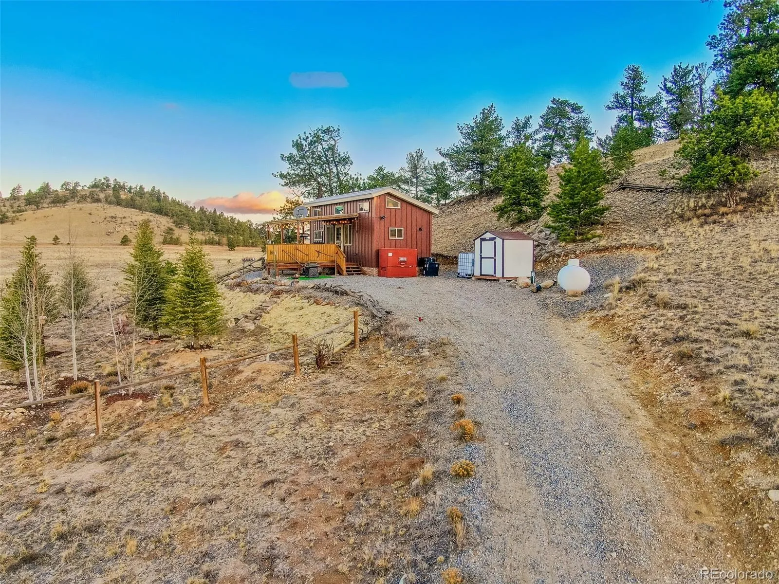 Beautiful park model cabin set on 21.03 acres across three lots, offering privacy, versatility, and incredible Colorado mountain scenery. Surrounded by dramatic rock formations, mature trees, and spectacular panoramic views, the setting is truly one-of-a-kind. The home features quality upgrades throughout and is designed for comfortable mountain living. Inside you will find a spacious great room with a gas fireplace and vaulted tongue and groove ceilings for that cozy mountain feel, a modern kitchen, a ¾ bath with laundry, and a bedroom. There is an additional bedroom on the upper level. A gravel driveway and parking area make this a 4 season getaway. Enjoy the outdoors from the expansive covered Trex deck, perfect for relaxing or entertaining while taking in the breathtaking landscape. The home features steel siding for durability and low maintenance, well, septic system, and leach field in place, and power installed. Two sheds offer additional storage. Three separately platted lots allow for added flexibility. This unique property includes two additional well permits, making it ideal for future expansion or investment. This property offers a rare combination of natural beauty, usable acreage, and development potential—perfect as a private getaway, full-time residence, or investment in the heart of South Park.