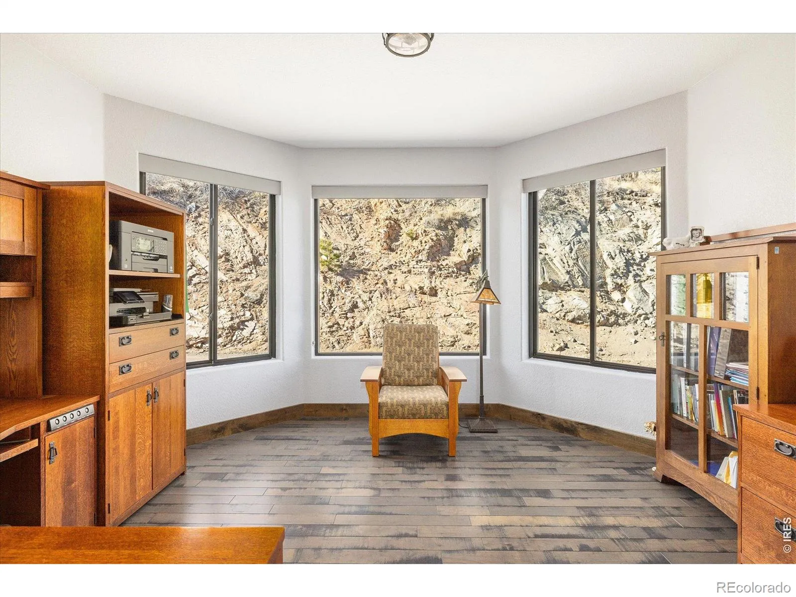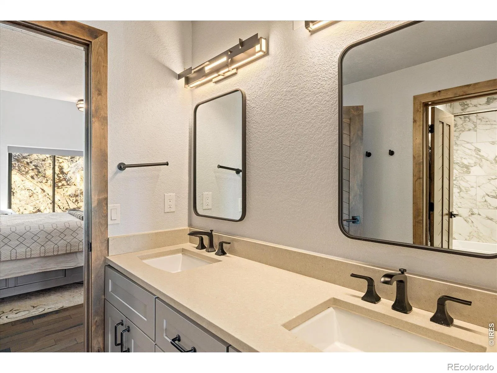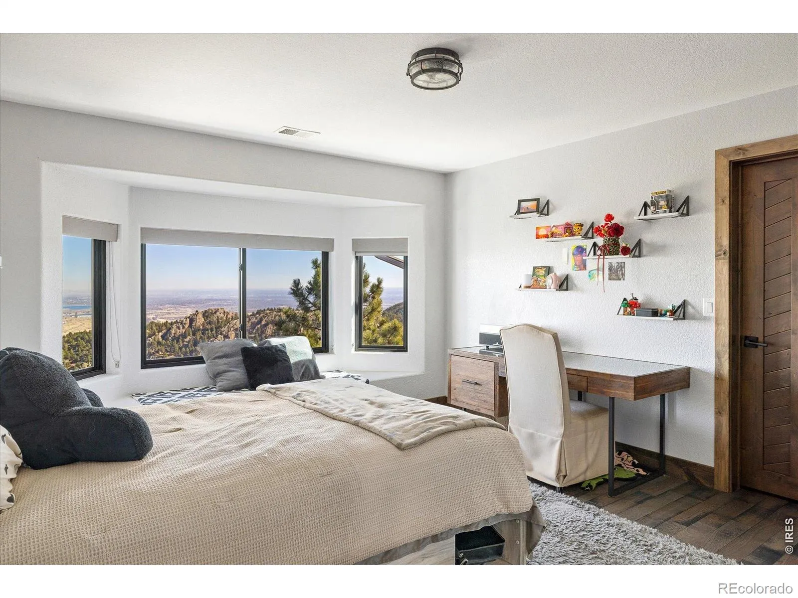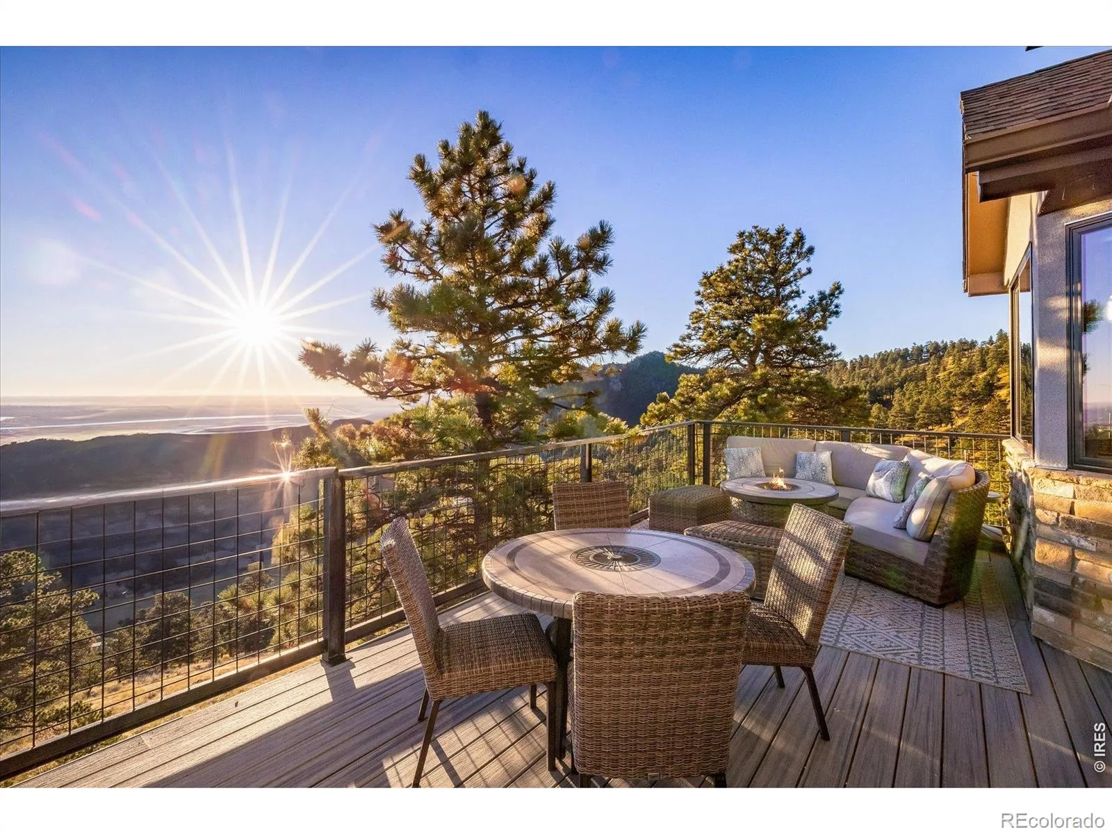 Top of the world views! An amazing opportunity to own this rustic contemporary custom remodeled home on a private 12-acre PRIVATE parcel overlooking the valley in highly-sought Blue Mountain Estates. Full panoramic from Denver to Boulder with stunning sunrises and Denver skyline. This suburban mountain gem boasts cathedral ceiling-height windows, gourmet kitchen, gas fireplace, open/ great room floor plan with main floor primary bed overlooking the city, steam shower with separate vibro-acoustic therapy tub, large walk-in closets, 3 laundry rooms. Walk-out basement level highlights a media room, bar, wine/room, and guest suite. Multi-tiered decks, hot tub, 3 car finished/heated garage round out this authentic mountain living experience. LOCATION 20 minutes to Boulder, Golden & Denver! Unincorporated Jeffco, Golden address (lower taxes). New amenities slated at highway 72 & 93. Compare ppsqft on any new custom builds in the area (without the views!).HOA is voluntary. By Appointment only. Contact listing agent for further information or to schedule a private showing.