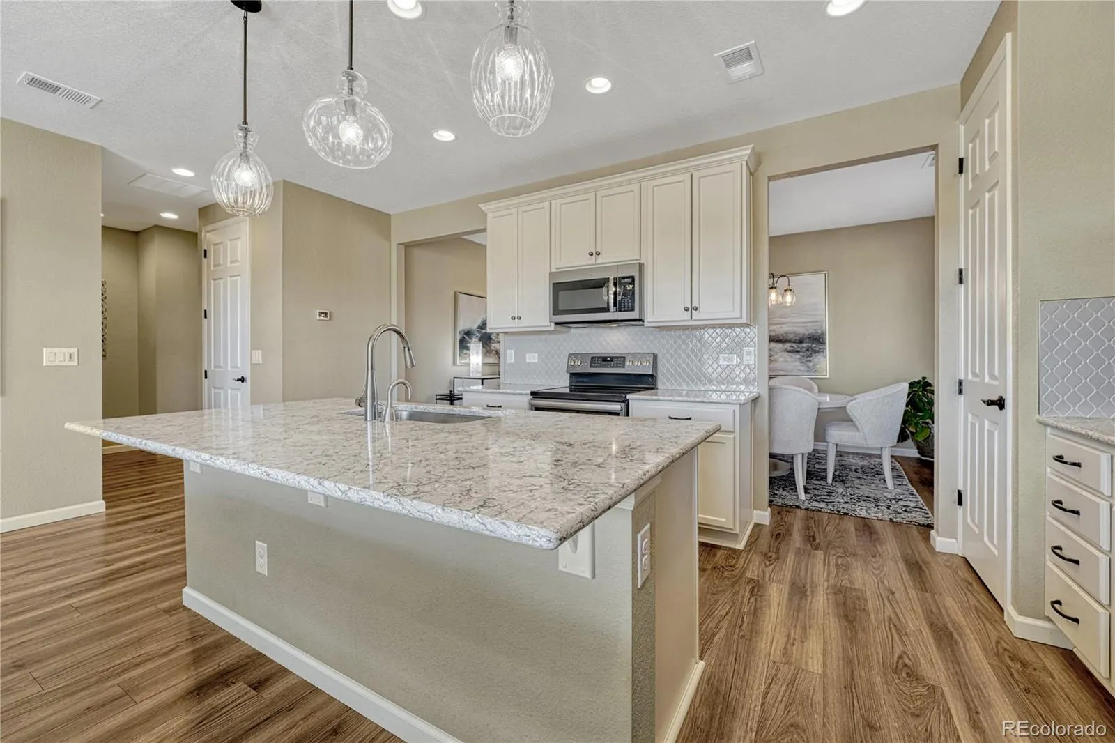 Welcome to this beautifully maintained Richmond American Homes ranch-style home in Castle Rock, offering the perfect blend of comfort, convenience, and Colorado lifestyle. Built just 7 years ago, this move-in ready property features 2 bedrooms, 2 bathrooms, and a thoughtfully designed open-concept floor plan ideal for modern living. Step inside to find luxury vinyl plank (LVP) flooring flowing through the entry, dining room, kitchen, and spacious family room—perfect for entertaining. The kitchen shines with quartz countertops, ample cabinetry, and seamless connection to the main living space. Bedrooms are cozy with plush carpet, while bathrooms feature durable tile flooring. Enjoy true main-level living with a dedicated laundry room, attached 2-car garage, and functional layout that maximizes space and comfort. Step outside to your private outdoor retreat featuring a large covered patio plus an extended uncovered patio, all backing to a peaceful park with stunning mountain views—ideal for relaxing or hosting gatherings. The zero-scaped backyard, full fencing, and sprinkler system in both front and back yards offer low-maintenance living. Location is everything, and this home delivers: Just 0.4 miles to Rock Ridge Elementary, 2.5 miles to Mesa Middle School, 4 miles to Douglas County High School, 2 miles to King Soopers, 6 miles to Sprouts, 7.4 miles to Whole Foods, 6.5 miles to Adventist Health Hospital, 6.2 miles to AMC Theatres, 6.4 miles to Outlets at Castle Rock, 3.4 miles to Downtown Castle Rock, 5.3 miles to Philip S. Miller Park and 3.7 miles (9 minutes) to I-25. With easy access to shopping, dining, parks, schools, and amenities, this home offers the ideal balance of suburban tranquility and urban convenience. http://448bluetealdr.com/