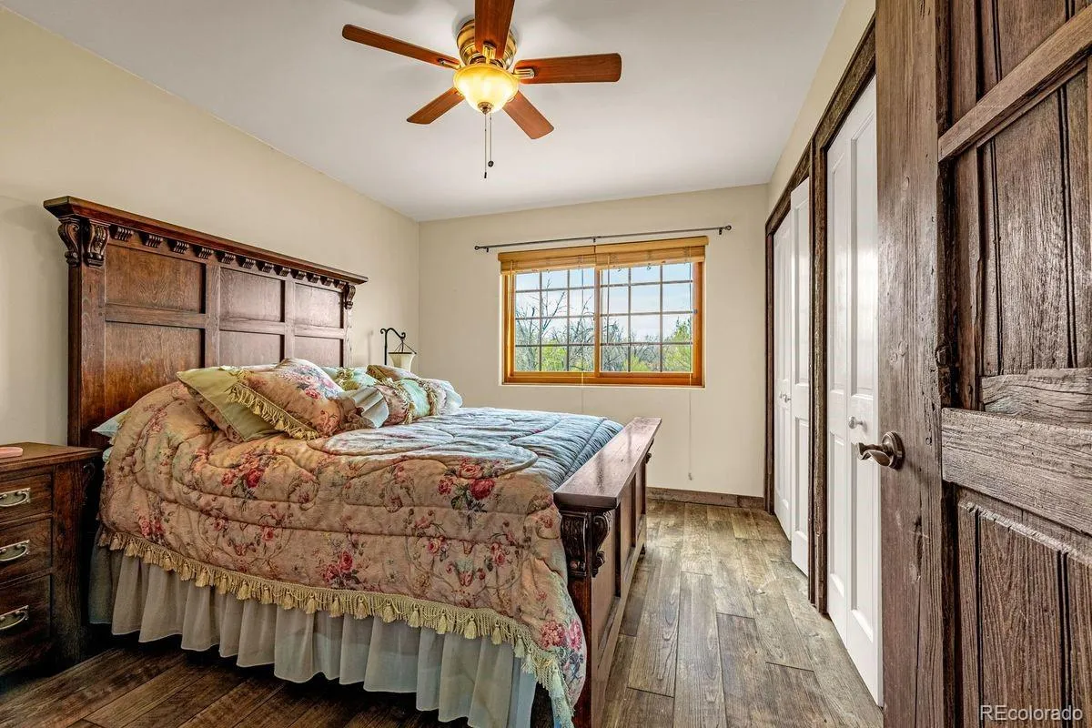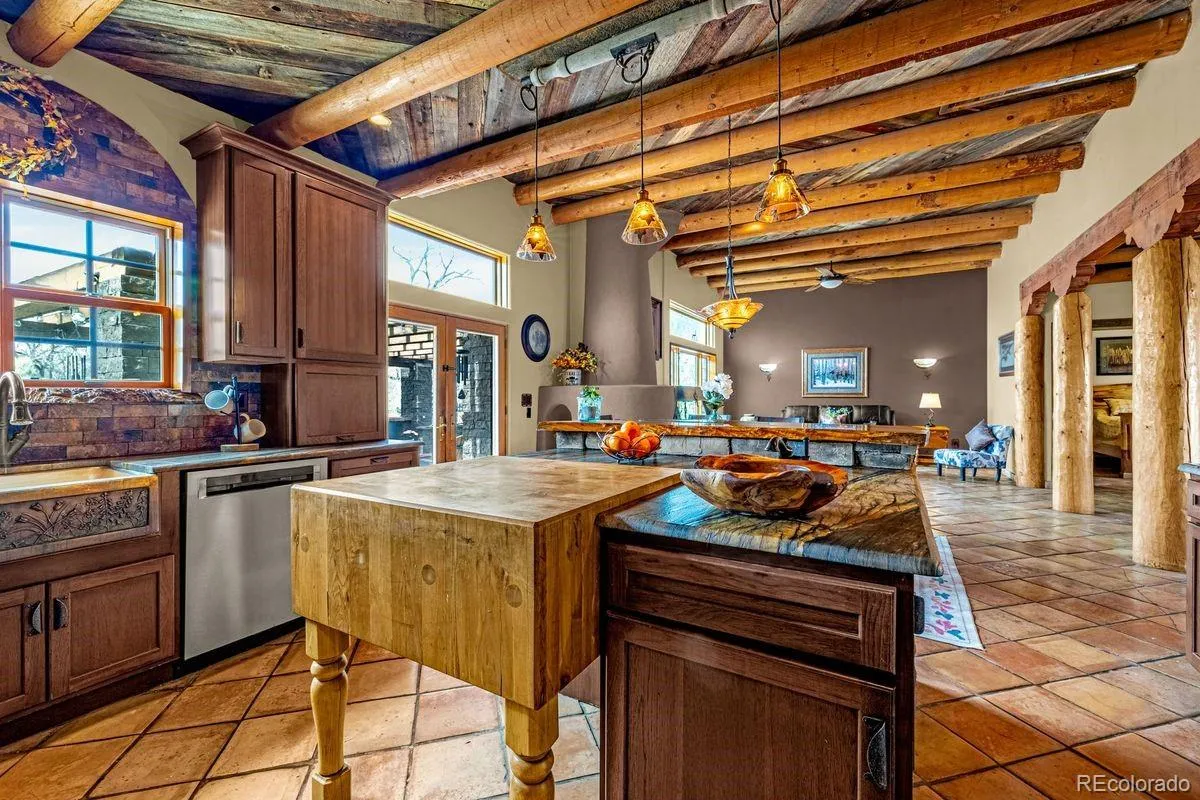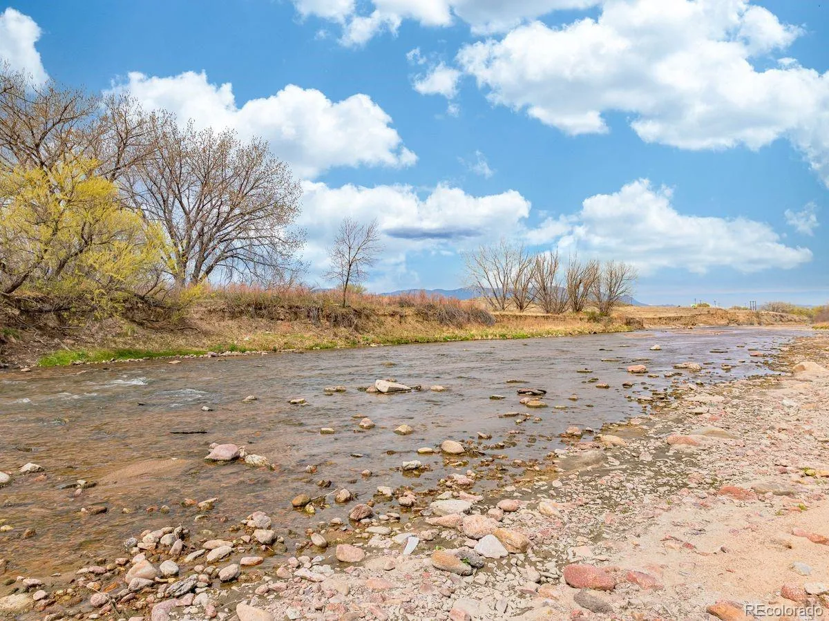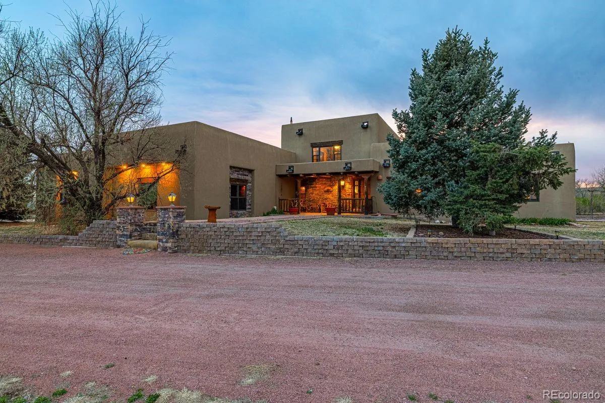 Rare creek side opportunity – 80 close-in acres with almost .75 of a mile of private year round Fountain Creek frontage with towering mature willow and cottonwood trees, wildlife trail corridors throughout the property, a 63×52 4 stall barn, a 90×60 shop and a gorgeous Santa Fe home. Amazing style with exposed wood beams throughout, vigas, antique doors throughout, in-floor radiant heat w/ newer boiler, hand forged gated entry, custom hard maple live edge counters and window seals, stone accent walls, Saltillo tile flooring, expansive high end architectural grade Pella windows. Fully remodeled gourmet kitchen w/ commercial Viking gas range and hood, Subzero refrigerator, antique integrated butcher block, bronze sink, high end cabinetry w/ soft close drawers, beautiful leathered granite counters, pantry, under cabinet lighting. Expansive great room open to the kitchen, Kiva fireplace w/ stone seating, towering ceilings, log beam supports. Main level primary suite w/ Kiva fireplace, walk-out to a large private covered courtyard, 5 piece bath w/ steam shower, jet tub w/ stone surround and a bidet. Phenomenal outdoor entertaining spaces w/ expansive stained patios w/ mature grape vine covered lighted pergolas, wood fireplace, outdoor kitchen, surrounded by lush landscaping, large lilacs, additional paver courtyard, large metal fenced backyard. Large 63×52 barn w/ 4 large stalls w/ runs (and room for additional stalls), rubber mats, metal dividers, tack room, large concrete alleyway, vet room, hay and tractor storage. Multiple fenced pastures w/ lush meadows, outdoor arena, round pen and scenic creek side trails throughout the property for riding. 90×60 insulated and heated workshop/RV garage w/ 16′ walls, large vehicle storage area, walk-in cooler, separate workshop and finished room. This property is truly a wildlife haven w/ geese, turkey, fox, Whitetail deer, elk and a variety of birds. Amazing location w/ quick I-25 access and close to amenities.