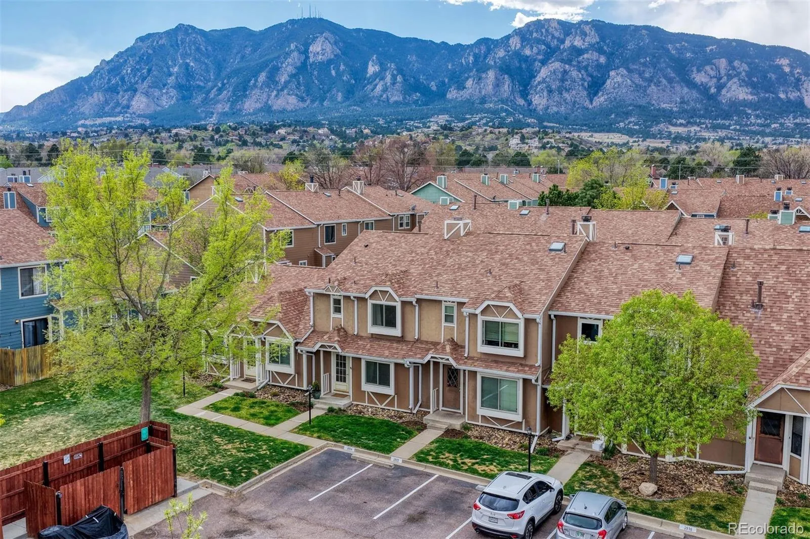 Welcome to your dream townhouse, perfectly situated just southwest of downtown Colorado Springs! A beautifully maintained 2-bedroom, 3-bathroom home blends comfort, style, & functionality—filled w/natural light that creates an inviting atmosphere whether you’re unwinding or entertaining. An open main level featuring sleek luxury vinyl plank flooring that flows effortlessly through the living, dining, & kitchen spaces. The living room is warm and welcoming, highlighted by a charming bay window that fills the space with sunshine. The kitchen shines w/stainless steel appliances, a modern full backsplash, & convenient breakfast bar that opens to the dining area. From there, step out to your private patio—perfect for sipping morning coffee or hosting relaxed evening gatherings. At the heart of the home, vaulted ceilings & a skylight elevate the space, offering endless possibilities for a home office, fitness area, or creative retreat. Upstairs, you’ll find 2 generously sized bedrooms, each w/private bathroom. The primary suite is a true escape, featuring beautiful mountain views & walk-in closet. Upper-level laundry area adds everyday convenience. Ideally located w/in blocks from school, park, shopping, dining, & Fort Carson, this home offers the perfect balance of tranquility & accessibility. Whether you’re looking for a place to call home or a smart investment opportunity, this townhouse delivers.