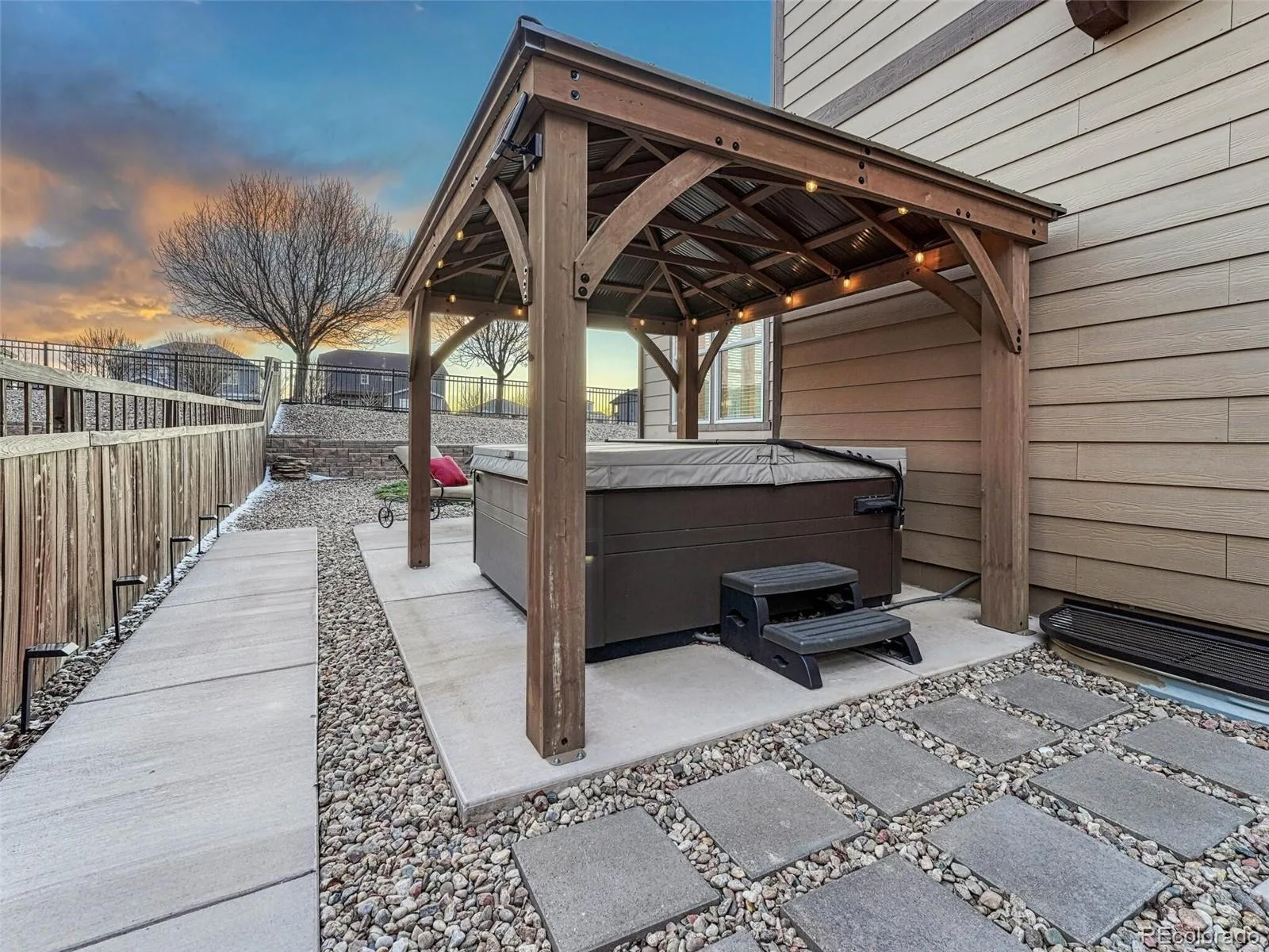 Gorgeous two-story home featuring an open basement ready for future finishing. This home is clean and immaculate and barely lived in. Great fully fenced corner lot with views of hills and nice terrain of the area. The main level offers an ideal entertaining flow between the kitchen, dining area and family room, with wood floors throughout and a gas-log fireplace in the family room. Large kitchen featuring all appliances—gas stove, double oven, microwave, refrigerator—and granite countertops and an abundance of cherry cabinetry. Outside, the backyard boasts two concrete patios, including a secluded patio behind the garage with a gazebo perfect for a hot tub. Upstairs you’ll find a large master suite with a walk-in closet and a luxurious five-piece bath; the laundry room is conveniently located on the upper level and both washer and dryer are included. Recent updates include fresh interior paint, new fence, landscaping with drip lines for all trees, a Nest touchscreen thermostat, Blink security system with doorbell and cameras, new subpanel installed for a hot tub or other use. The home also features an attached three-car garage with service door.