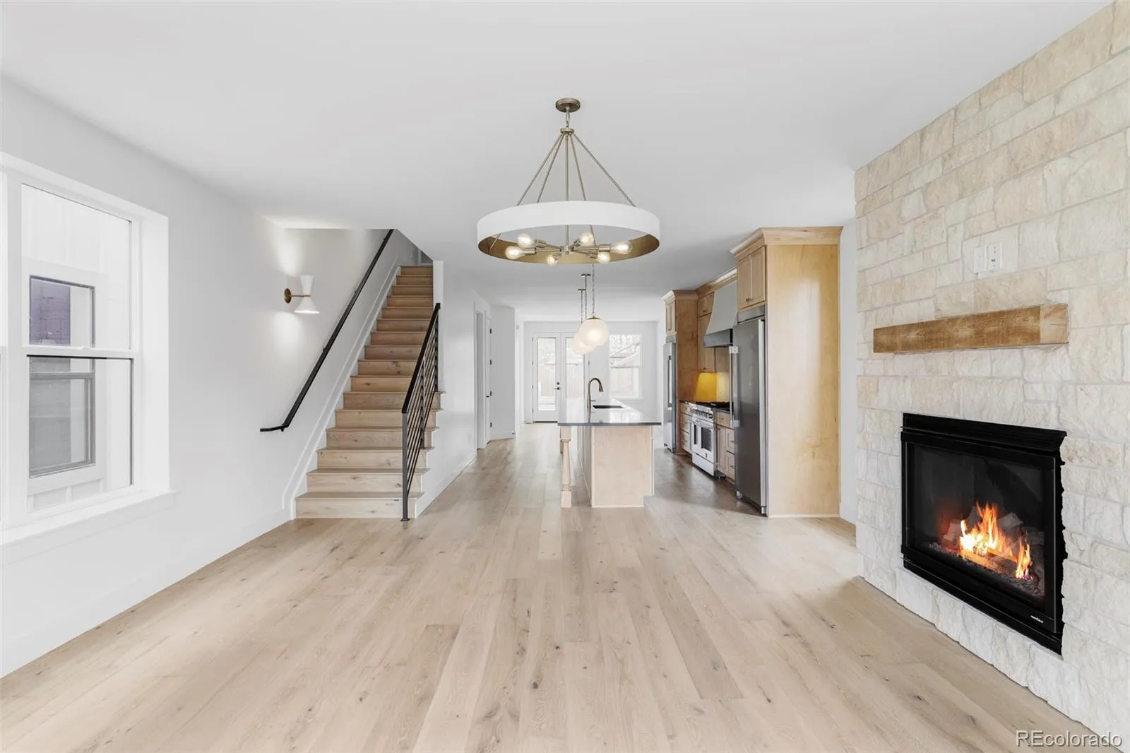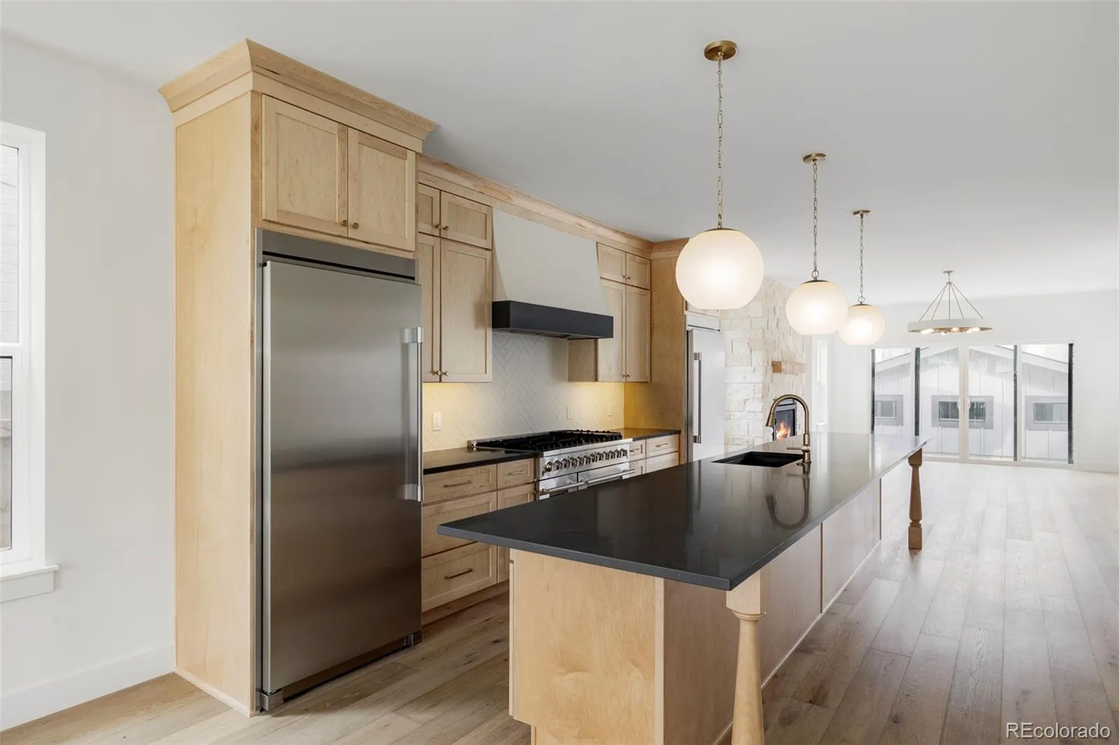 Stunning new construction at 2914 Hooker St in Denver’s vibrant West Highlands. Walk to the shops and restaurants on 32nd, and easy access to Sloan’s Lake! This modern gem features a timeless brick facade that seamlessly blends with the neighborhood’s classic architecture, and is sure to impress with every square foot creatively used. Enjoy the open first floor plan with engineered hardwood floors centered around a chef’s kitchen, anchored by an oversized island, quartz countertops, 48″ dual fuel range, and matching built-in refrigerator & freezer. The focus of the living room is the 42″ gas fireplace with stone-surround and oversized glass sliding doors leading to the backyard. Don’t miss the mudroom that provides ample storage for coats, shoes etc. The upstairs has 14′ vaulted ceilings, engineered hardwood floors, 3 bedrooms, 2 bathrooms, and a laundry room. The luxurious primary suite flaunts a custom walk-in closet and 5-piece bath (walk-in shower, soaker tub, double vanities, private toilet). The carpeted basement has impressive 9′ ceiling clearance and includes a large living room, kitchenette wet bar, two bedrooms(one non-conforming—ideal office/flex), dual-sink bathroom, and second laundry space. The backyard has a covered patio, a gas line for a grill, and a detached 2 car garage. Additional highlights include zoned thermostats per floor, central A/C, tankless water heater large front yard that can be fenced, and a one year builder warranty. Call today to schedule a showing! Open house Saturday 11:00 – 1:00.