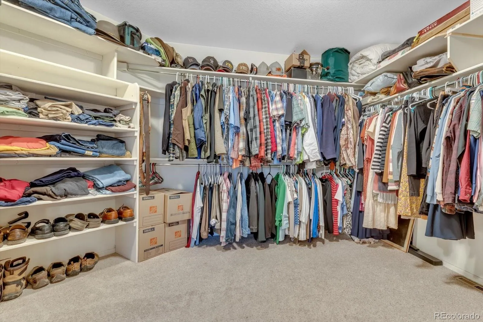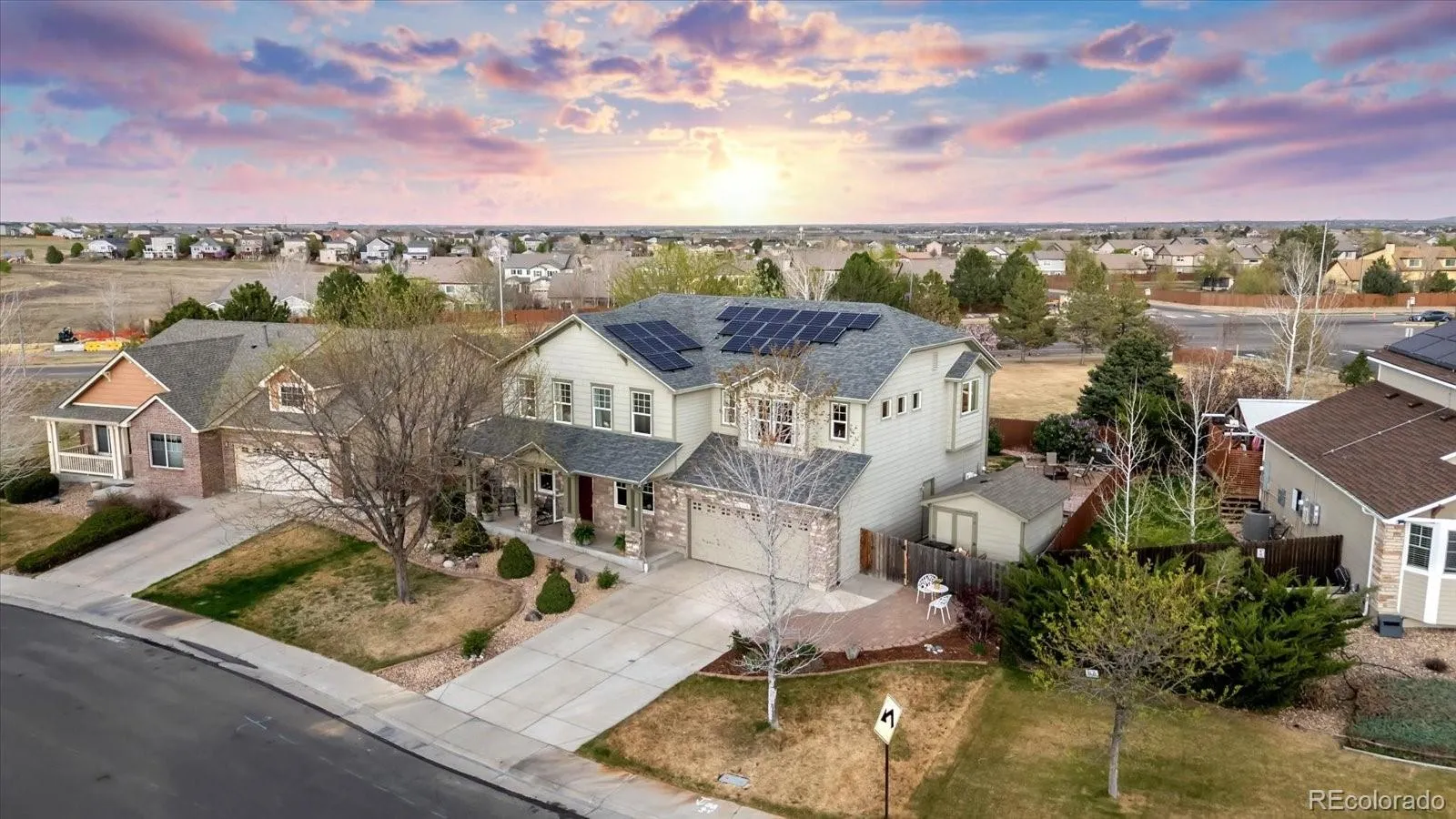 Beautiful large home in desirable Quebec Run with over 4500 square feet! Situated on a huge mature lot that backs to open space, this home has it all! Great curb appeal with new concrete driveway and paver patio for additional parking. Three-car tandem garage allows for workshop or extra storage. Newly refinished real hardwood floors greet you upon entry! Separate dining room allows for entertaining and large gatherings. Updated kitchen includes new quartz countertops, newer stainless steel appliances, updated extended cabinetry and large eat in space. Vaulted ceilings in spacious family room with fireplace and wall of windows for views to the outdoor space are the perfect hang out spot for everyone!. Sunny and bright office on main with half-bath make a great WFH option as well! Upstairs has 4 incredibly spacious bedrooms! The primary bedroom is a beautiful large retreat space with sitting area for relaxing on quiet nights. The large 5-piece primary bath and massive walk-in closet are the perfect compliments to this spa-like retreat space. The secondary full bath has been completely remodeled! Fresh paint throughout home, new roof and gutters will be installed, solar panels for lower utility bills, newer attic fan, newer lvp flooring and carpet installed upstairs. Windows replaced on main level and still under warranty! Basement is fully finished with kitchenette space, dining area, living room, bedroom and updated bathroom for possible income potential. Backyard is massive with mature trees, (two of them peach), lilac bushes and more with new concrete patio, fire pit, shed and more! Great location convenient to shopping, restaurants and downtown Denver!