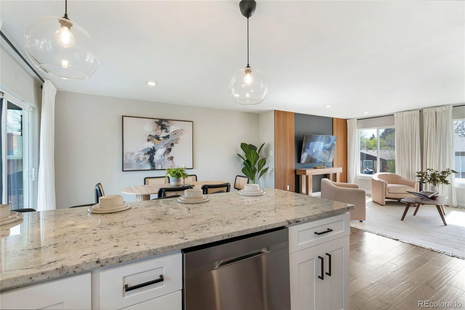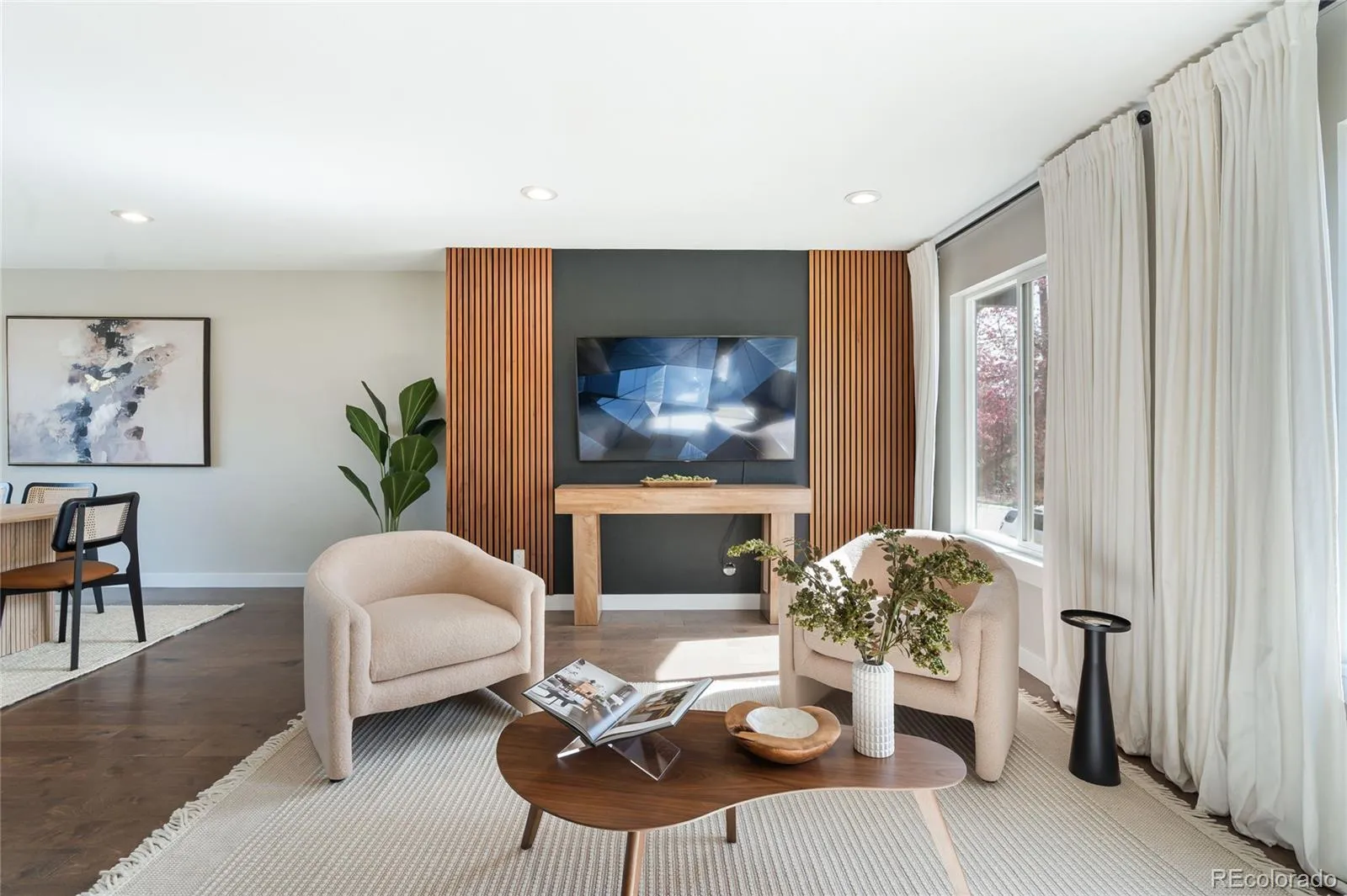 Mid-century vibes, modern updates, and a backyard you’ll never want to leave! Tucked away on a quiet cul-de-sac in Walnut Hills, this 4-bedroom, 2-bath home is full of personality and natural light. From the moment you walk in, you’ll notice the oversized windows, open feel, and that stunning walnut slat accent wall that gives the living space serious design appeal. The home has been thoughtfully updated with granite counters, stainless steel appliances, updated electrical, fresh paint throughout, updated hardware, and an epoxy-coated garage that’s as functional as it is sharp. The layout offers both a living room and a cozy family room with a wood-burning fireplace, perfect for spreading out or hosting friends. Step outside and you’ll find one of the best features: a huge, flat, fully fenced backyard with a freshly painted deck, ready for summer nights, pets, and play. All of this in the Cherry Creek School District, just minutes to DTC, I-25, Fiddler’s Green, and within walking distance to parks, trails, and local favorites like PinDustry. Stylish, functional, and in an unbeatable location, this one checks all the boxes.