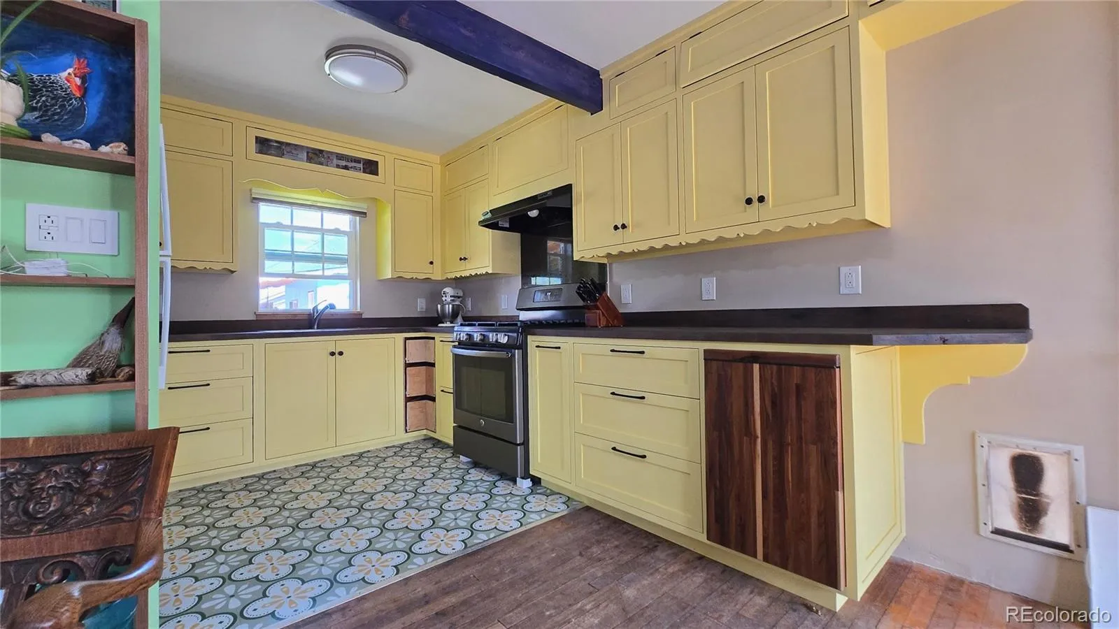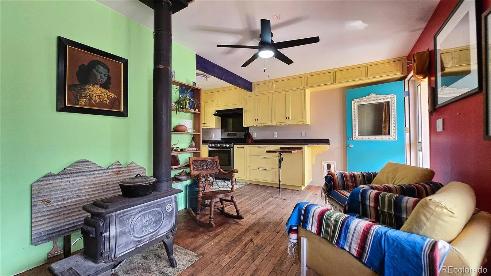 Step into a home that’s anything but ordinary! This charming one bedroom, one bathroom residence is bursting with personality, color, and creative design touches that make it truly one-of-a-kind. From the moment you arrive, the carefully curated garden, the vibrant exterior and welcoming covered front porch set the tone—perfect for morning coffee, evening relaxation, or entertaining guests. Inside a cozy wood-burning stove adds both warmth and ambiance, creating the perfect focal point for those cooler Colorado evenings, and is small enough to be removed during the summer months to allow for additional floor space. The kitchen offers warm cabinetry, ample counter space, and a cozy, functional layout that flows seamlessly into the living area. The bathroom is a standout feature with its modern vessel sink, unique tilework, and contemporary lighting—blending style with everyday convenience. Each space in the home has been curated to maximize comfort while showcasing distinctive character. An additional 10 x 14 structure in the backyard can me made into a home office, quiet reading room, or a small ADU.