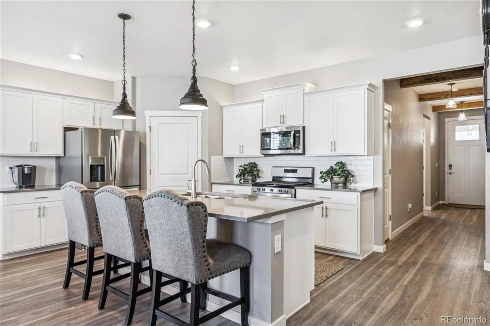 Situated on a premium corner lot in the sought-after Crystal Valley Ranch community, this upgraded ranch home offers the layout and finishes today’s buyers are drawn to. The open-concept design feels both functional and inviting, with the kitchen and main living space seamlessly connected. The kitchen features crisp white cabinetry, quartz countertops, and stainless steel appliances—including a gas range. Also features gorgeous wide-plank flooring throughout the main level. Thoughtful updates set this home apart, including modern lighting, custom fireplace mantels, and quartz surfaces carried into the bathrooms. Stay cool this summer with the central A/C! The tankless water heater enhance overall comfort and efficiency. BONUS: The recently finished garden-level basement (approximately $35K invested) is filled with natural light—something rarely found at this level. Designed with flexibility in mind, the space includes an electric fireplace, custom built-ins, a ¾ bathroom, and ample storage! It would be ideal for a media room, game area, home bar, or future bedroom setup. Head outside, enjoy the extended patio and professionally landscaped yard! It truly is perfect for relaxing or entertaining. The fully fenced lot offers space for pets or play, and the three-car garage provides plenty of room for storage, gear, or hobbies. This beauty is located in a community known for its parks, trails, clubhouse, pool, and fitness center. A must see!