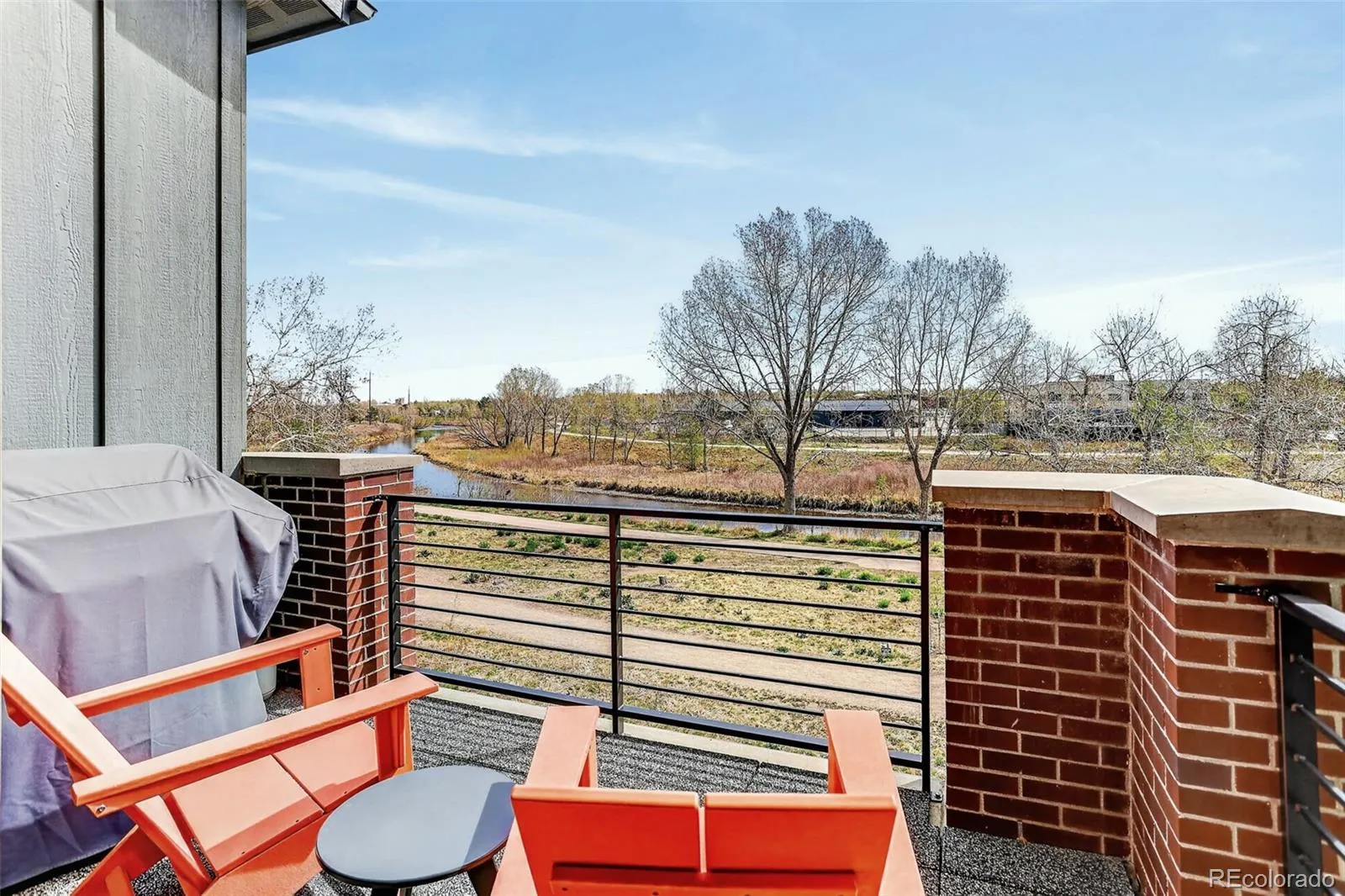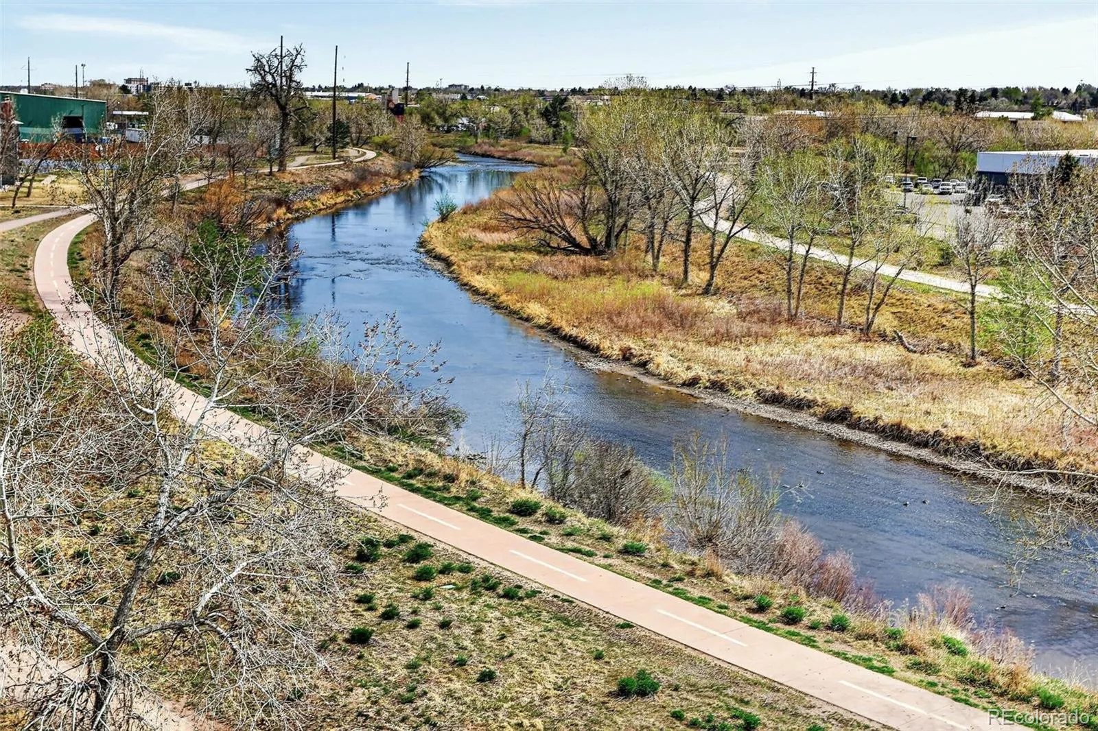 Experience sophisticated riverside living in the center of Littleton. Constructed in 2019 with careful attention to detail, this home offers three bedrooms and four baths across 1,812 square feet of refined living area. Upon entering, the foyer provides access to the main living areas on the upper level as well as the third bedroom located downstairs. High ceilings reaching ten feet, broad windows, and upscale finishes provide an atmosphere of luxury throughout. On the main floor, the open layout centers around a chef’s kitchen outfitted with quartz countertops, a spacious island, and top-quality stainless appliances—perfect for relaxed evenings or entertaining guests. You can also relax on the deck off the living room, whether you’re enjoying your morning coffee, sipping a cocktail, or having a barbecue. Upstairs, you’ll find the peaceful primary suite, complete with a spacious walk-in closet and a luxurious, spa-inspired bathroom. An additional bedroom features its own private bathroom. For added convenience, a washer-dryer unit is also located on the second floor. Crowning the home, the rooftop level serves as your personal sanctuary, where a rooftop deck provides breathtaking vistas of the mountains and South Platte River. Additionally, the rooftop deck is equipped with a retractable awning. Located on the lower level, the third bedroom is adaptable for use as either a guest room or an office. It includes an en-suite bathroom and opens onto a private patio overlooking the river. There is also a finished two-car garage. Adventure is literally at your doorstep! Whether you’re cruising down the Platte River trail to downtown Littleton, exploring the beauty of Hudson Gardens, or biking all the way into Denver, this location is a commuter’s dream. Prefer the train? The light rail is just a hop, skip, and a jump away! It’s the ultimate ‘best of both worlds’ setup—giving you all the outdoor thrills you crave with a gorgeous, cozy retreat to call home.