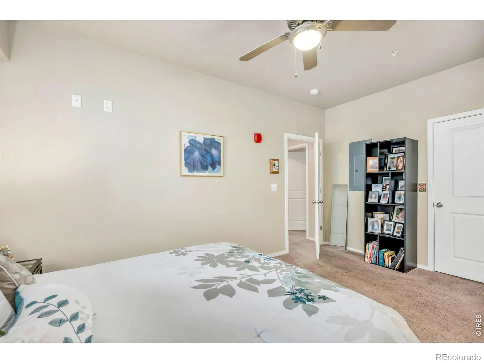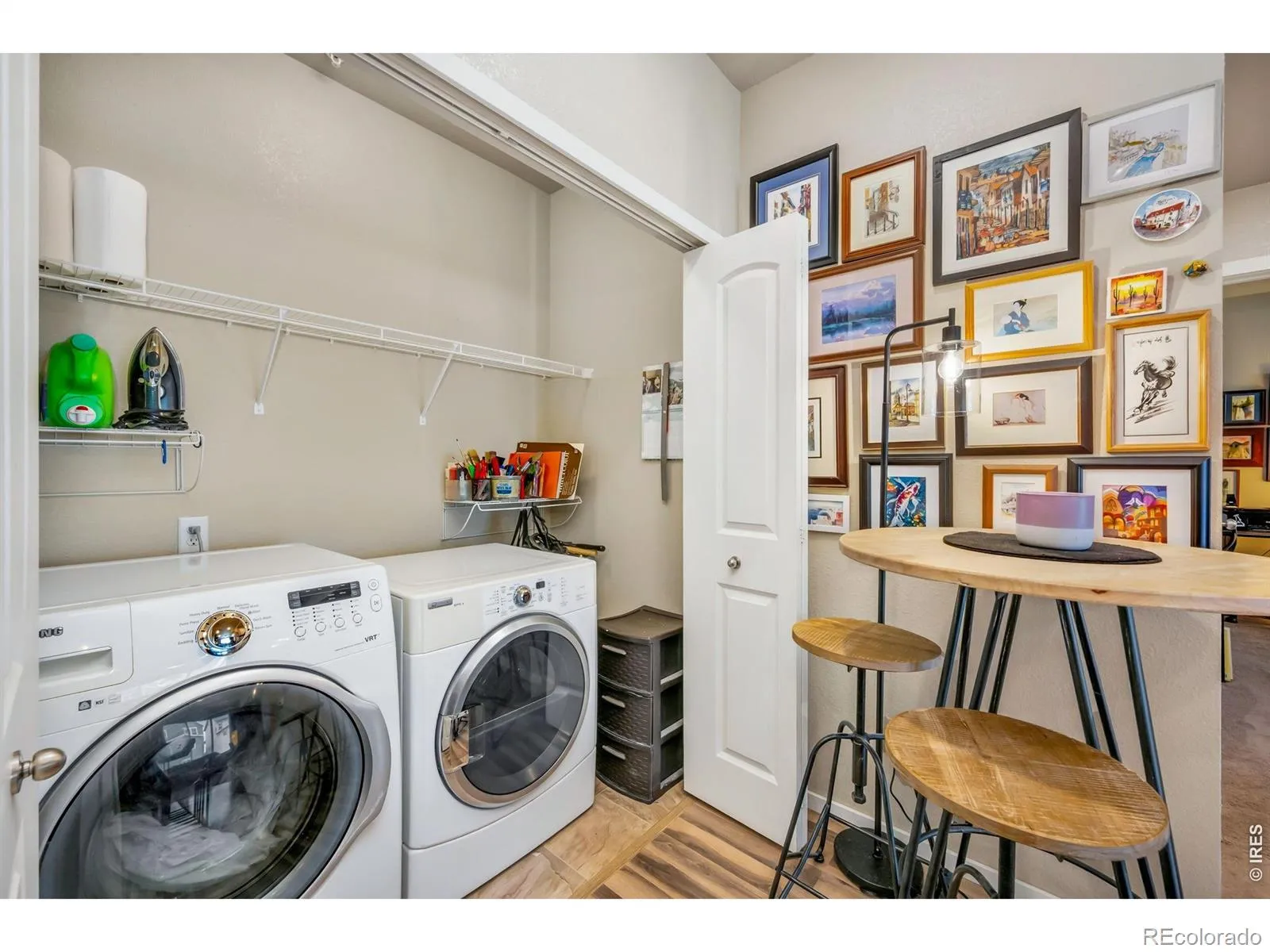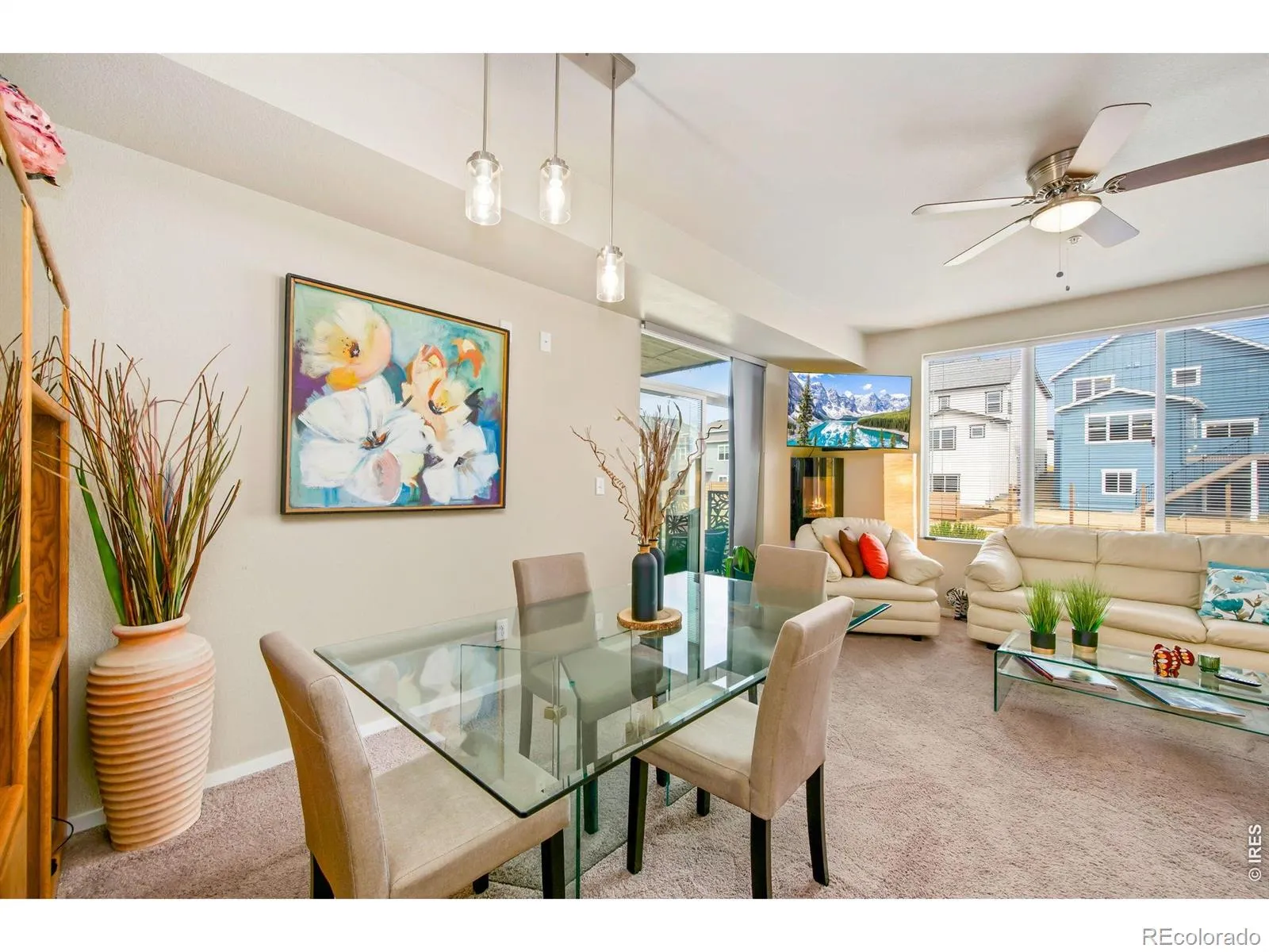 Welcome to easy, low-maintenance living in Loveland’s sought-after Enchantment Ridge community. This well-kept first-floor condo offers 905 square feet of thoughtfully designed space, featuring a comfortable 1-bedroom, 1-bath layout that feels both functional and inviting.The open-concept living area seamlessly connects the kitchen, dining, and living spaces, creating a natural flow for everyday living. The kitchen is equipped with sleek black appliances, ample cabinetry, and a convenient layout that makes cooking and entertaining simple. Large windows bring in great natural light while maintaining a cozy, grounded feel from the main-level setting.The spacious bedroom provides a quiet retreat with plenty of room to relax, while the full bath is clean and well-appointed. A dedicated laundry area with washer and dryer included adds to the home’s convenience, along with included window coverings throughout. Pride of ownership shows, making this home truly move-in ready. Built for efficiency and comfort, the home features 2×6 construction, a 95% efficient furnace, central A/C, a programmable thermostat, and strong insulation to keep energy costs in check year-round. Enjoy the benefits of no metro district tax and an HOA that covers water, sewer, trash, snow removal, lawn care, and exterior maintenance-perfect for those seeking a lock-and-leave lifestyle. Located near a neighborhood playground with easy access to shopping, dining, and commuter routes, this home offers both convenience and community. Buyers may qualify for the City of Loveland’s Affordable Housing Program (up to 70% AMI) and will sign a deed restriction at closing if applicable, though qualification is not required for purchase. A great opportunity to own a modern, efficient, and affordable home in a desirable location.