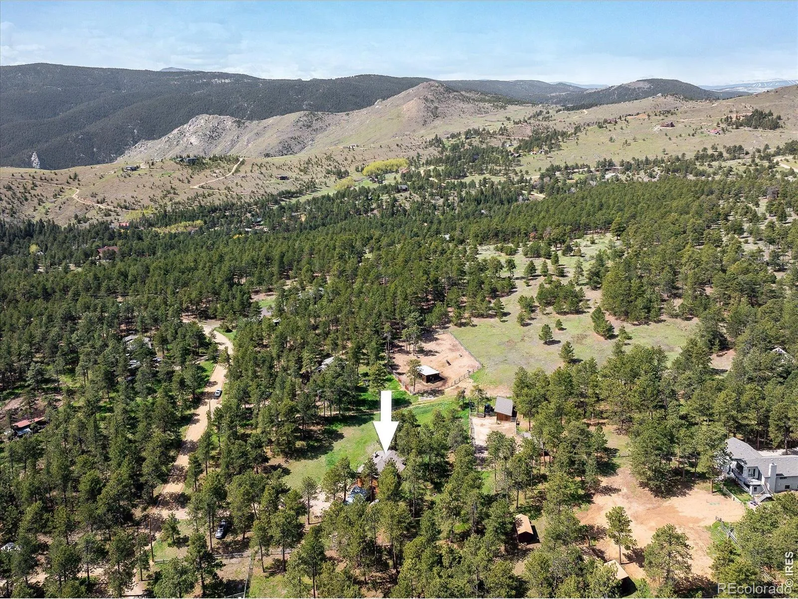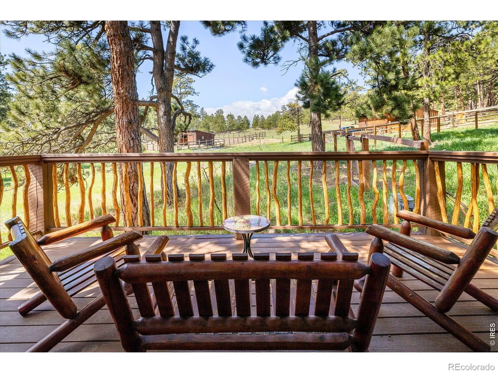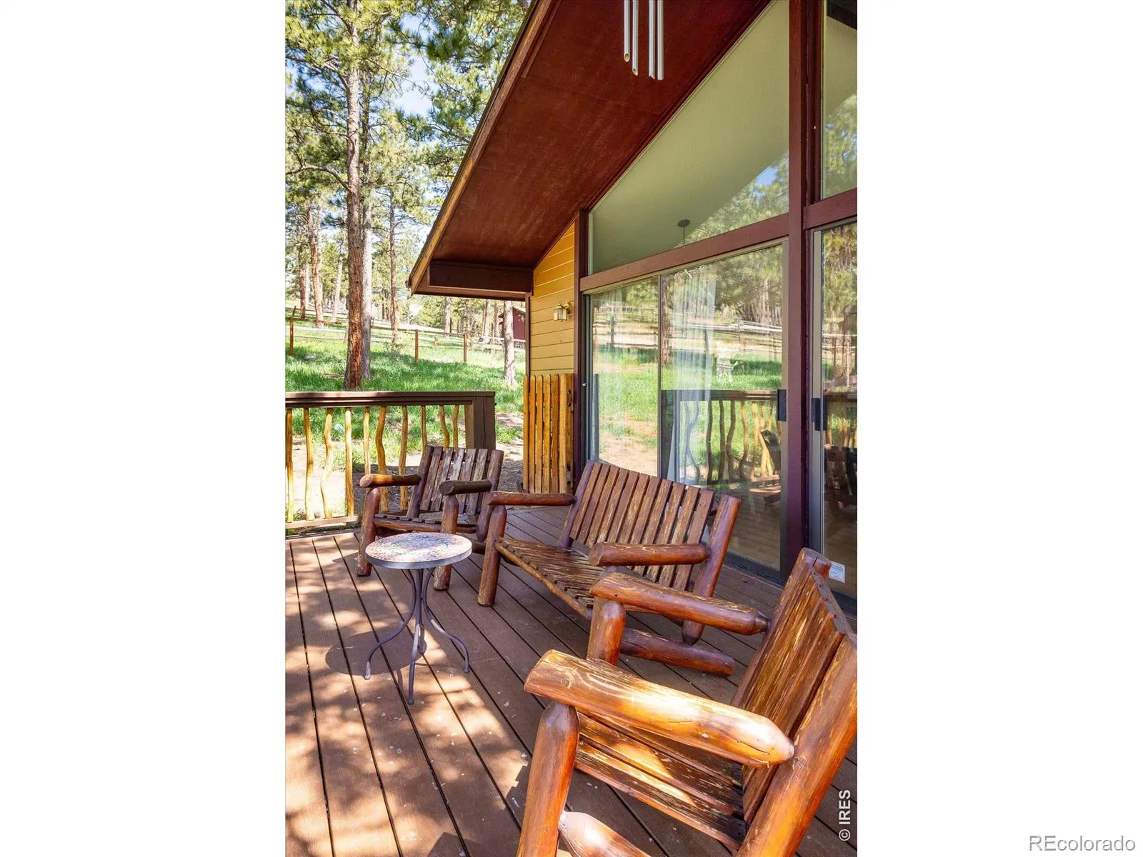 Enveloped in peaceful serenity, this Mountain Meadows residence sits on a picturesque 1.31-acre lot. Wildlife sightings are truly magical and abundant year-round, from elk and moose to summer hummingbirds. Step inside to discover a thoughtfully designed open floor plan offering effortless indoor-outdoor connectivity. The bright and airy layout features soaring vaulted ceilings and a large slider framed by floor-to-ceiling windows, showcasing sweeping views of the meadows beyond. The 2024 rebuilt Trex wraparound deck with decorative pretzel-style railings adds charm and character. The main living area flows seamlessly into the kitchen, with a charming mix of rustic and modern elements including exposed wood beams and natural log posts, rich wood cabinetry, stainless steel appliances and expansive windows that frame serene woodland views. The primary bedroom serves as a peaceful haven with its own private deck. Enjoy the comfort of a Jotul wood stove in the lower-level family room featuring natural stone and wood accents, perfect for chilly mountain nights. A two-car carport with a large storage area or loafing shed adding everyday convenience and extra space for gear, tools, or seasonal items. Outside, the fenced backyard provides room for pets, gardening, or simply soaking in the stillness of the surroundings. A new water filtration system was also added in 2024. Outdoor adventures await nearby at Betasso Preserve, Sugarloaf Mountain and the Switzerland Trail. This home is ideal for those seeking a refined mountain lifestyle with close proximity to Boulder amenities.