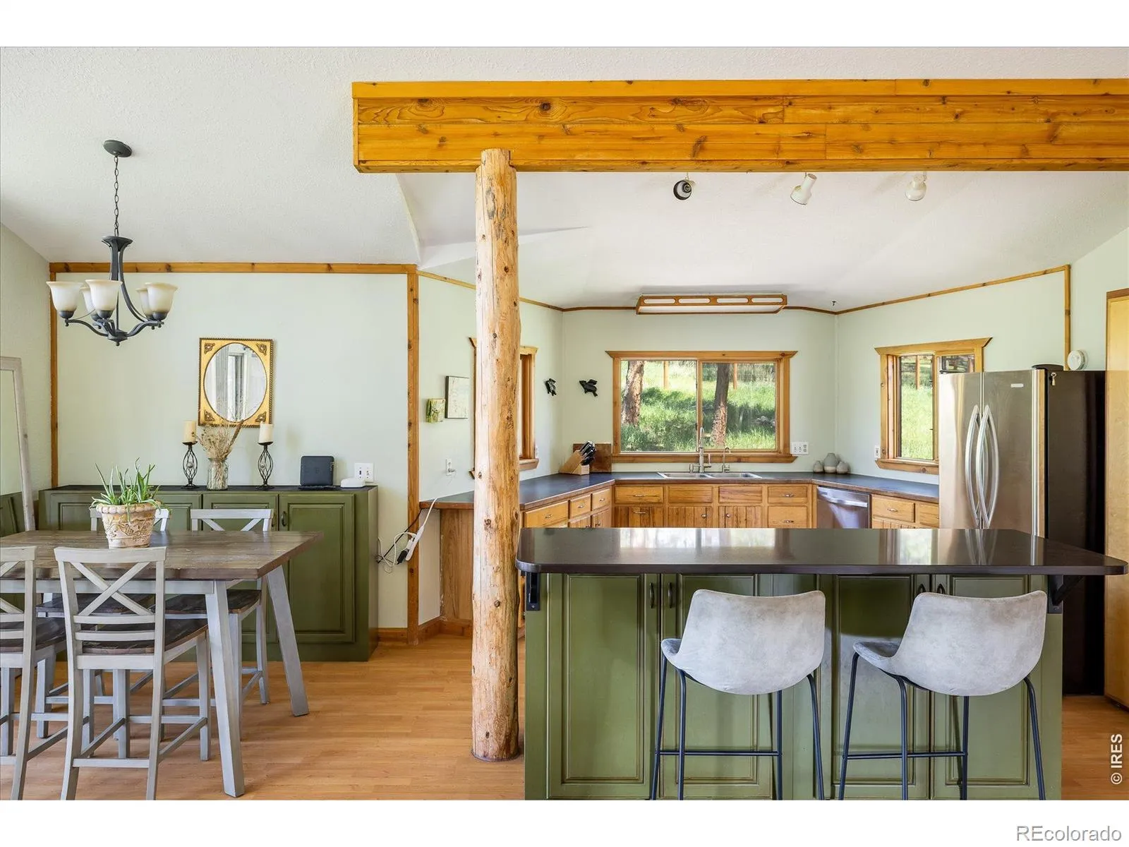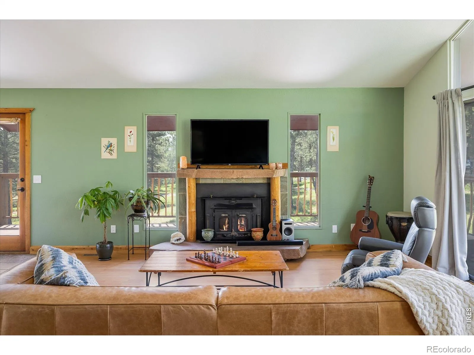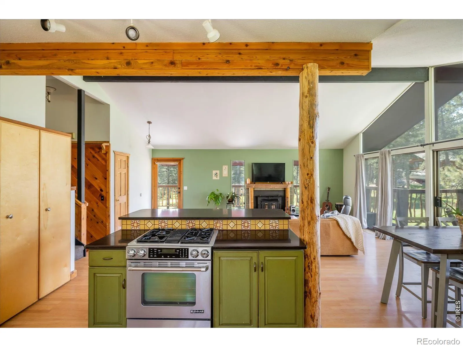 Enveloped in peaceful serenity, this Mountain Meadows residence sits on a picturesque 1.31-acre lot. Wildlife sightings are truly magical and abundant year-round, from elk and moose to summer hummingbirds. Step inside to discover a thoughtfully designed open floor plan offering effortless indoor-outdoor connectivity. The bright and airy layout features soaring vaulted ceilings and a large slider framed by floor-to-ceiling windows, showcasing sweeping views of the meadows beyond. The 2024 rebuilt Trex wraparound deck with decorative pretzel-style railings adds charm and character. The main living area flows seamlessly into the kitchen, with a charming mix of rustic and modern elements including exposed wood beams and natural log posts, rich wood cabinetry, stainless steel appliances and expansive windows that frame serene woodland views. The primary bedroom serves as a peaceful haven with its own private deck. Enjoy the comfort of a Jotul wood stove in the lower-level family room featuring natural stone and wood accents, perfect for chilly mountain nights. A two-car carport with a large storage area or loafing shed adding everyday convenience and extra space for gear, tools, or seasonal items. Outside, the fenced backyard provides room for pets, gardening, or simply soaking in the stillness of the surroundings. A new water filtration system was also added in 2024. Outdoor adventures await nearby at Betasso Preserve, Sugarloaf Mountain and the Switzerland Trail. This home is ideal for those seeking a refined mountain lifestyle with close proximity to Boulder amenities.