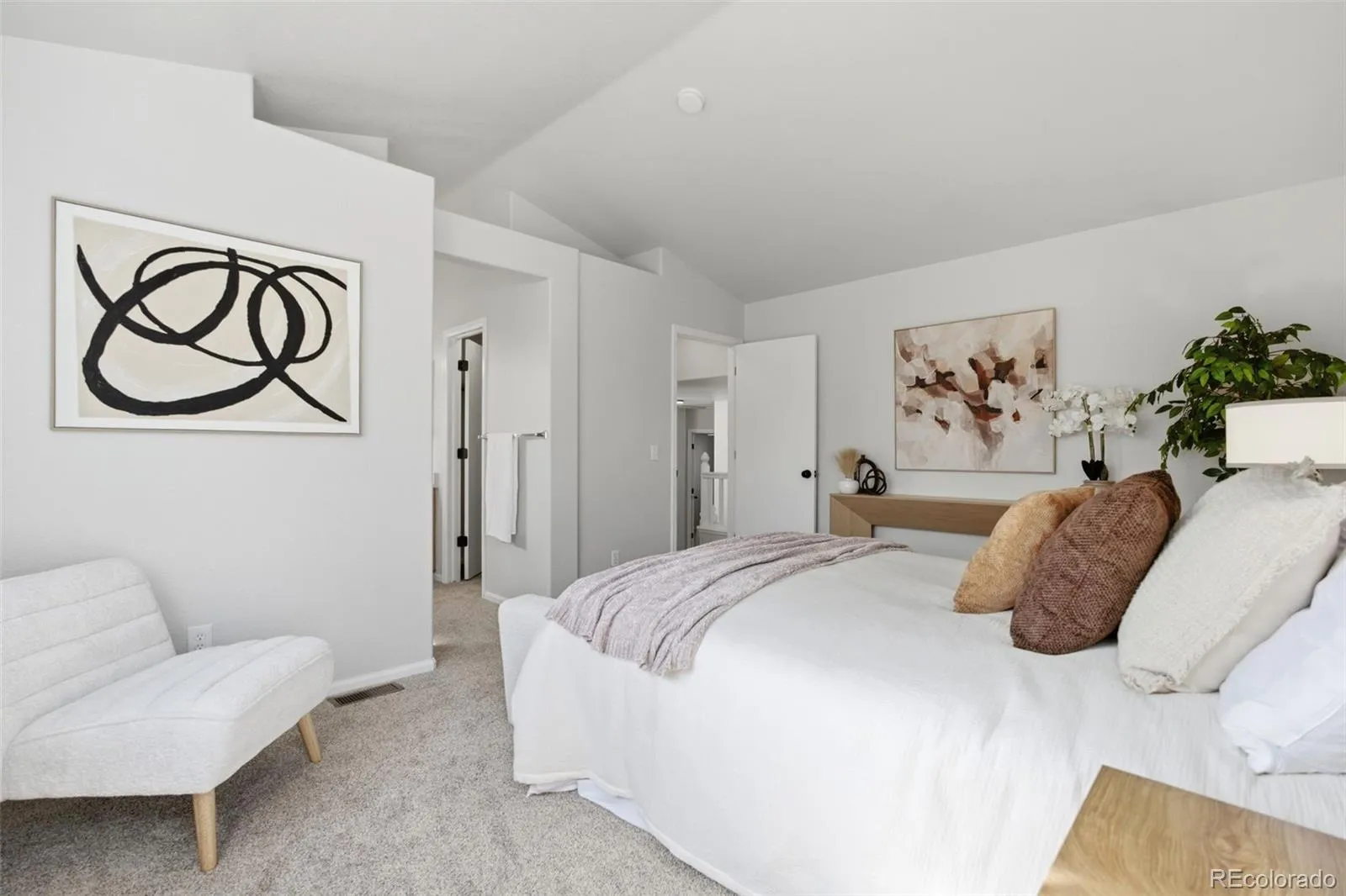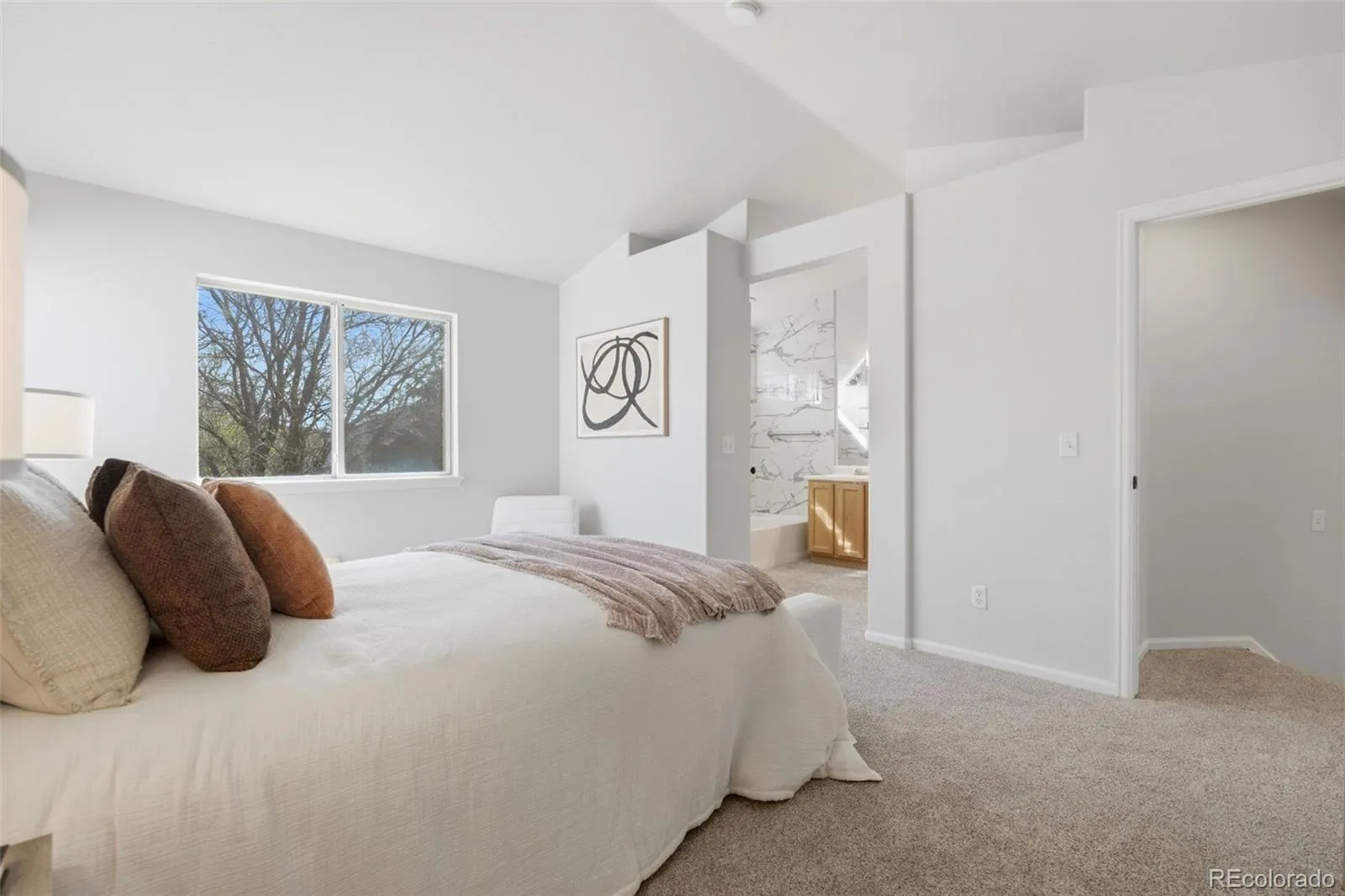 Bright, open, and beautifully updated! This 3-bedroom, 2-bath home features a unique upper-level layout with the primary suite set just two steps above the additional bedrooms, complete with soaring cathedral ceilings that create an airy, retreat-like feel. Sunlight pours throughout the home, highlighting the fresh paint, new carpet, and seamless, flowing floor plan.