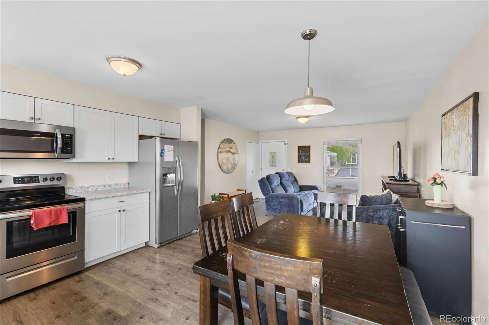 Inside, you’ll find a comfortable layout with updated LVT flooring throughout the freshly painted home, and modern blinds (2021). The kitchen features a new dishwasher (2022) and microwave (2024), while the washer and dryer (2023) are included for added convenience.