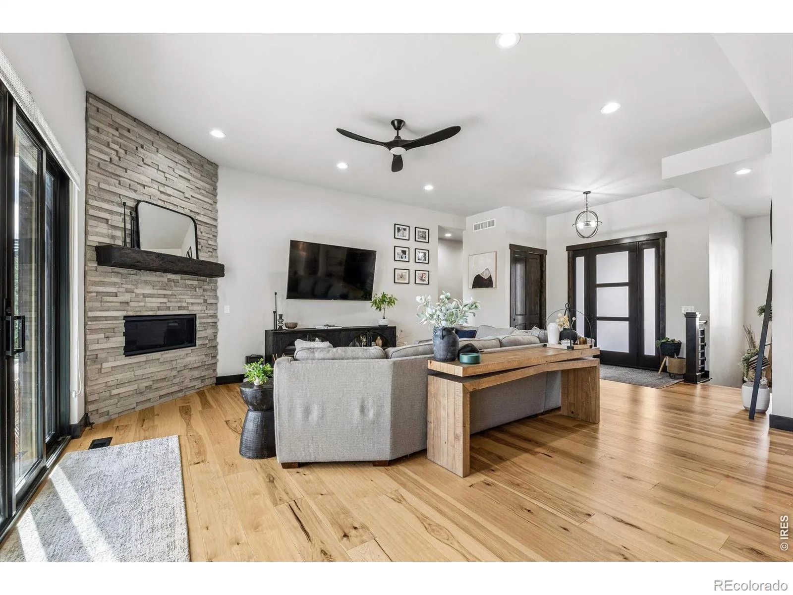 Discover refined living in this beautifully designed home where elevated finishes, thoughtful craftsmanship, and seamless indoor-outdoor flow define every space. The open-concept layout is anchored by expansive windows, architectural detail, and a striking fireplace that creates a warm focal point in the main living area. The adjoining kitchen is built for both culinary performance and entertaining, featuring a substantial island, premium cabinetry, a gas range, and designer lighting that enhances the home’s modern elegance. The dining area extends naturally to the outdoor living spaces, creating an effortless connection for gatherings. With 5 bedrooms and 4 bathrooms, the home offers exceptional flexibility for guests, multigenerational living, or dedicated work and hobby spaces. The main floor primary suite provides a serene retreat with a spacious layout, a private seating area, and a spa-inspired bath complete with a freestanding soaking tub, dual vanities, and a beautifully appointed walk-in shower. The main floor laundry room adds everyday convenience. Secondary bedrooms are generously sized and supported by well-designed jack and jill bathroom featuring elevated materials and refined fixtures. The finished lower level expands the home’s versatility with a generous recreation area, media space, and a custom wet bar that elevates entertaining. A dedicated game zone adds a playful touch, while the overall layout supports relaxation, hosting, and multi-use living. Outdoor living is equally impressive, offering multiple spaces for dining, lounging, and gathering. A covered patio and a dedicated gas fire pit create a private retreat framed by mature landscaping and scenic views. Every detail has been curated to deliver comfort, sophistication, and a lifestyle that feels both elevated and inviting. Residents also enjoy exceptional TPC Colorado amenities, including a resort-style pool, clubhouse, dining, fitness center, scenic trails, and lake access with permit.