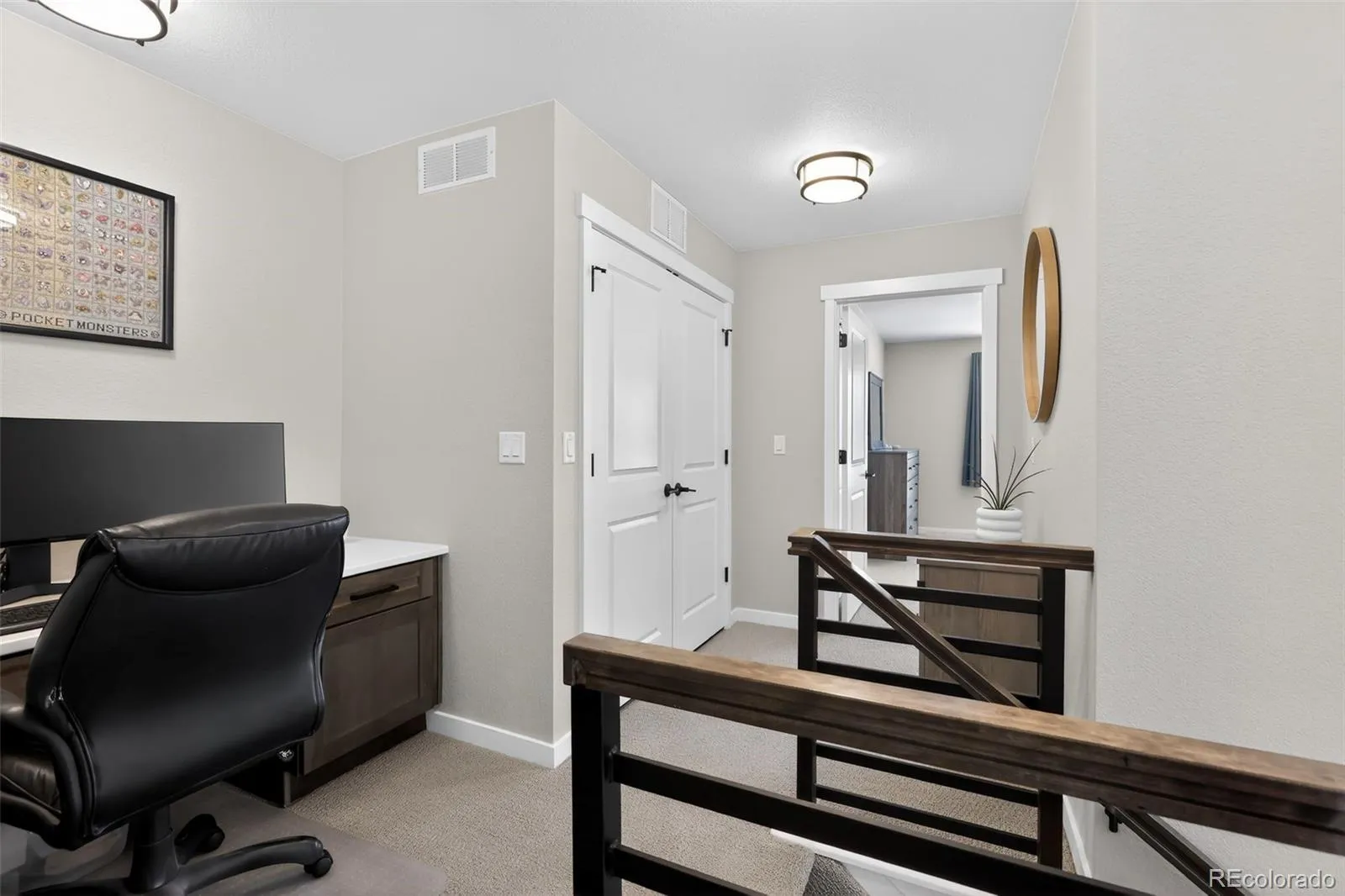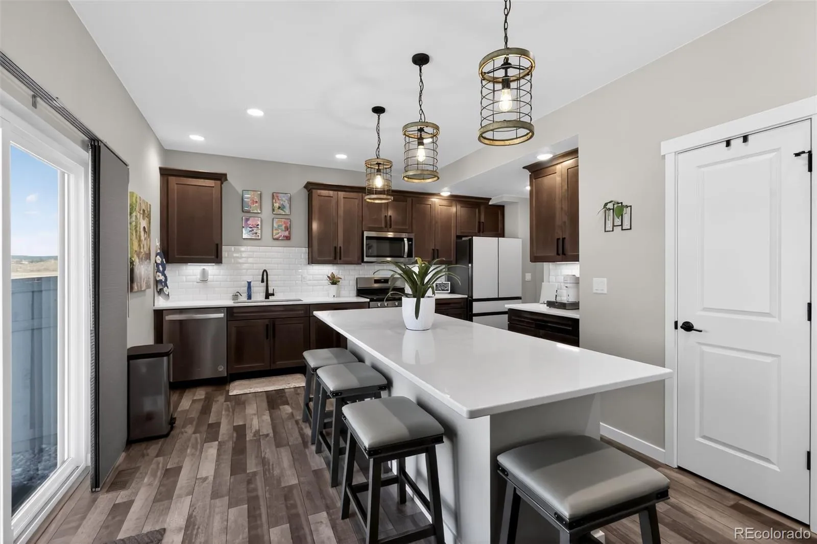 Move-in ready and built in 2023, this stunning Monument home offers 3 bedrooms, 2.5 bathrooms, and 1,557 sq ft of thoughtfully designed, modern living. The open-concept layout is perfect for entertaining, featuring a spacious kitchen with a large island, elegant quartz countertops, and soft-close drawers and cabinets that add a touch of luxury throughout. The primary suite is a true retreat, complete with a dual vanity bathroom and generous walk-in closets. Enjoy year-round comfort with central A/C, heating, a fresh-air whole home fan, and a smart thermostat for effortless climate control. Step outside to take in peaceful backyard views, complemented by a low-maintenance xeriscaped yard and automated sprinkler systems in both the front and back. The finished 2-car garage offers additional storage, making organization easy. Located in the highly sought-after Lewis-Palmer 38 school district, this home combines style, efficiency, and convenience—perfect for those seeking modern comfort with minimal upkeep.