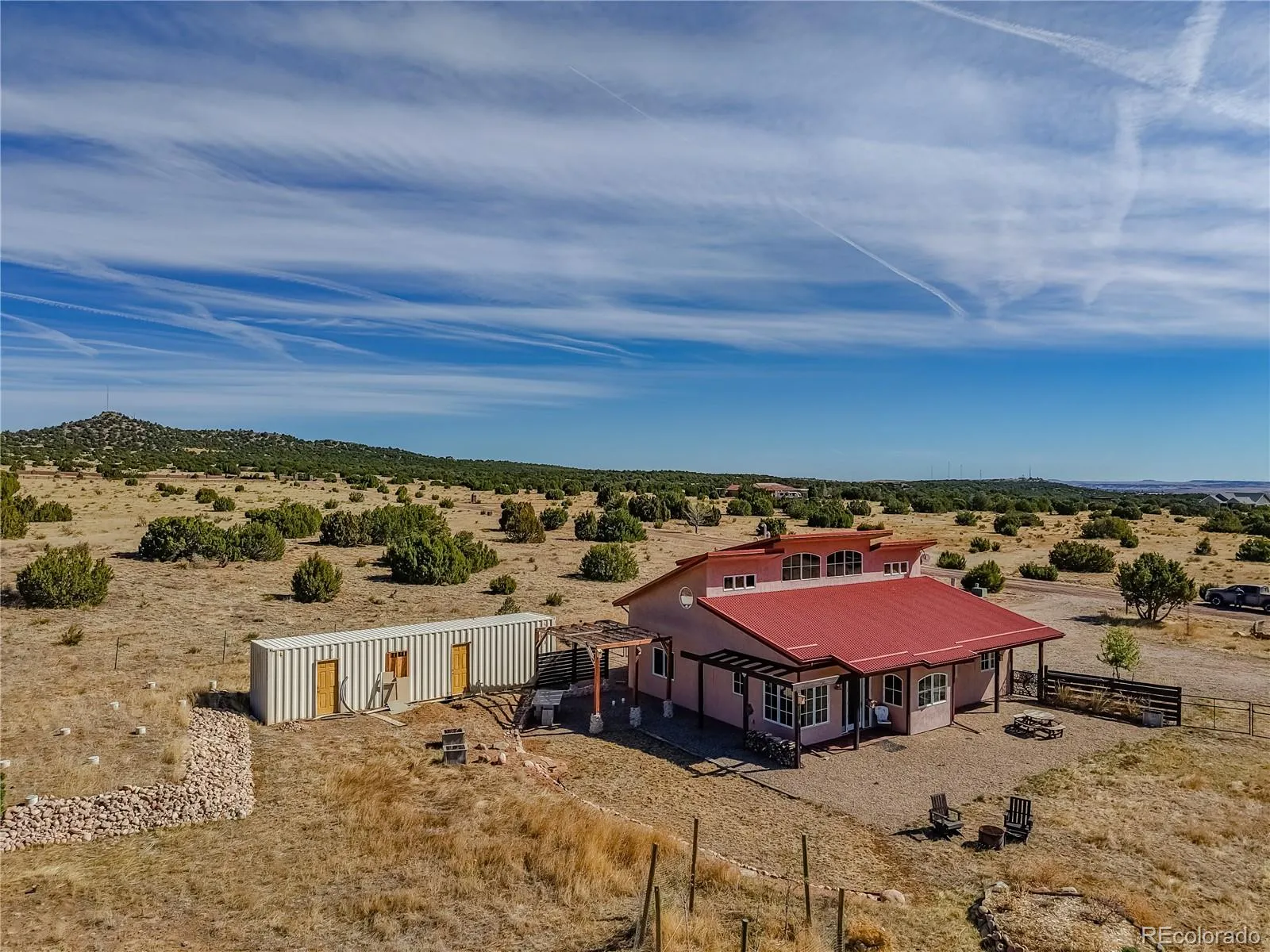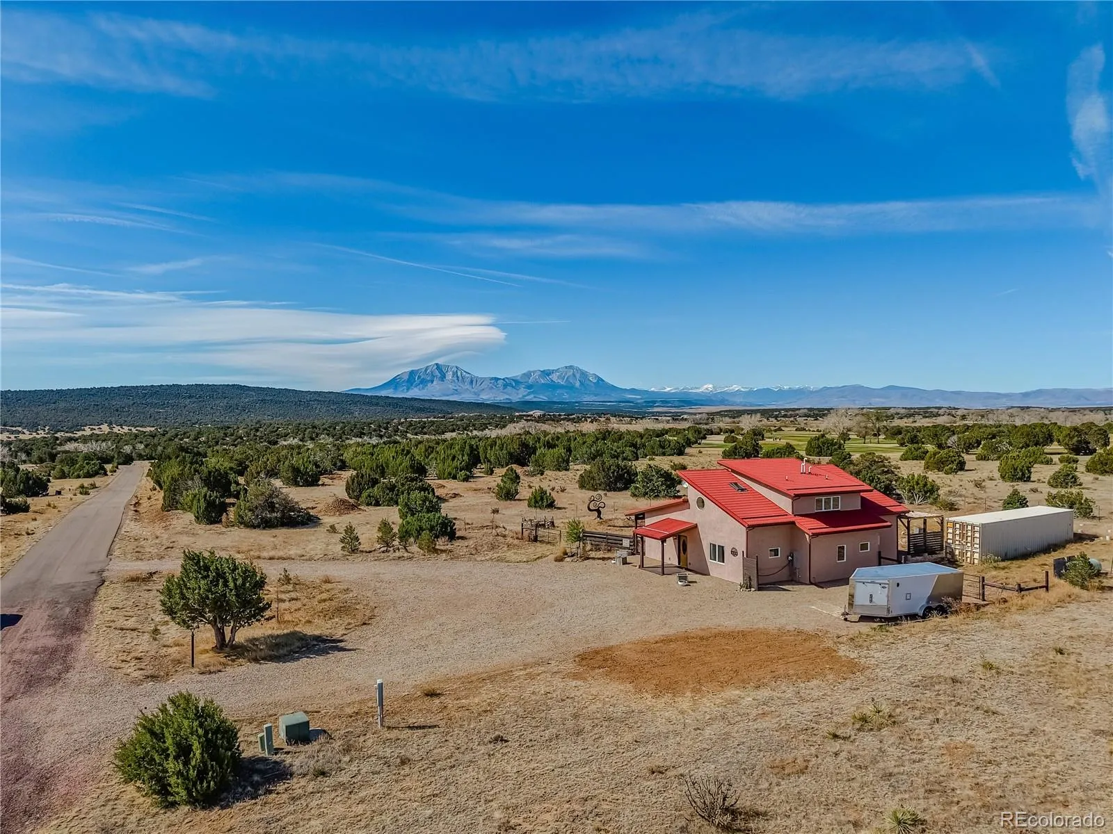 This elegantly designed adobe-style home offers stunning mountain views and a serene retreat feel. The interior features radiant-heated earthen floors, passive solar design, open floor plan with vaulted ceilings, and a high-end custom kitchen. The main level includes two bed/bath suites: the primary with a walk-in closet and 4-piece bath with soaking tub, and the secondary with a generous step-in shower. Upstairs, a bright loft offers multiple flexible use areas, walk-in closets, storage, and a spa-like third bathroom. Constructed with thick, sound-dampening straw bale walls, the home is highly energy-efficient. Outside, enjoy a fenced yard with established gardens and fruit trees. The property also includes a permitted ADU conversion project (foundation and permits complete), Tesla charger, and ample parking. Adjacent to Lathrop State Park and the golf course, with lakes, trails and open space, and within the Black Diamond Park gated community. Additional details at https://www.strawbale.com/straw-bale-home-for-sale/strawbale-home-for-sale-colorado-mountain-views
