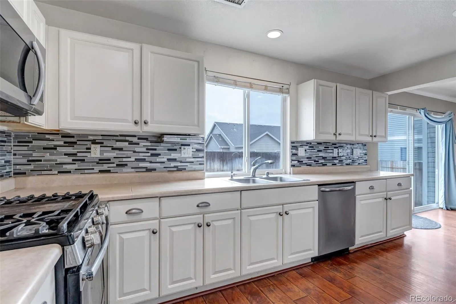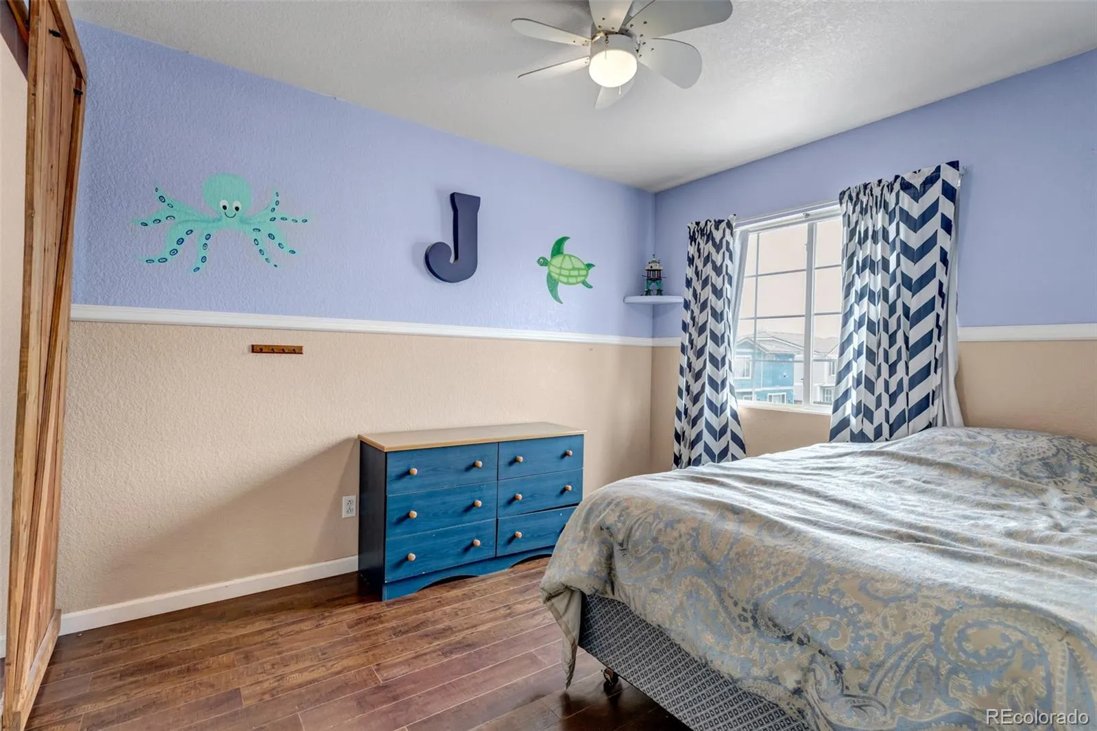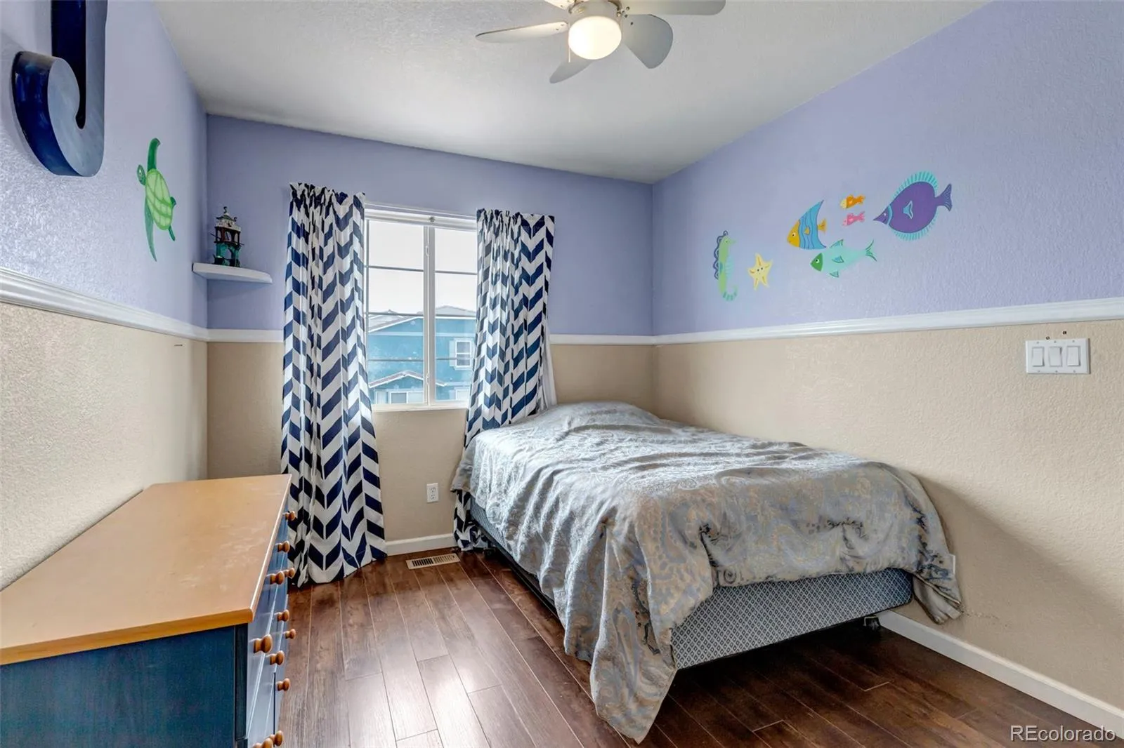 Walk into an open layout and a wrap-around fireplace that provides the perfect setting for guests in the formal dining room. Large open kitchen with stainless steel appliances, lots of cabinetry, and backsplash. This home features 4 bedrooms, 2 full bathrooms, plus a loft area all on the upper level. Primary bedroom features a walk in closet and a 5 piece bathroom. All rooms have large closets. The basement offers another finished bonus room to use as you like-theater, playroom, workout room, office, or house hack, buildout, and rent separately. Proximity to Reunion Marketplace, eateries, shopping, DIA and major highways such as C-470, Highway 2, Highway 85, I-76, and I-25. Around the corner from schools, city park, & Badger Park.