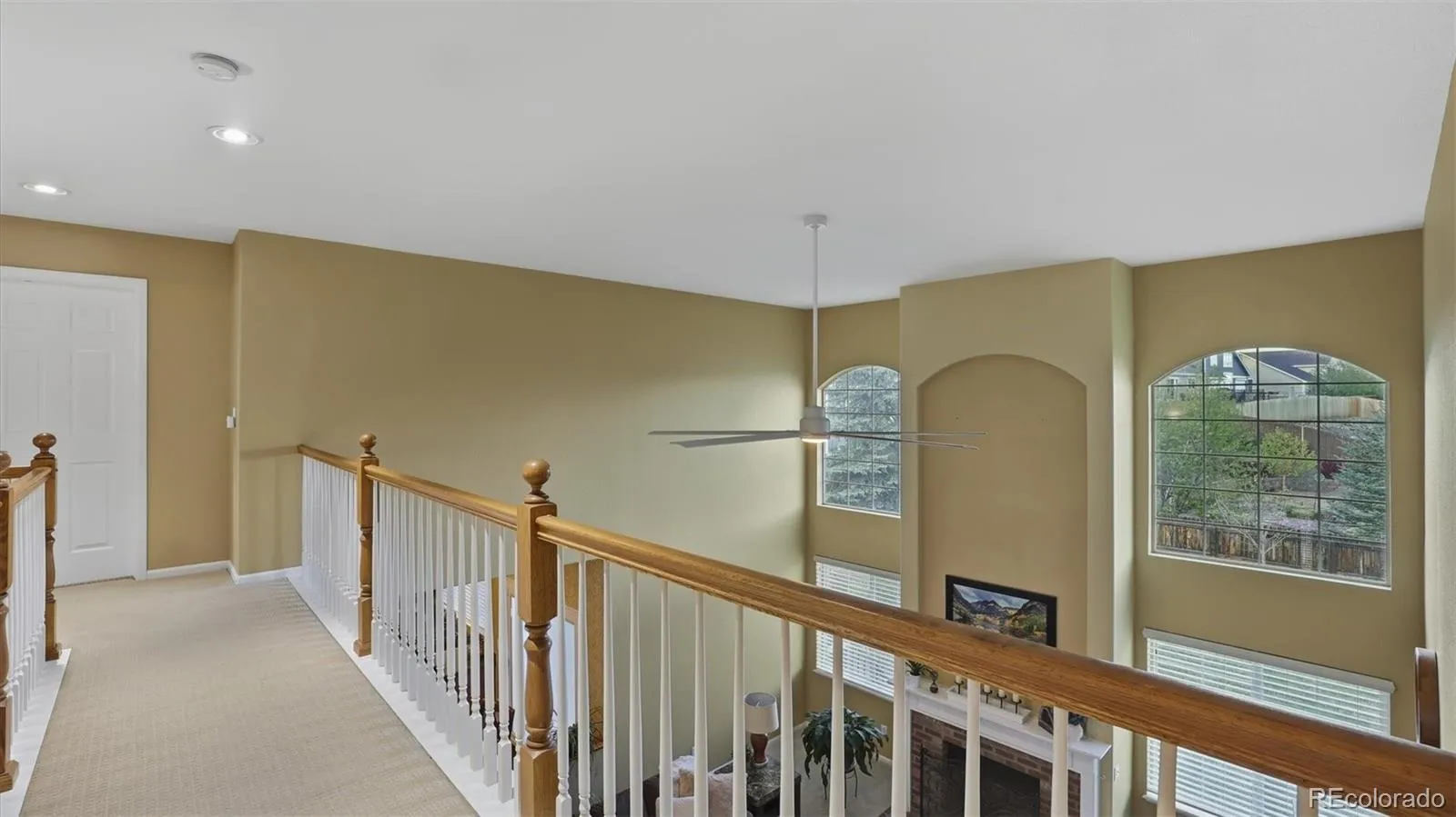 Beautifully maintained 4BR, 3BA, 2-story home nestled on a fully fenced 0.23-acre lot in the desirable Heights at Spring Ranch. This has outstanding curb appeal, showcasing a charming blend of brick & wood siding complemented by a Class 4 composite shingle roof, & low-maintenance landscaping. Inside, you’ll find warm wood floors flowing through the entry, dining rm, & kitchen, & window blinds throughout. NEW HE furnace & central air. The formal Living Rm offers peaceful front yard views & neutral carpeting, while the Dining Rm features a bay window & chandelier. The inviting Family Rm seamlessly connects to the Kitchen & impresses with soaring ceilings, a wall of windows, a lighted ceiling fan, & cozy fireplace with brick surround. The Island Kitchen is designed for both function & style, offering abundant wood cabinetry, generous counterspace, & a convenient planning desk. Enjoy casual meals in the Breakfast Nook, complete with walk-out access to the backyard deck & easy entry from the garage. Appliances incl a cooktop, double ovens, microwave, & French door refrigerator. A dedicated Home Office & adjacent Powder Bath provide the ideal setup for remote work. Upstairs, you’ll find a convenient Laundry Rm, 4 spacious BRs with neutral carpet & ceiling fans, & two full baths. The vaulted Primary Suite, accessed through double doors, features a walk-in closet & an adjoining Shower Bathroom with dual sinks & an enclosed tiled shower. 3 addtl BRs, two with walk-in closets, share a Full Bath with vanity & tub/shower. The unfinished 1,425 sq ft basement offers incredible potential for future expansion tailored to your needs. Step outside to a backyard designed for enjoyment, complete with a deck & pergola, gas stub for BBQ, NEW hot tub, playset, & storage shed. Conveniently located near shopping, dining, & entertainment along the Powers Corridor, this vibrant community also offers parks, trails, & open spaces. This exceptional home is waiting for you to call it your own!