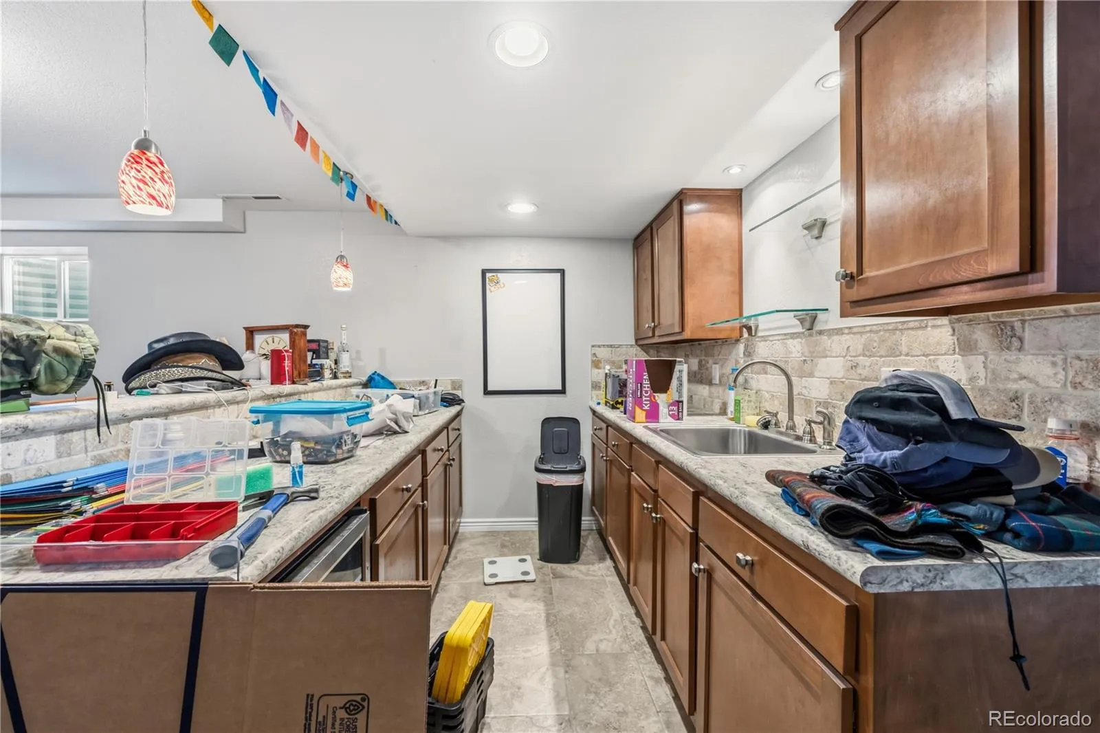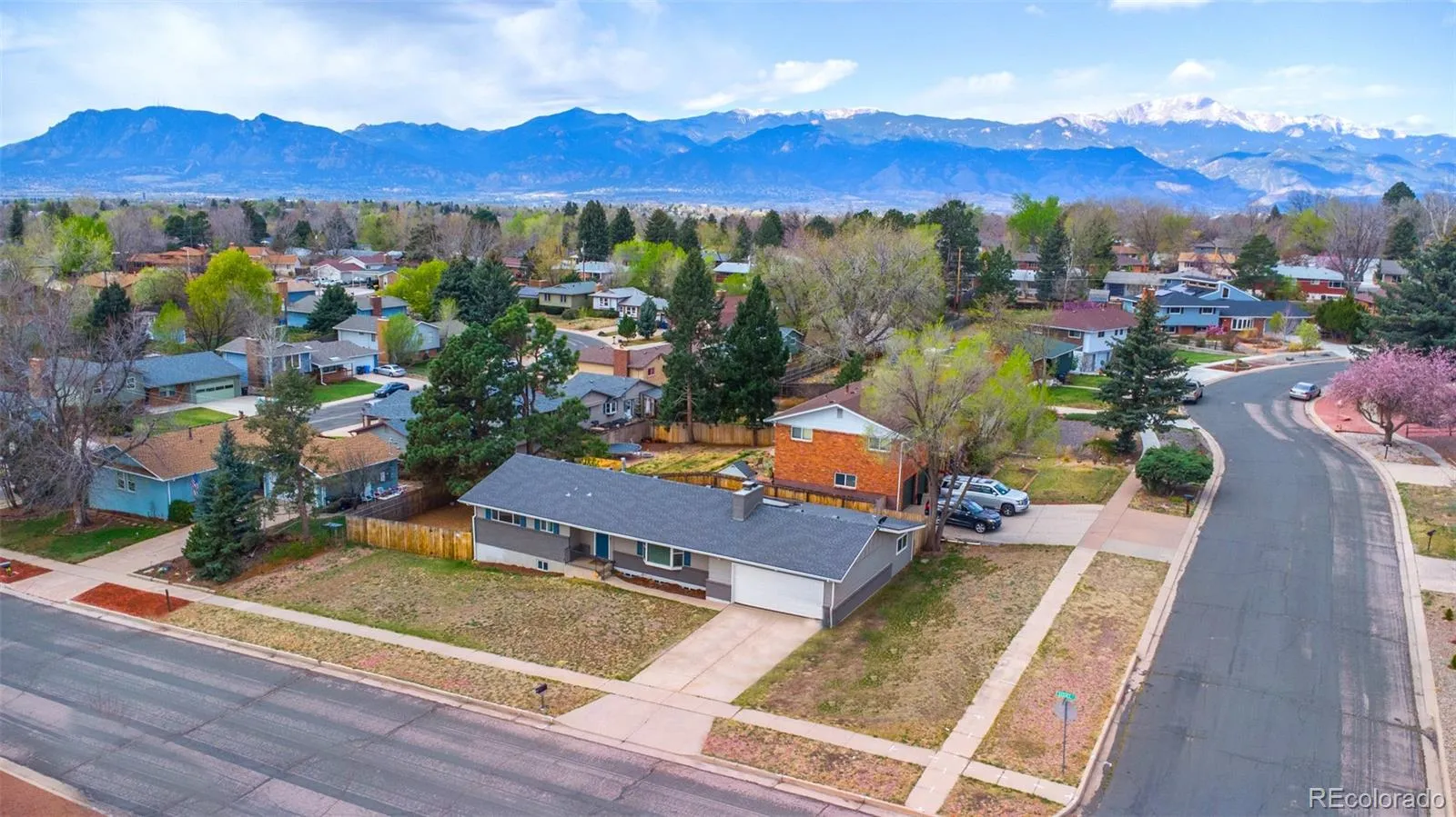 Opportunity knocks in the well established community of Palmer Park! Situated on a spacious, fenced 0.23-acre corner lot, this 5-bedroom, 3-bath ranch-style home is full of potential and ready for your personal touch. With solid bones and a functional layout, this property is the perfect canvas for creating your Colorado dream home. Step inside to a bright Living Room featuring neutral carpet, a lighted ceiling fan, and a cozy wood-burning fireplace, ideal for relaxing on chilly Colorado evenings. A large front-facing window brings in natural light and offers a pleasant view of the yard. The adjoining Dining Area showcases hardwood floors, easy access to the Kitchen, and a sliding glass door that opens to the backyard, perfect for indoor-outdoor living. The Kitchen offers a practical layout with tile flooring, wood cabinetry, and generous counter space for meal prep and storage. A charming dining nook provides space for casual meals. Appliances include a smooth-top range oven, dishwasher, microwave, and side-by-side refrigerator. The Primary Bedroom serves as a comfortable retreat with hardwood flooring, a lighted ceiling fan, double closets, and an adjoining bathroom with vanity, mirror, and tiled shower. Two additional main-level bedrooms share a full bathroom with a tub/shower combo. Downstairs, the finished basement expands your living space with a large Family Room featuring neutral carpet, a second wood-burning fireplace with stone surround and raised hearth, and a wet bar/kitchenette complete with a beverage refrigerator, perfect for entertaining. Two additional bedrooms, a shower bathroom, a spacious laundry room with extra storage, and a versatile flex room provide endless possibilities to suit your lifestyle. The fenced level yard is ready for you to create your own backyard oasis. No HOA so possibilities are endless. Convenient to shopping, parks, and schools, and easy access to Peterson Space Force Base. Bring your vision and make it shine!