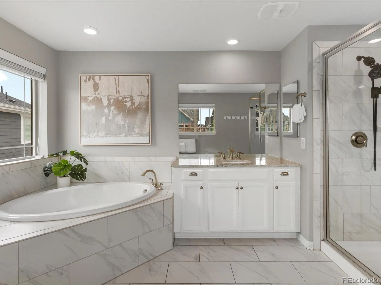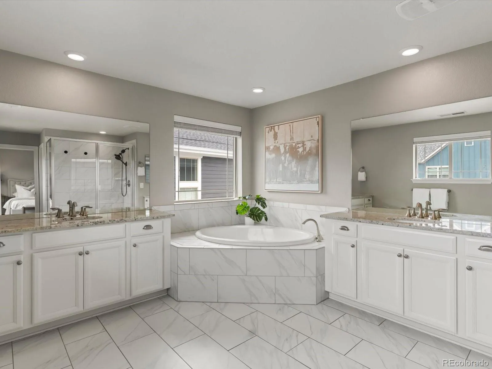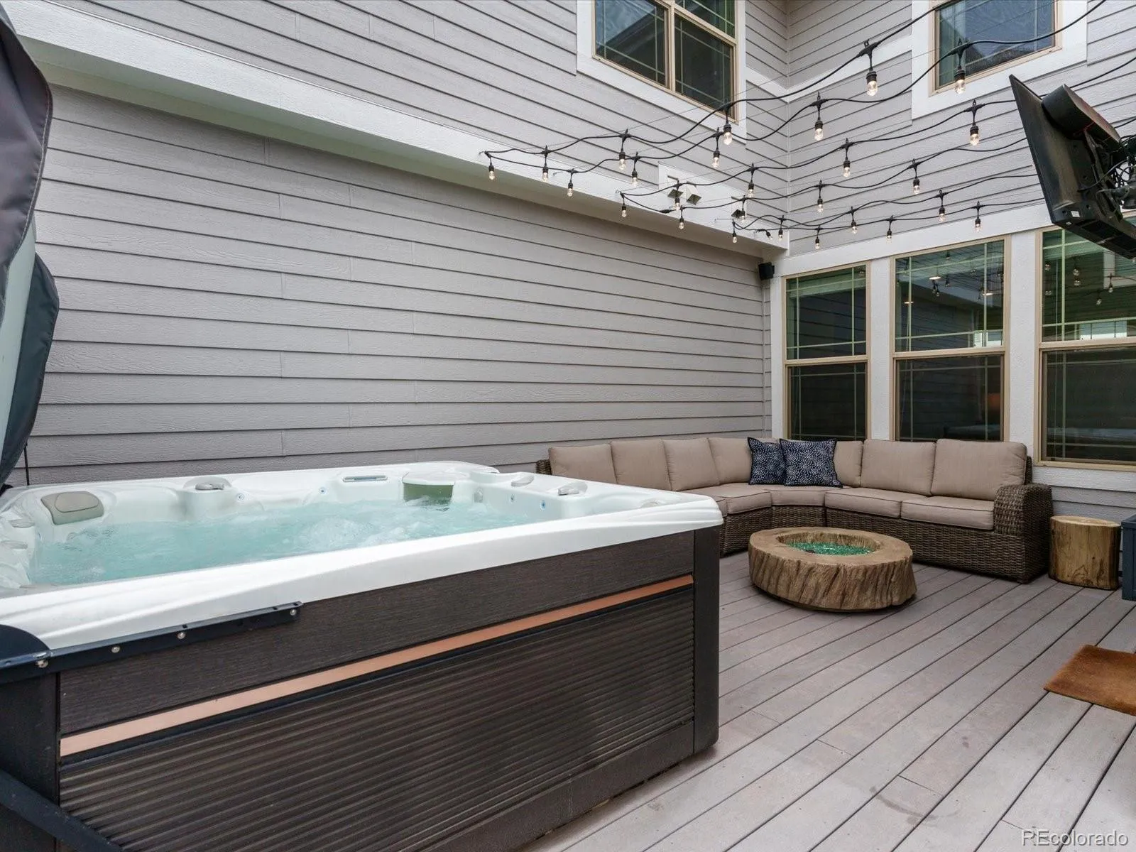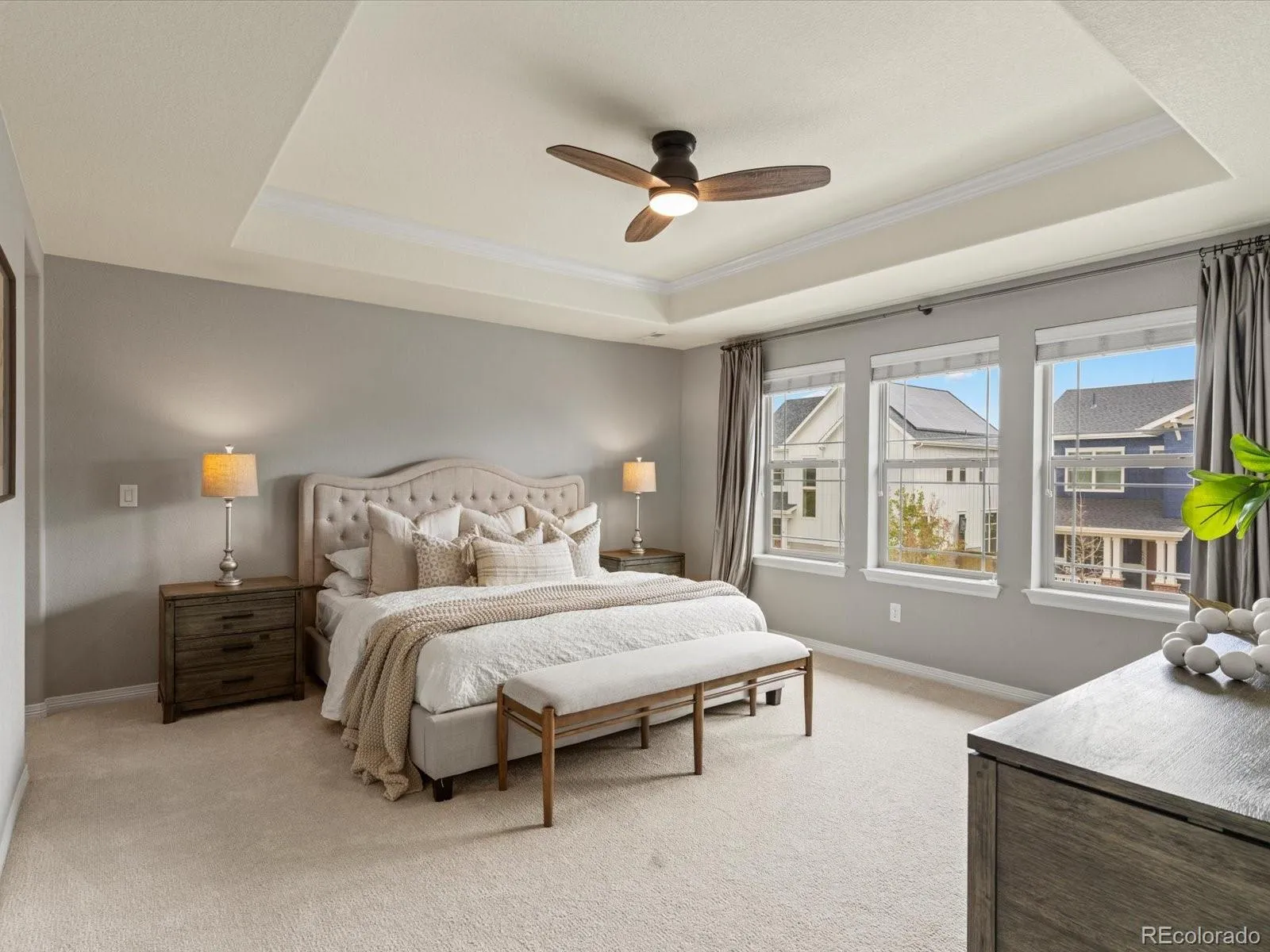 Upstairs, the primary suite features a tray ceiling, built-in coffee bar, walk-in closet, and a spa-like 5-piece bath with soaking tub and dual quartz vanities. Two additional bedrooms with walk-in closets, a full bath, and laundry room with utility sink complete the upper level. The unfinished 1,700 sq ft basement offers incredible potential. Solar panels and dual HVAC systems offer energy efficiency, year-round comfort, and peace of mind. A new roof and fresh exterior paint give this home exceptional curb appeal and added peace of mind for years to come. Located steps from the park with quick access to Anschutz Medical Campus, DIA, and Downtown Denver.