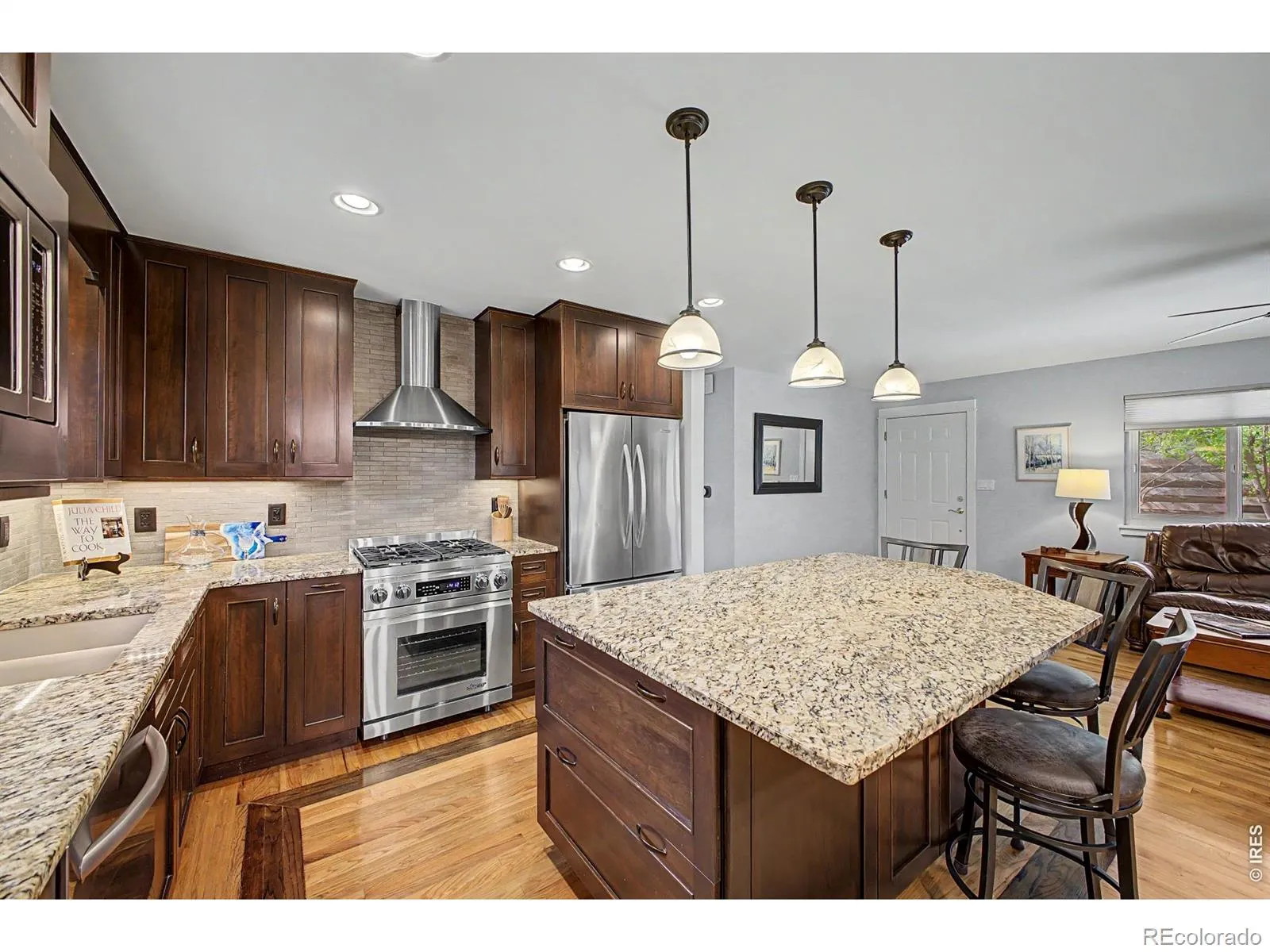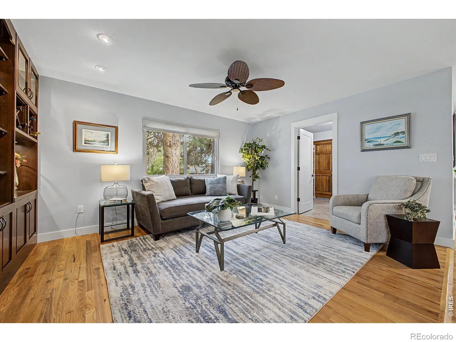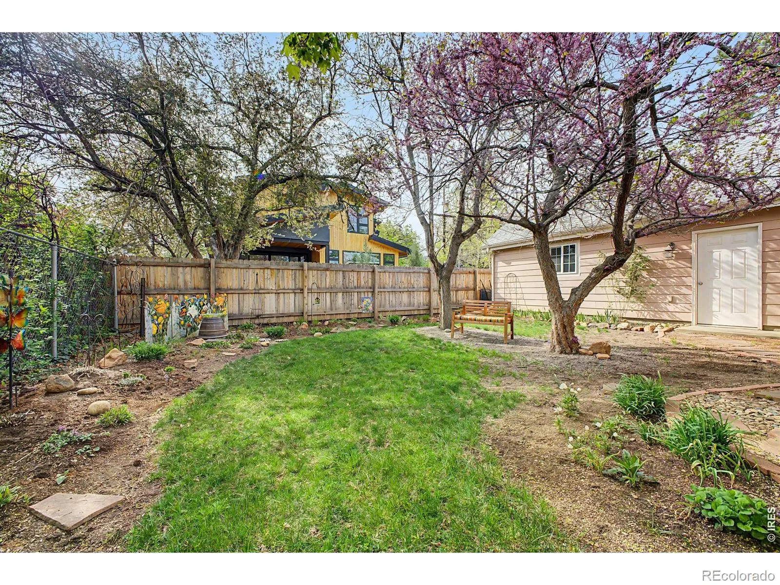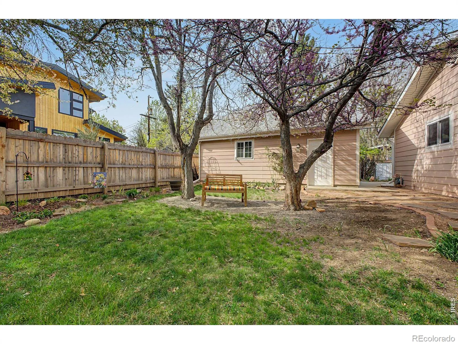 Charming ranch-style home nestled at the end of a quiet cul-de-sac in highly sought-after North Boulder neighborhood. Set on a beautiful, mature lot with exceptional gardening potential, this property is anchored by an enormous old-growth ponderosa pine, creating a serene and inviting outdoor setting. The easily accessible entrance and open-concept living spaces offer both comfort and functionality. Inside, you’ll find warm wood floors and a spacious living room featuring a full wall of custom, lit shelving-perfect for display and storage. The thoughtfully designed kitchen includes granite countertops, custom cherry cabinetry, a lazy Susan, and a center island with bar seating, ideal for entertaining. Renovated om 2014 the home was originally configured as three bedrooms, two have been combined to create a generous primary suite. A large laundry room adds to the home’s practicality. Step outside from the kitchen onto a covered Trex deck overlooking the lush backyard-perfect for relaxing or hosting gatherings. Additional highlights include a long driveway and an oversized detached two-car garage with abundant storage, including lighted stand-up attic space above. Excellent opportunity for additional updates or pop the top to add more squarefootage. RL1 Zoning. Fantastic location just minutes from North Boulder amenities, including the recreation center, community gardens, parks, Ideal Market, Skratch Labs Cafe and Boulder Wine Merchant. A rare opportunity to own a peaceful retreat with easy access to everything Boulder has to offer.