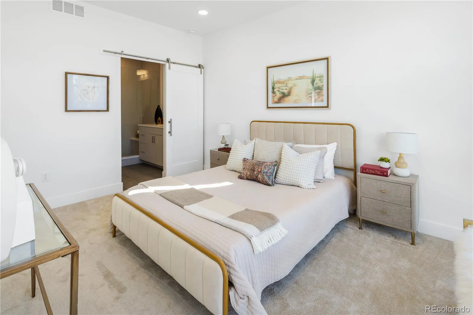 This beautiful three bedroom home was designed with livable functionality in mind. Step out from your primary bedroom to the top patio with views of the city. The patio features a gas hookup for fireplace and grilling capability as well as a hose bib for easy cleaning and gardening. Just inside from the patio is a wet bar with a mini fridge. Every bedroom features an en suite bathroom. Large walk in closets for the primary and one of the secondary bedrooms. The front loaded kitchen opening up to the front patio allows for spacious entertaining and a rare opportunity for a comfortable dinning area. After all everyone always ends up hanging out in the kitchen. This home comes with a one year builders warranty as well as a blue tape walkthrough to make sure everything is perfect for you and your family. Contact me for information on rate buy downs and seller concessions.