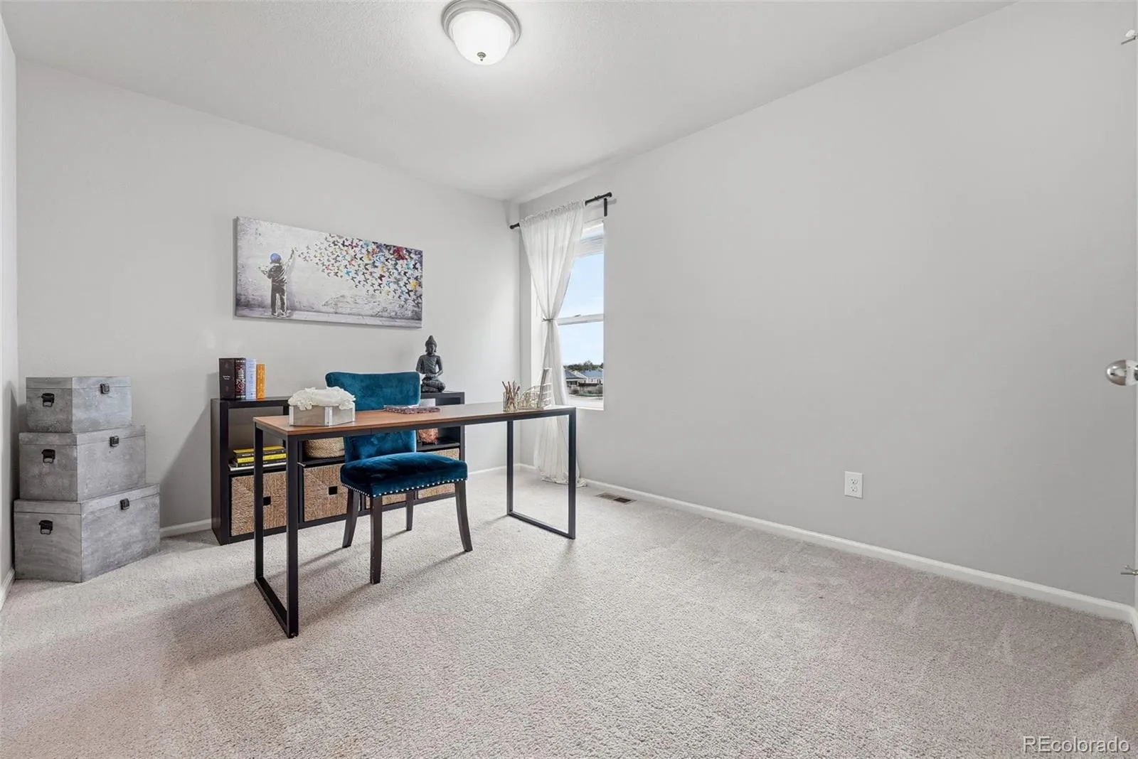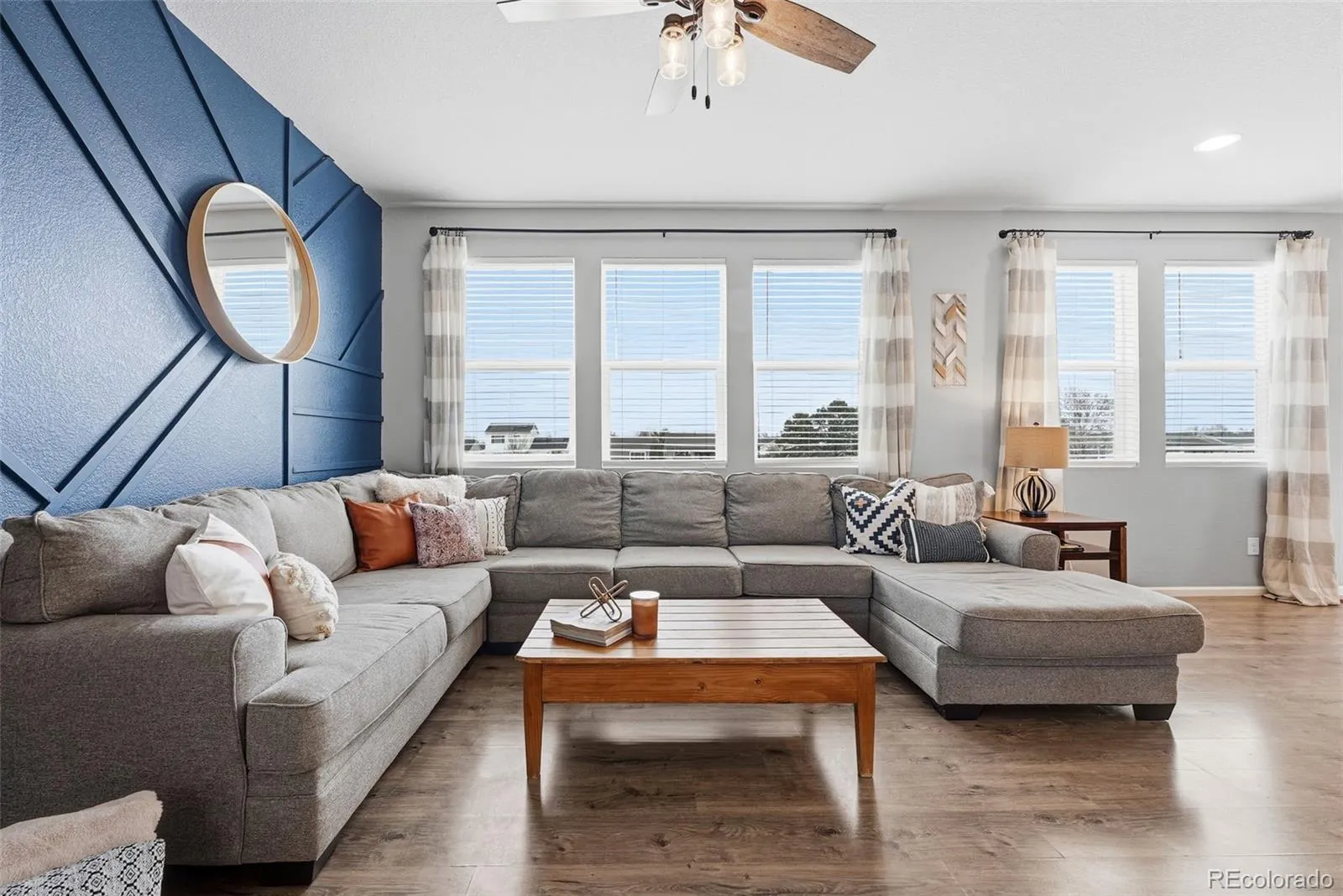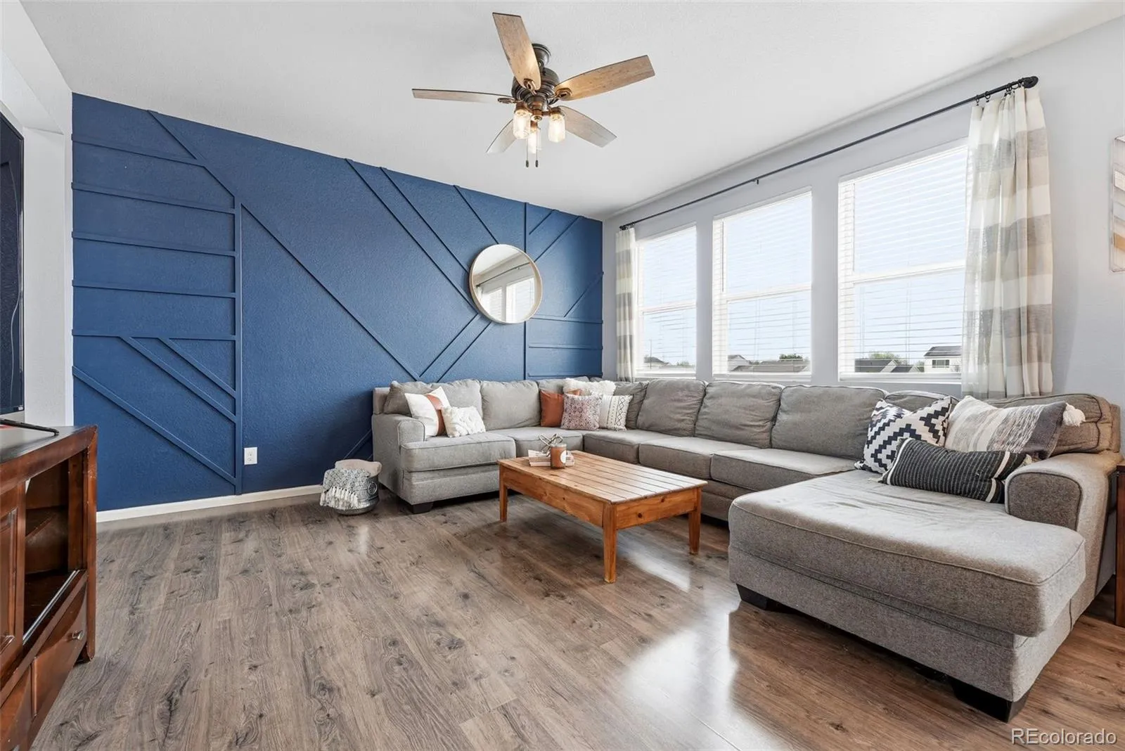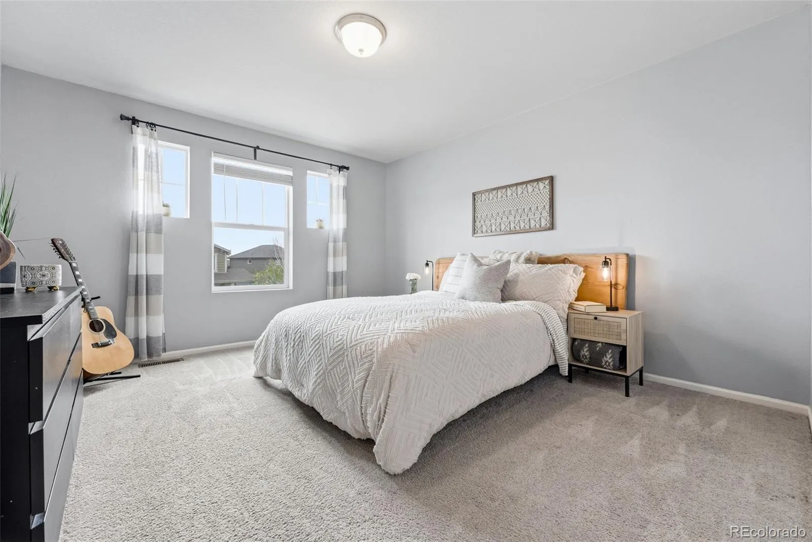 Exceptional two-story home in Green Valley Ranch featuring 3 bedrooms and 2.5 baths, offering a beautifully balanced and light-filled floor plan. The inviting foyer opens to a spacious living room and adjacent dining area, highlighted by high ceilings and abundant windows. The gourmet kitchen is a standout with white cabinetry, granite countertops, stainless steel appliances including a gas range, a large island, a generous pantry and easy access to the custom patio—perfect for entertaining. Upstairs, the spacious primary suite impresses with a coffered ceiling, dual sink vanity, oversized shower and a walk-in closet. Secondary bedrooms each include walk-in closets and the upper-level laundry room adds everyday convenience. Fresh interior paint and newer window coverings enhance the move-in ready appeal. The unfinished basement offers rough-in plumbing and room to expand. Enjoy outdoor living in the large, beautifully landscaped backyard with fence and sprinklers—an uncommon find in the area. Community amenities include access to The Hub recreation center with pool, parks, and playgrounds, all included through the annual property tax. Ideally located near DIA, shopping and more—this is a home you won’t want to miss!