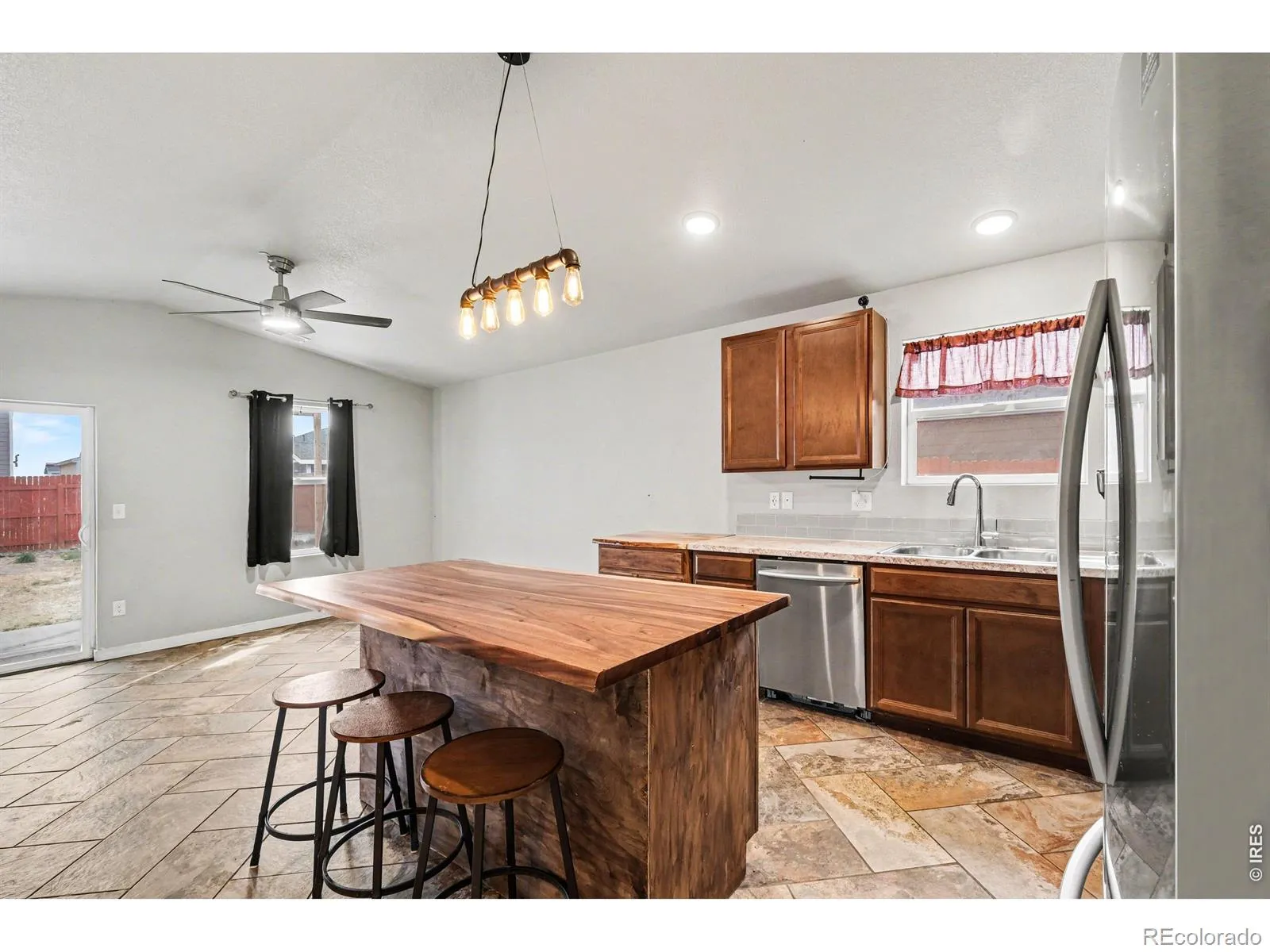 Step into this contemporary open floor plan. The cathedral ceiling in the living space makes the space feel bigger. The spacious kitchen features a custom built island with under cabinets for extra storage. It can easily be moved to create more living room floor space when needed. All the kitchen stainless appliances are included! The home offers many modern Wi-Fi controlled features. A Nest Security System, a B-Hyve sprinkler system, and an Ecobee thermostat. The windows and sliding door have had a mirrored reflective coating added to help with keep the home cooler and to add privacy. For pet lovers a fully plumbed automatic pet watering/feeding station is just inside the interior home access garage door. A doggie door with a sliding lock has been installed. The garage is fully finished with a space heater. (Builder installed.) Garage shelving included in the sale. The storage shed is included with solar lighting and shelving.