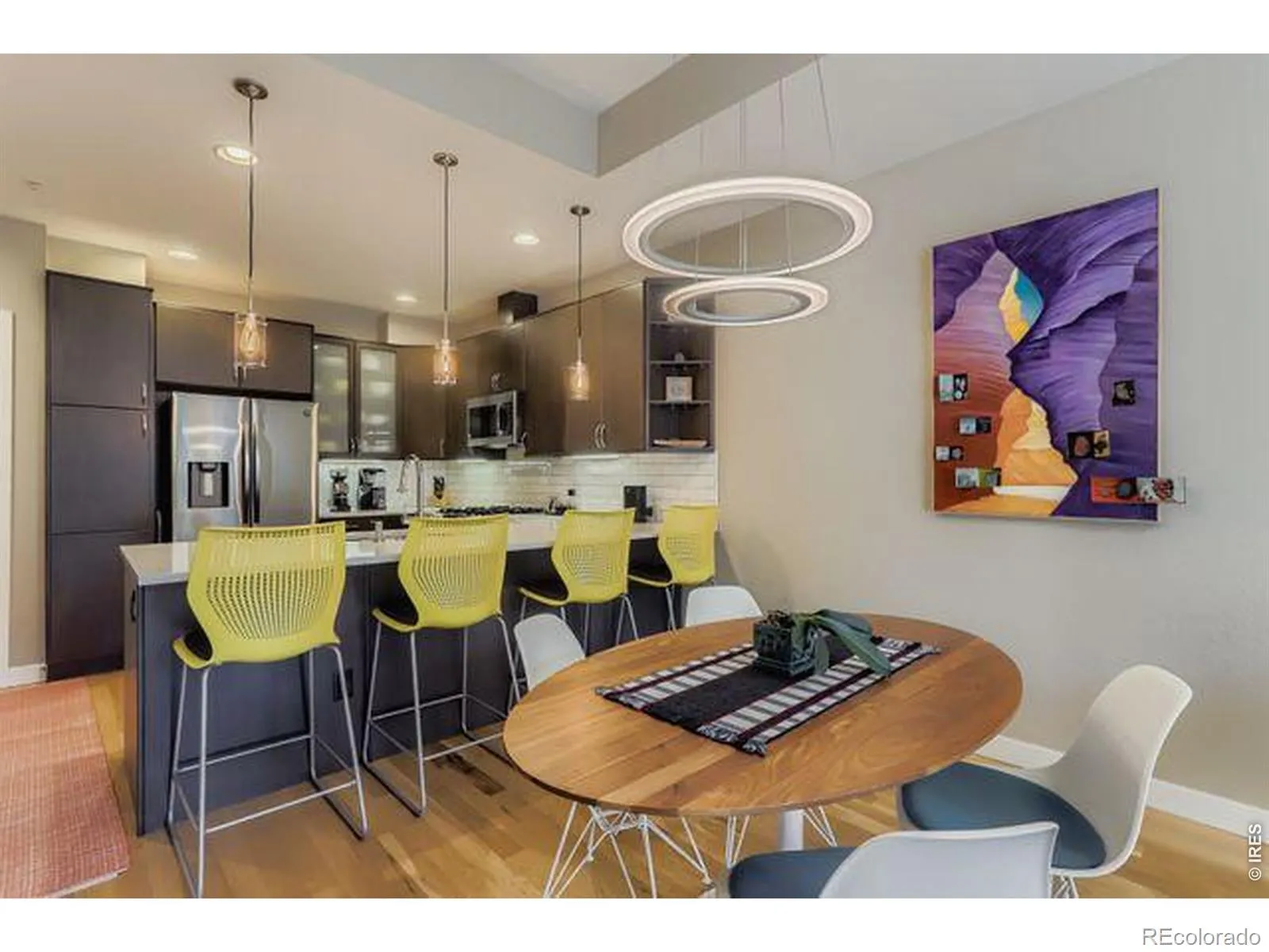 SELLER WILL PAY 6 MONTHS HOA FEES!! This beautiful townhome is ideally set on the western edge of Dakota Ridge. With stunning views of the foothills, and trails/open space at your fingertips, this home offers a perfect blend of mountain access and modern comfort. Step inside to an open, light filled floor plan featuring expansive west facing windows and high ceilings. The gourmet kitchen boasts Ceasarstone countertops, stainless steel appliances, a new dishwasher and refrigerator (2024), and a new Hans Grohe kitchen faucet (2023). The living and dining areas showcase new light fixtures; updated Nest thermostat and Nest doorbell camera offer modern convenience and piece of mind. Upstairs there are three light filled bedrooms, including a beautiful primary suite with an en suite bath and spacious walk in closet. The finished basement includes a new Murphy bed with drawers, offering flexible space for guests. Enjoy breathtaking sunsets from the west facing patio – the perfect spot to unwind after a day on the trails. Additional updates include new smoke detectors throughout the home. Experience the best of Boulder living in this bright, contemporary home just steps from nature, yet close to shops, dining, and all the amenities of North Boulder.