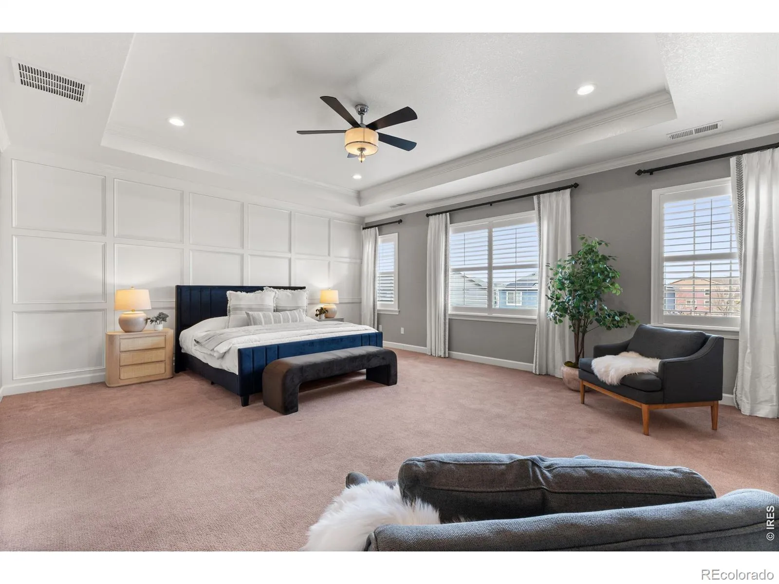 This extraordinary 6-bedroom luxury residence is a true showcase of craftsmanship, comfort, and elevated living. Meticulously landscaped grounds and extensive masonry work create a stunning first impression, setting the tone for the elegance found throughout the home. Step inside to a great room that makes a statement and serves as the heart of the home-grand yet inviting and designed to welcome all. The thoughtfully designed floorplan flows seamlessly from space to space, creating an ideal setting for both everyday living and sophisticated entertaining. The chef’s kitchen is a standout feature, outfitted with top-tier luxury appliances, striking granite countertops throughout, and surrounded by gorgeous custom cabinetry and millwork that extend throughout the home. Designer lighting enhances each room, while rich hardwood flooring spans the main level. Quartz countertops are featured throughout, adding a refined and cohesive touch. Five of the six spacious bedrooms offers its own private en-suite bath, providing exceptional comfort and privacy for family and guests. Additional living spaces include a spacious home office, a fully equipped large home gym, and an impressive home theatre for immersive entertainment. The finished garage features custom doors and high-end detailing, blending style with functionality. Downstairs, the lower level is perfect for entertaining, complete with a basement wet bar and generous gathering space. Outdoor living is equally exceptional, featuring a heated outdoor living area, a bar and multiple fireplaces-including those on the front porch and main outdoor living space. Relax and unwind with tranquil water features and a private hot tub, creating a true resort-style retreat at home. Every detail of this residence has been thoughtfully curated to offer a seamless blend of luxury, comfort, and timeless design. Close to shopping, restaurants and all this great community has to offer! Poudre Schools.