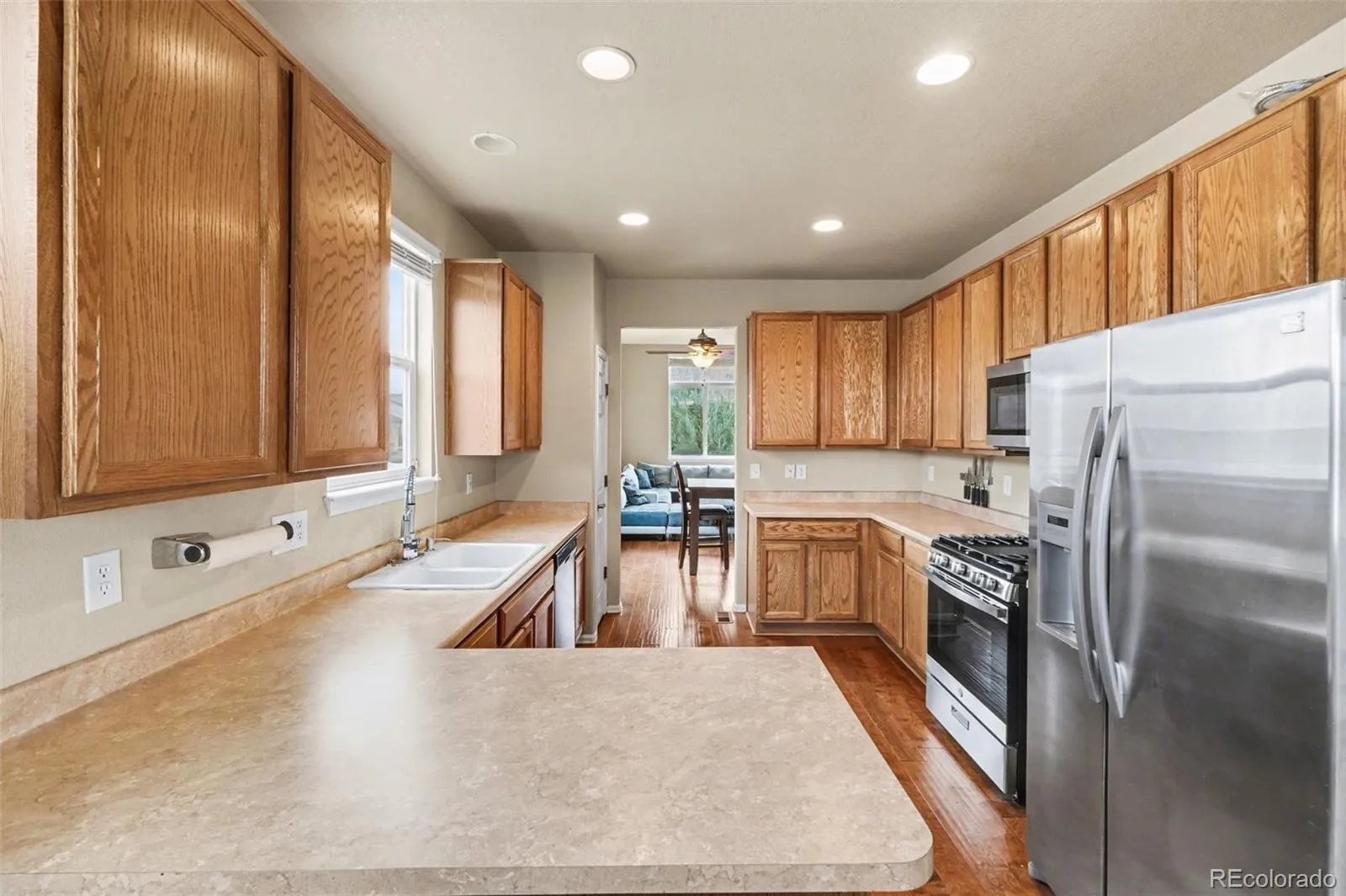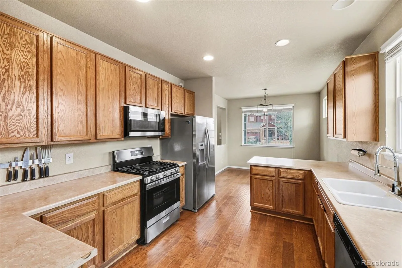 Welcome to this beautiful home in one of Thornton’s most desirable neighborhoods! The highly sought-after MAIN FLOOR PRIMARY SUITE. Situated on a spacious corner lot, this property offers exceptional curb appeal and added privacy in a quiet, well-established community. Step inside to discover a bright, open floor plan designed for both comfortable living and easy entertaining. The living area is warm and inviting with soaring ceilings and a cozy fireplace, flowing seamlessly into the kitchen with ample cabinetry, modern appliances, and an eat-in dining area. Upstairs, you’ll find additional bedrooms and a versatile loft-perfect for a home office, playroom, or second living space. Car enthusiasts and those needing extra storage will love the rare 3-car attached garage, offering plenty of room for vehicles, gear, and more. Enjoy outdoor living with a nicely sized yard and the benefits of a corner lot location, giving you extra space and separation from neighbors. Conveniently located near top-rated schools, parks, walking trails, and shopping, this home offers easy access to everything you need while still providing a peaceful neighborhood setting. This is the perfect blend of comfort, space, and location-don’t miss your chance to make it yours!