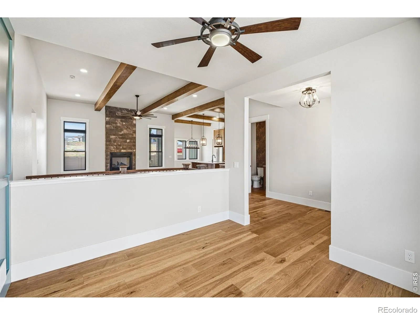 This Fricke custom ranch sits on a quarter-acre corner lot with sweeping views and was built for the way Coloradans actually live – main level living, an oversized 4-car side-load garage ready for bikes, skis, kayaks, and everything else, and a fully fenced, professionally landscaped yard that’s move-in ready from day one. Step inside and the great room immediately feels like home – soaring beamed ceilings, a double-sided gas fireplace that opens to the covered patio, and sight lines that make the space feel expansive. The gourmet kitchen is built to entertain: a large center island, double ovens, five-burner gas cooktop, quartz countertops, full tile backsplash, and custom cabinetry with soft-close doors and a hidden walk-in pantry. The wraparound front deck and covered back patio with fireplace make outdoor living a four-season affair here. The primary suite is tucked away for true privacy – a five-piece bath with soaking tub, double vanity, and walk-in shower, plus a walk-in closet with direct access to the laundry/mudroom connecting straight to the garage. Two additional bedrooms complete the main level. Downstairs, the finished basement gives you room to spread out: a large rec room, wet bar with oversized island, two more bedrooms, a full bath, a powder room, and generous unfinished storage for gear. A tankless water heater and active radon mitigation system round out the thoughtful infrastructure.Harvest isn’t just a neighborhood – it’s a rare find. No metro district means a lower tax bill. Set in Berthoud, you’re minutes from downtown’s local shops and restaurants, 5 minutes from TPC Colorado’s world-class golf, and perfectly positioned between Denver, Boulder, and Fort Collins for wherever life takes you. Denver International Airport is just 45 minutes away, making travel effortless. Truly a must see opportunity!